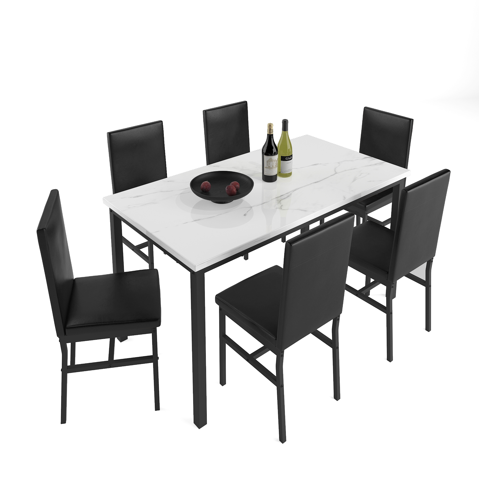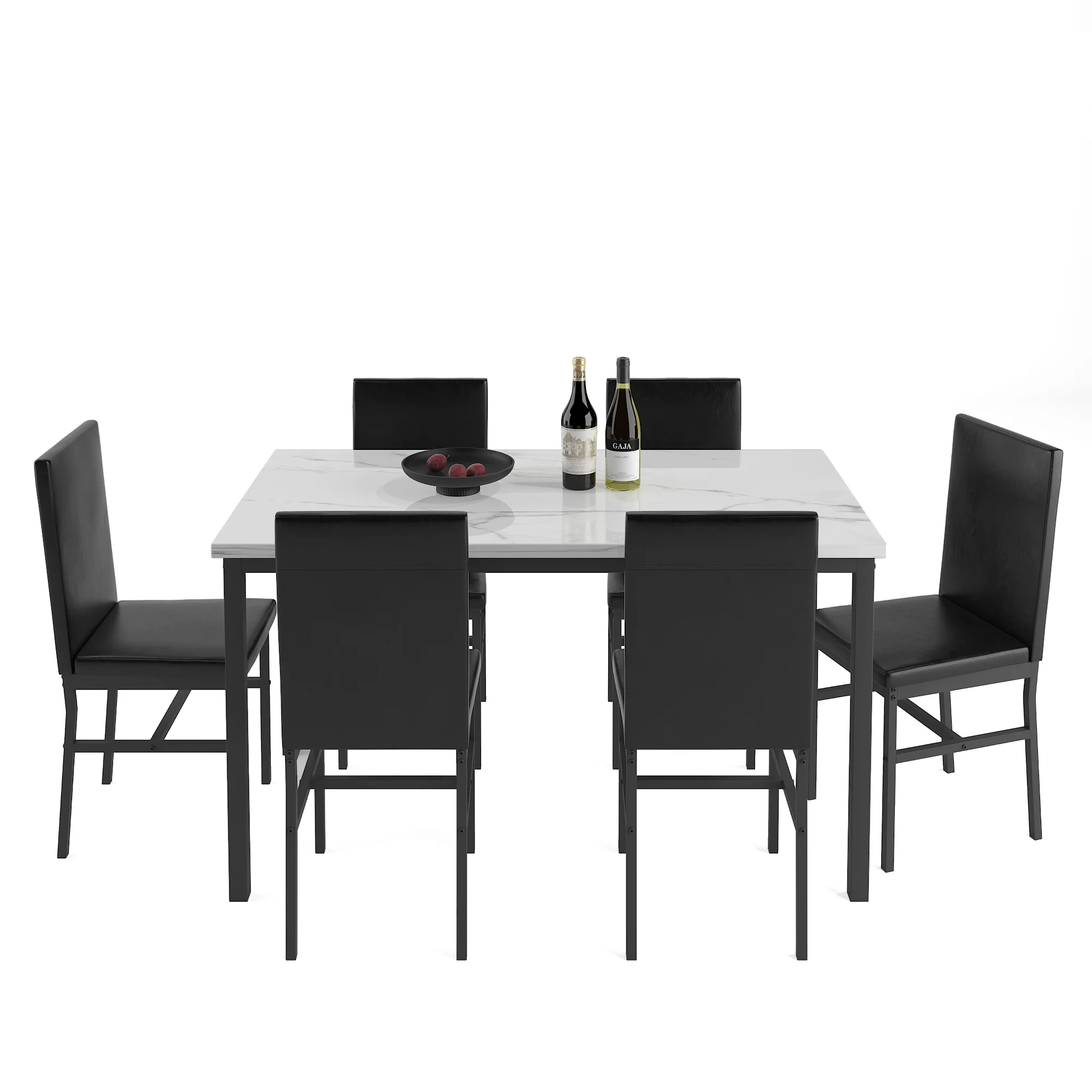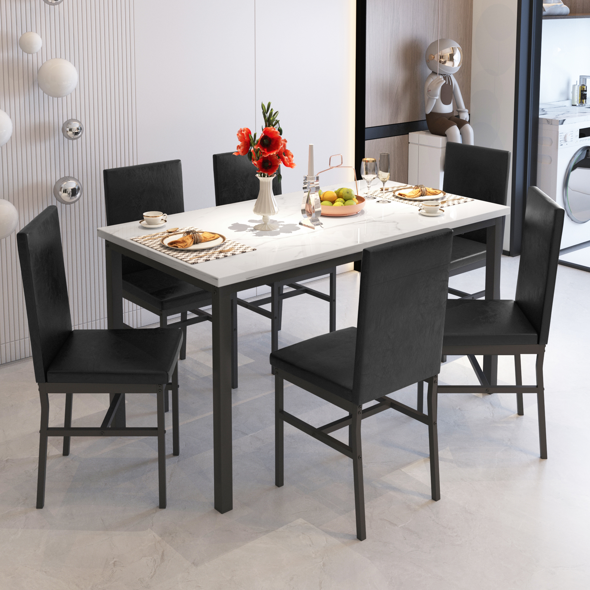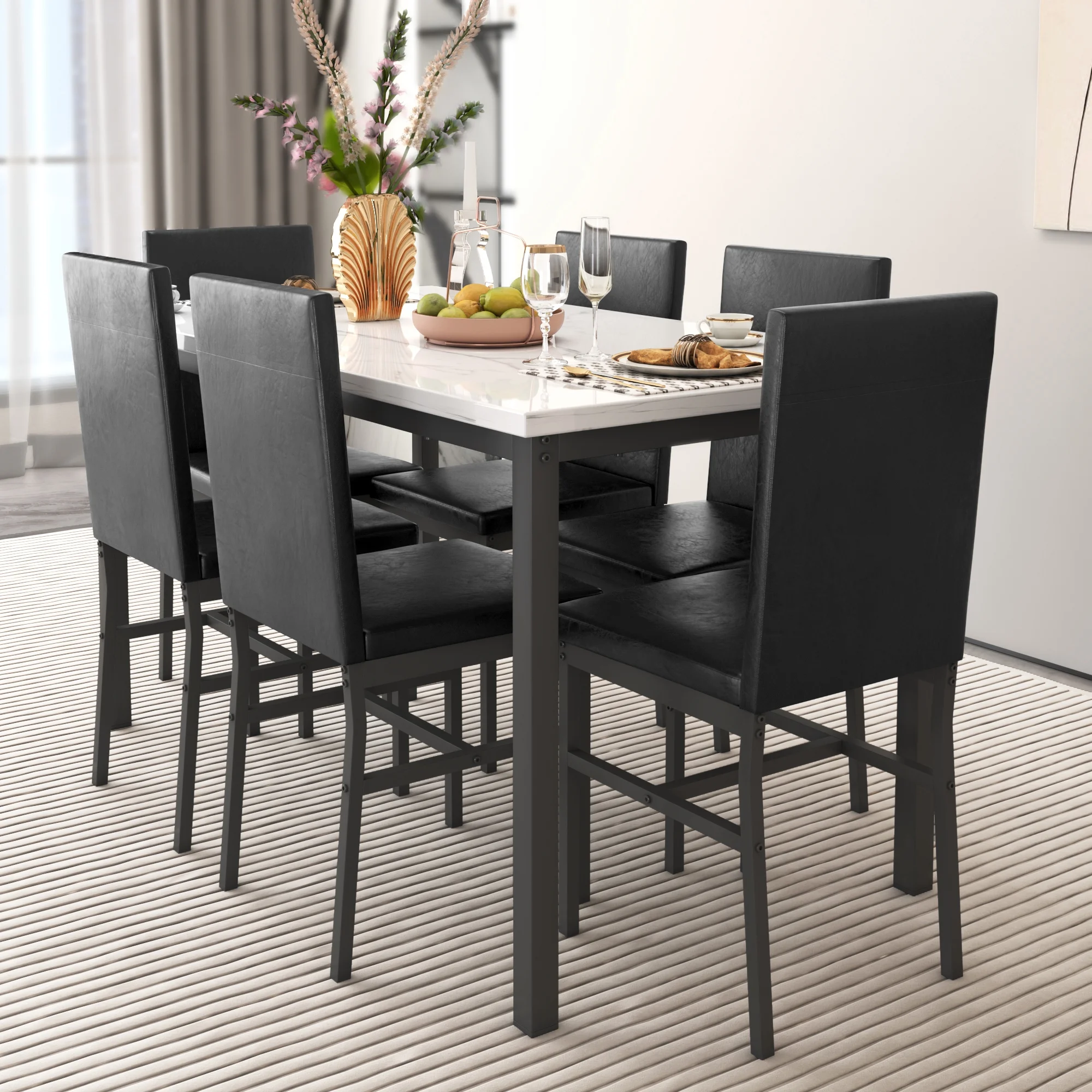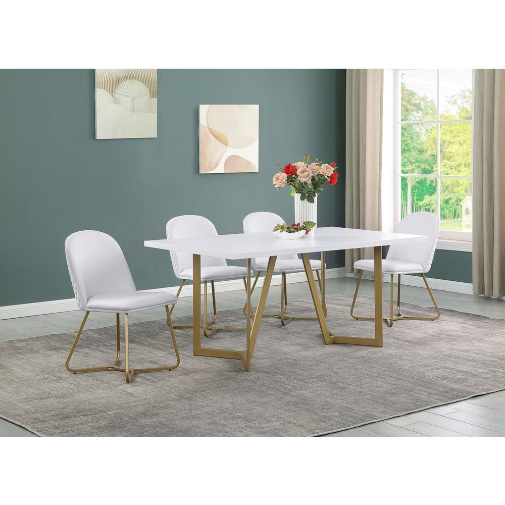 Best Quality Furniture 5pc rectangle dining table- White wood top w/ 4 white faux leather chairs