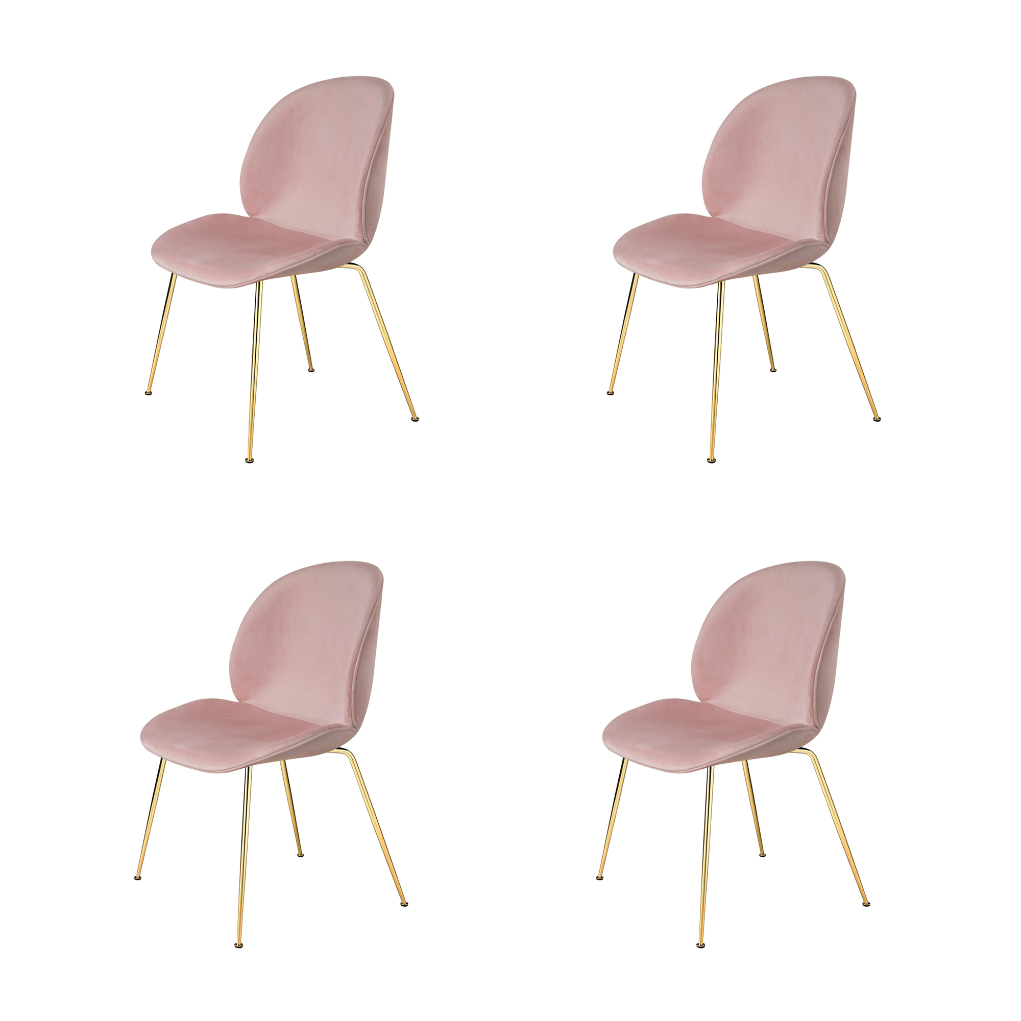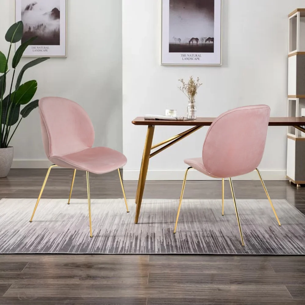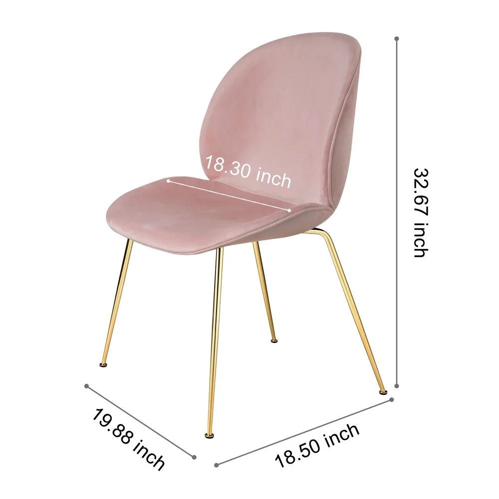 Leejay Velvet Side Dining Chairs with Gold Legs for Kitchen Set of 4,Pink