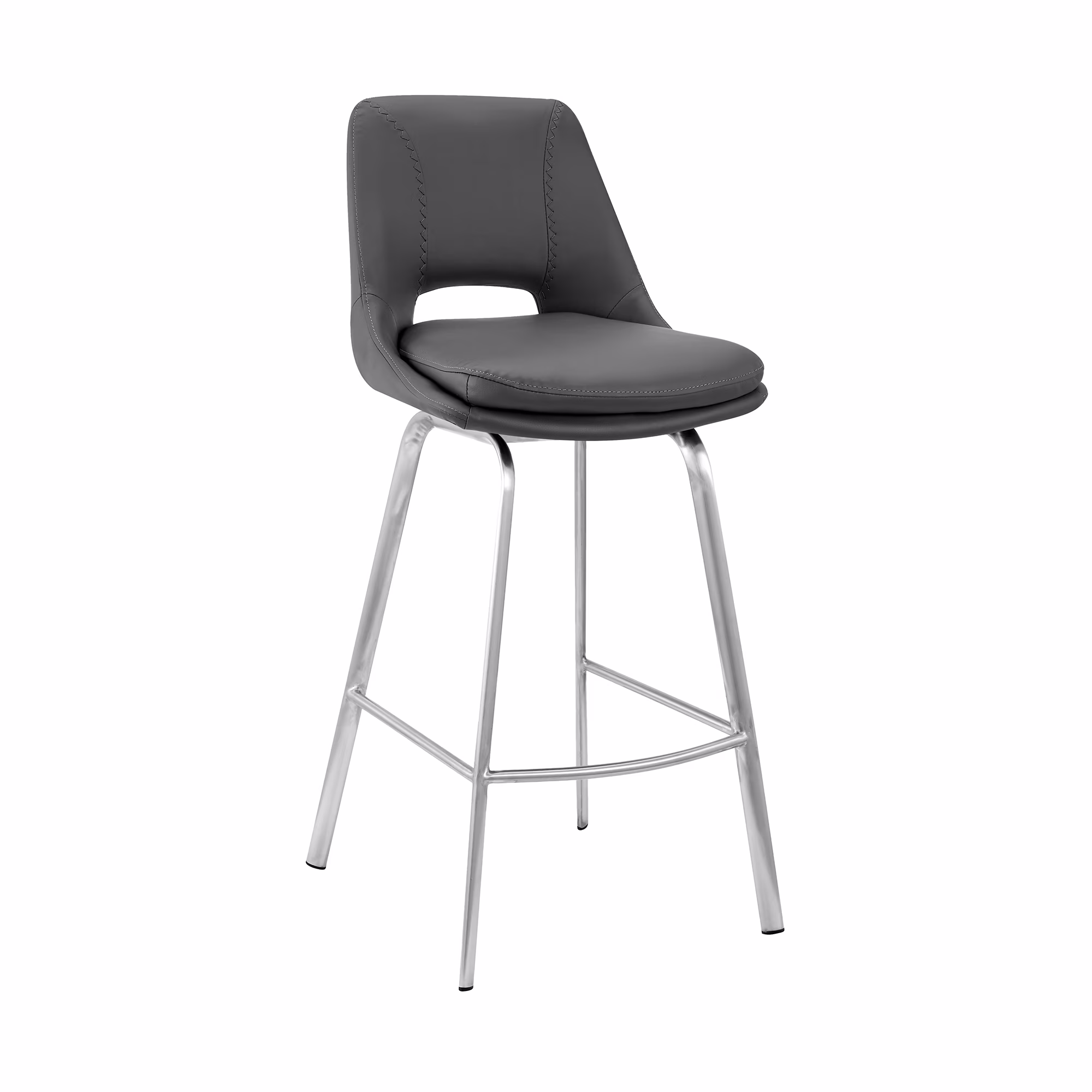 Armen Living Carise 26" Faux Leather/Metal Swivel Counter Stool in Gray/Steel