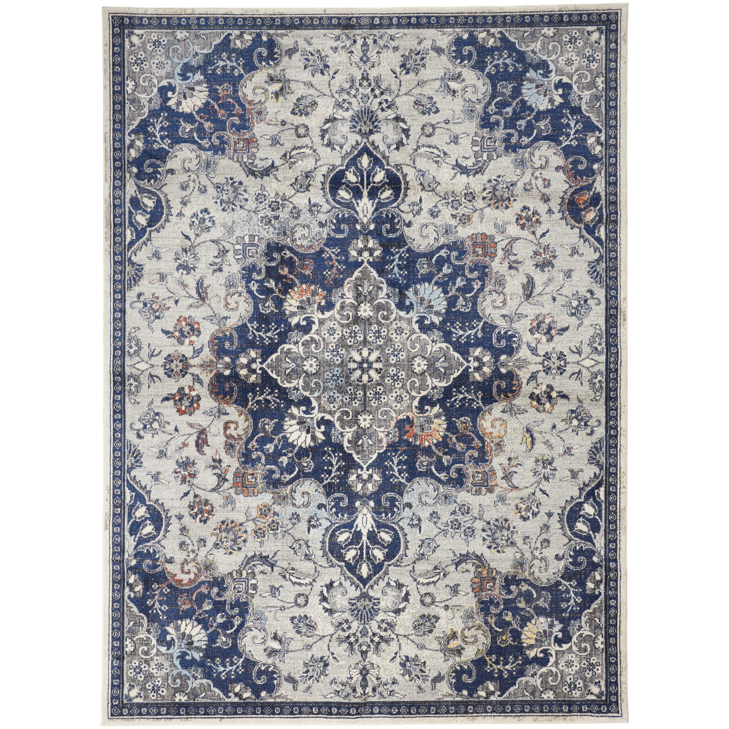 Bellini Transitional Medallion, Gray/Ivory/Blue, 9'-2" x 12'-4" Area Rug