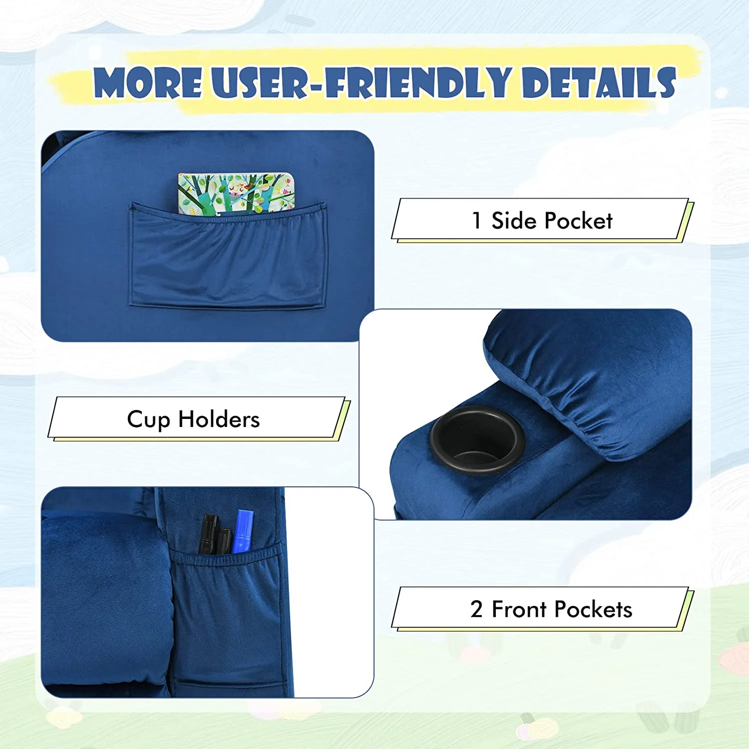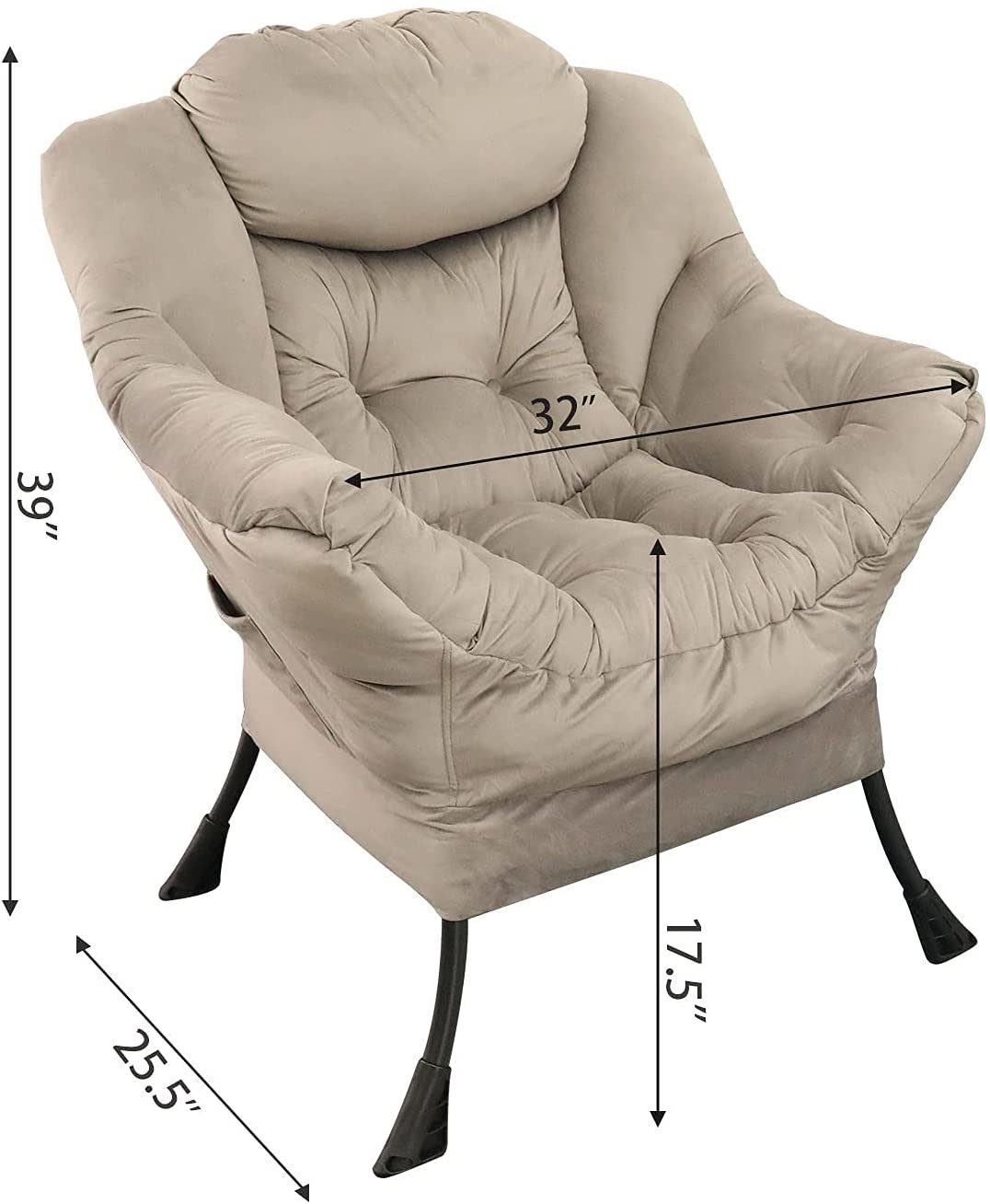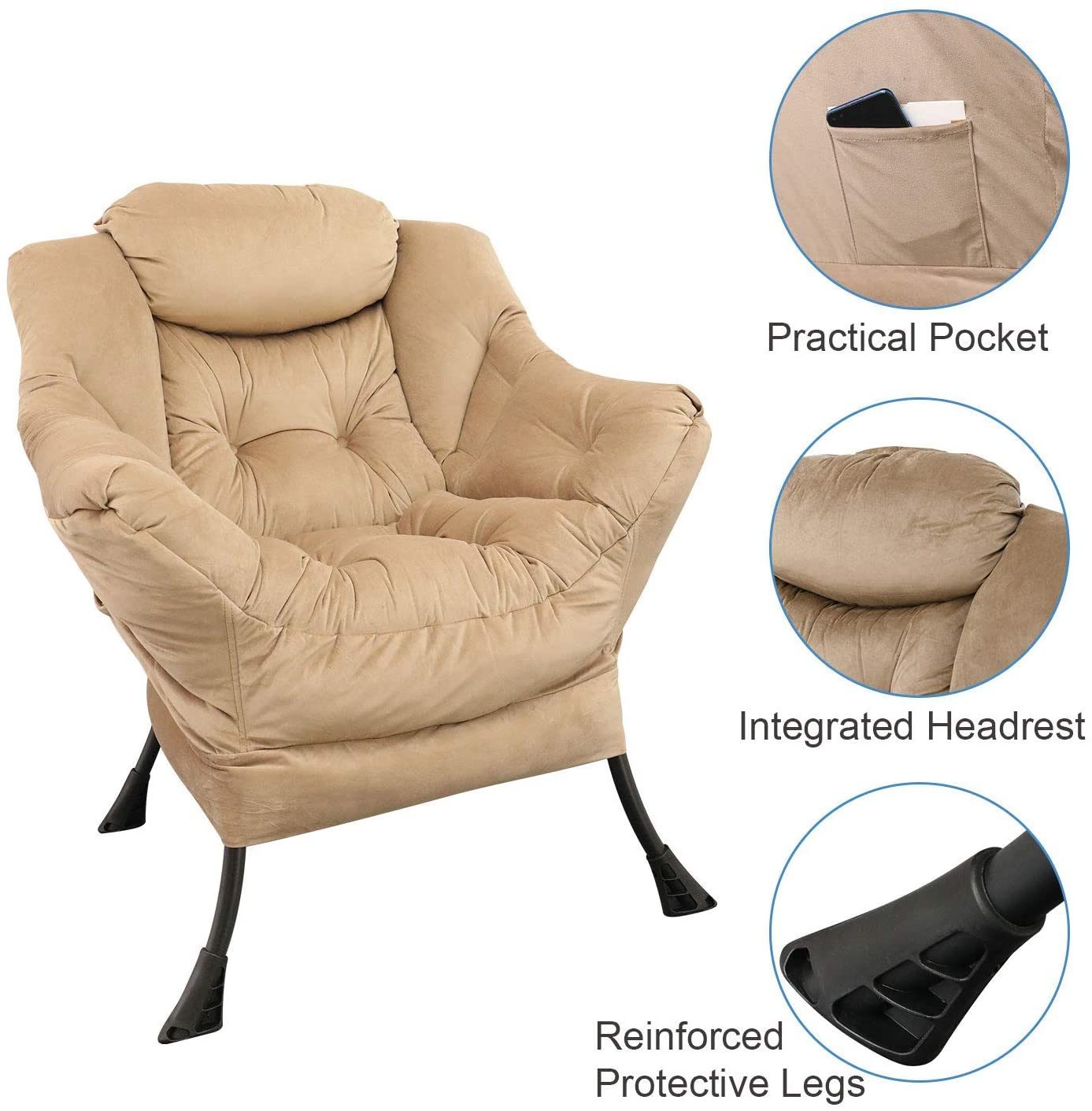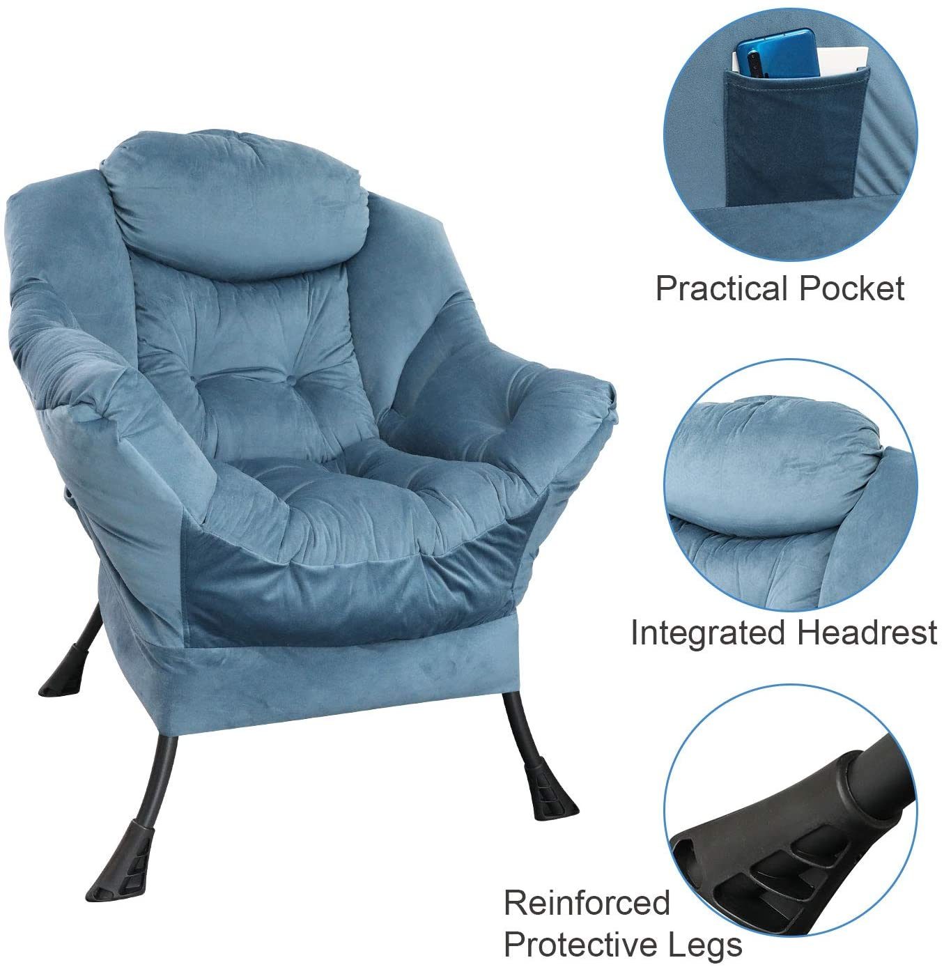 Accent Chair Lazy Reclining Armchair with Removable Metal Legs and High-Density Foam, Single Sofa Chair