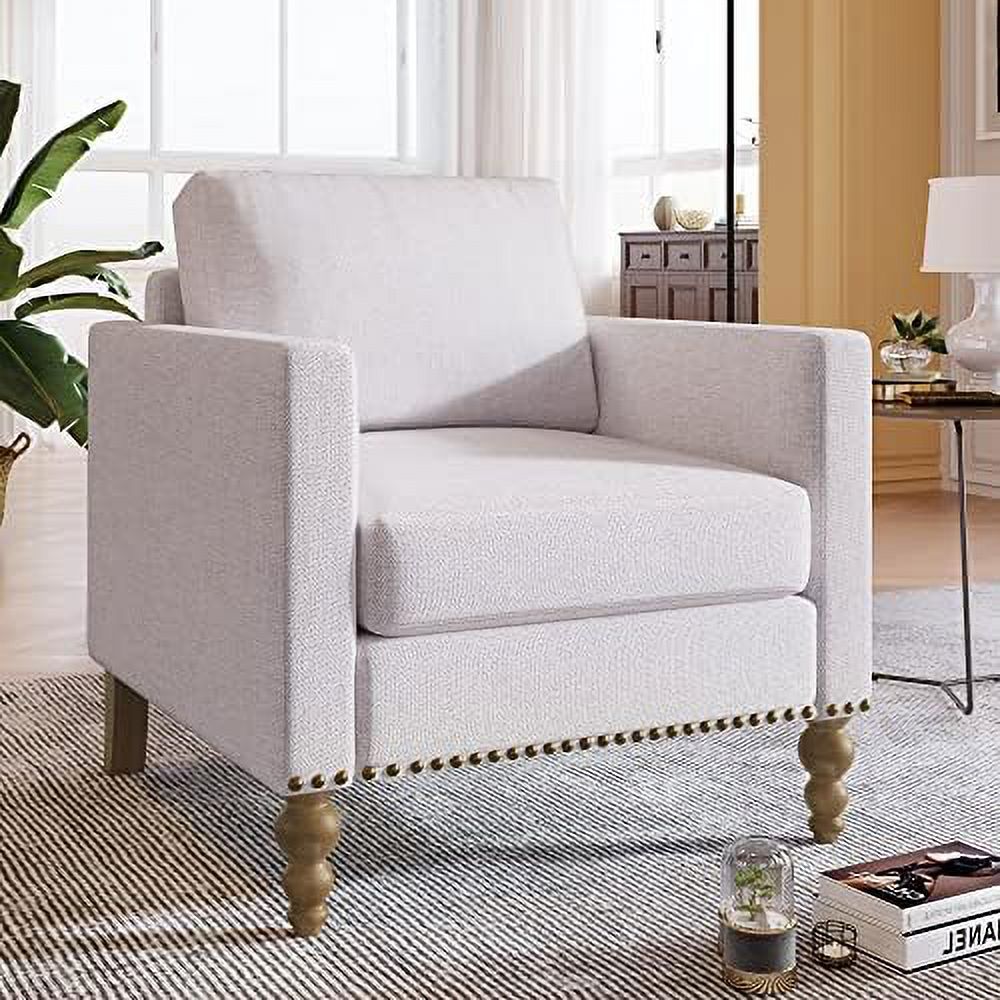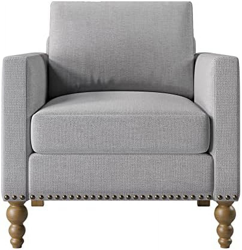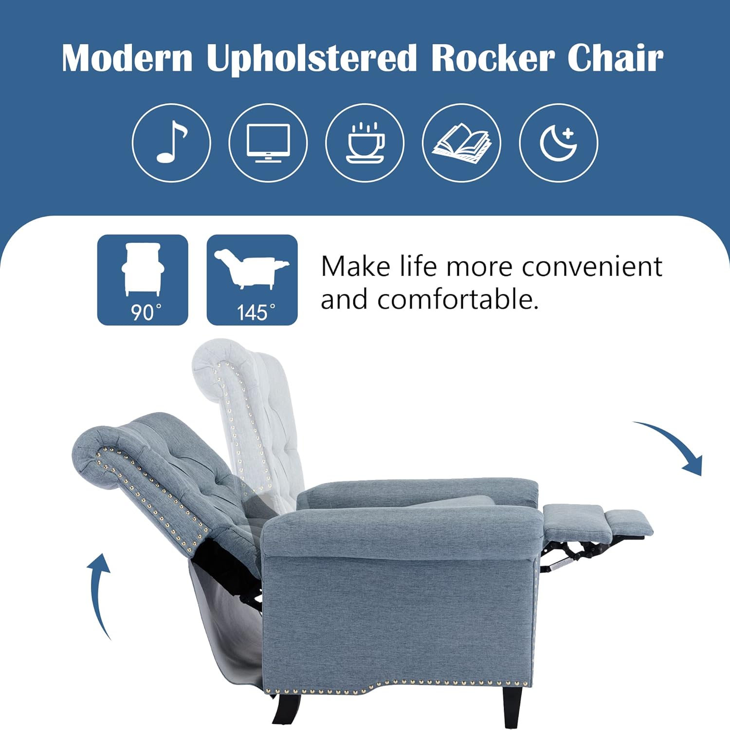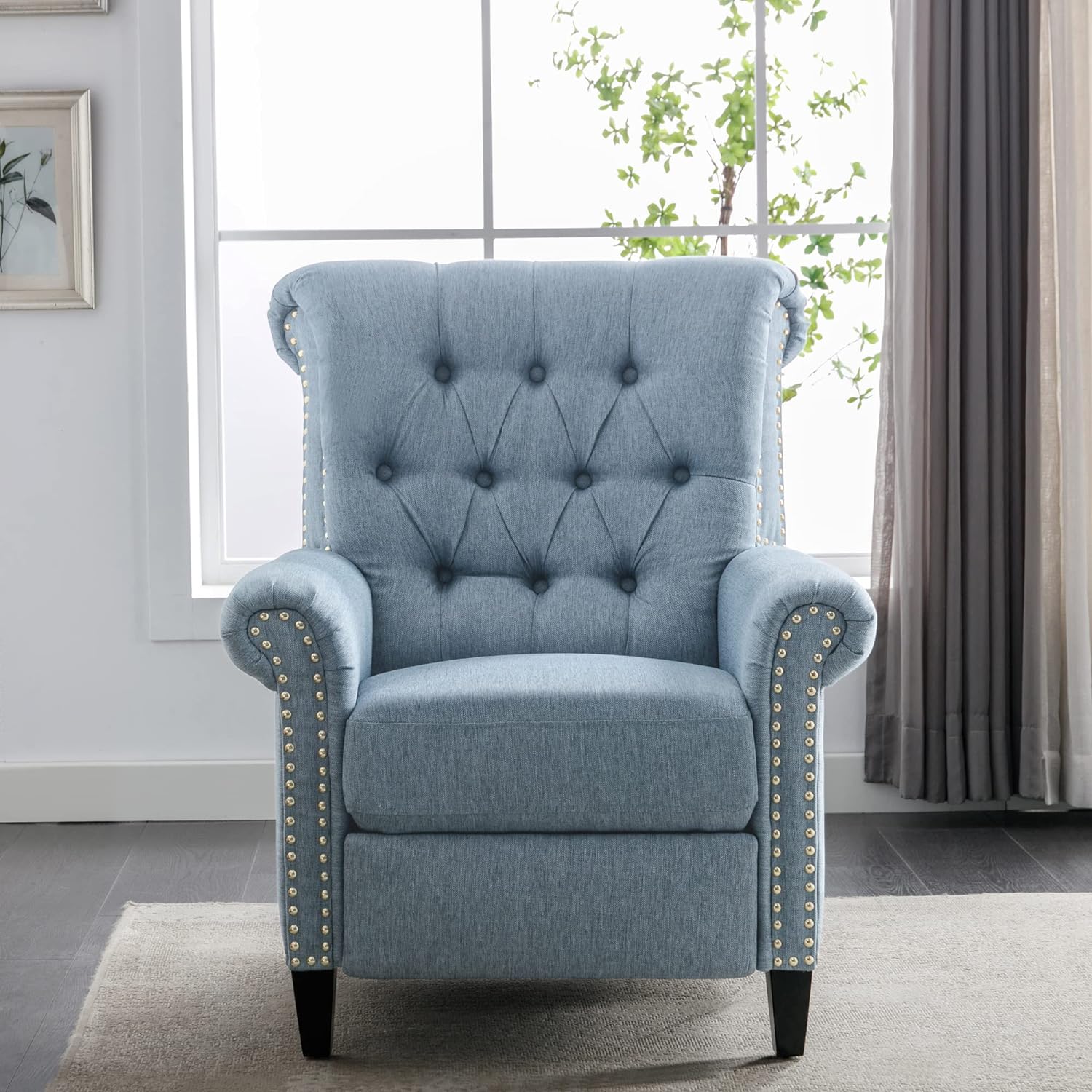 Pushback Linen Tufted Recliner Single Sofa With Nailheads Roll Arm For Living Room, Bedroom, Office, Blue