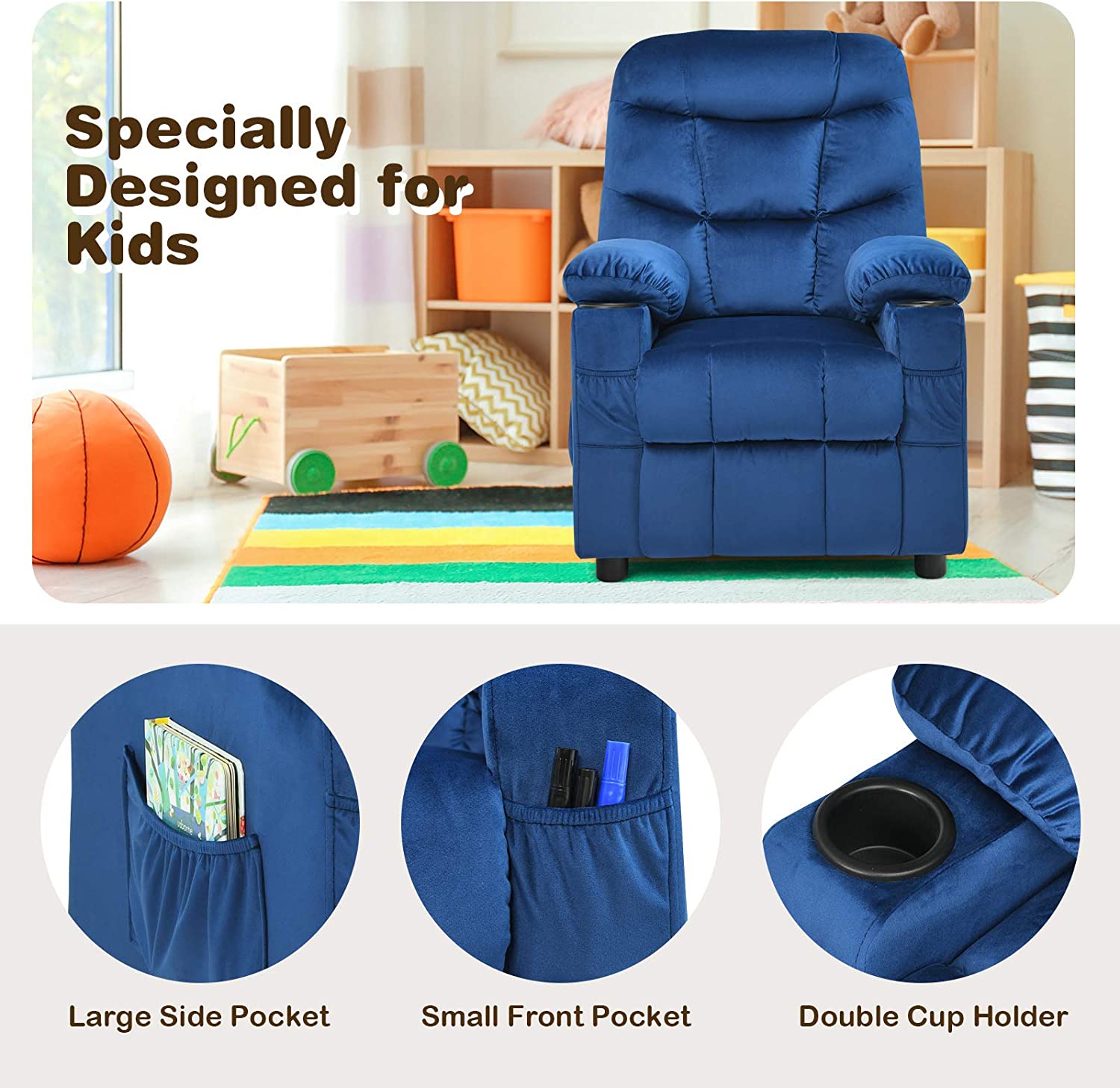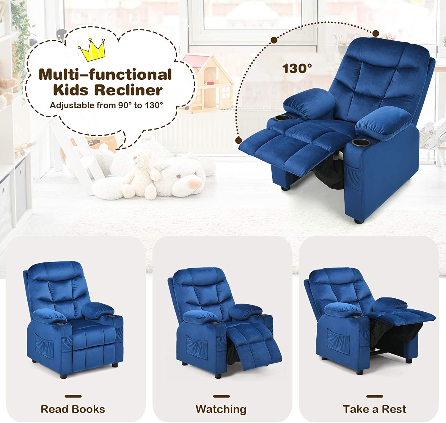 Noble House Canaan Standard Velvet Push Back High Leg Recliner, Cobalt
