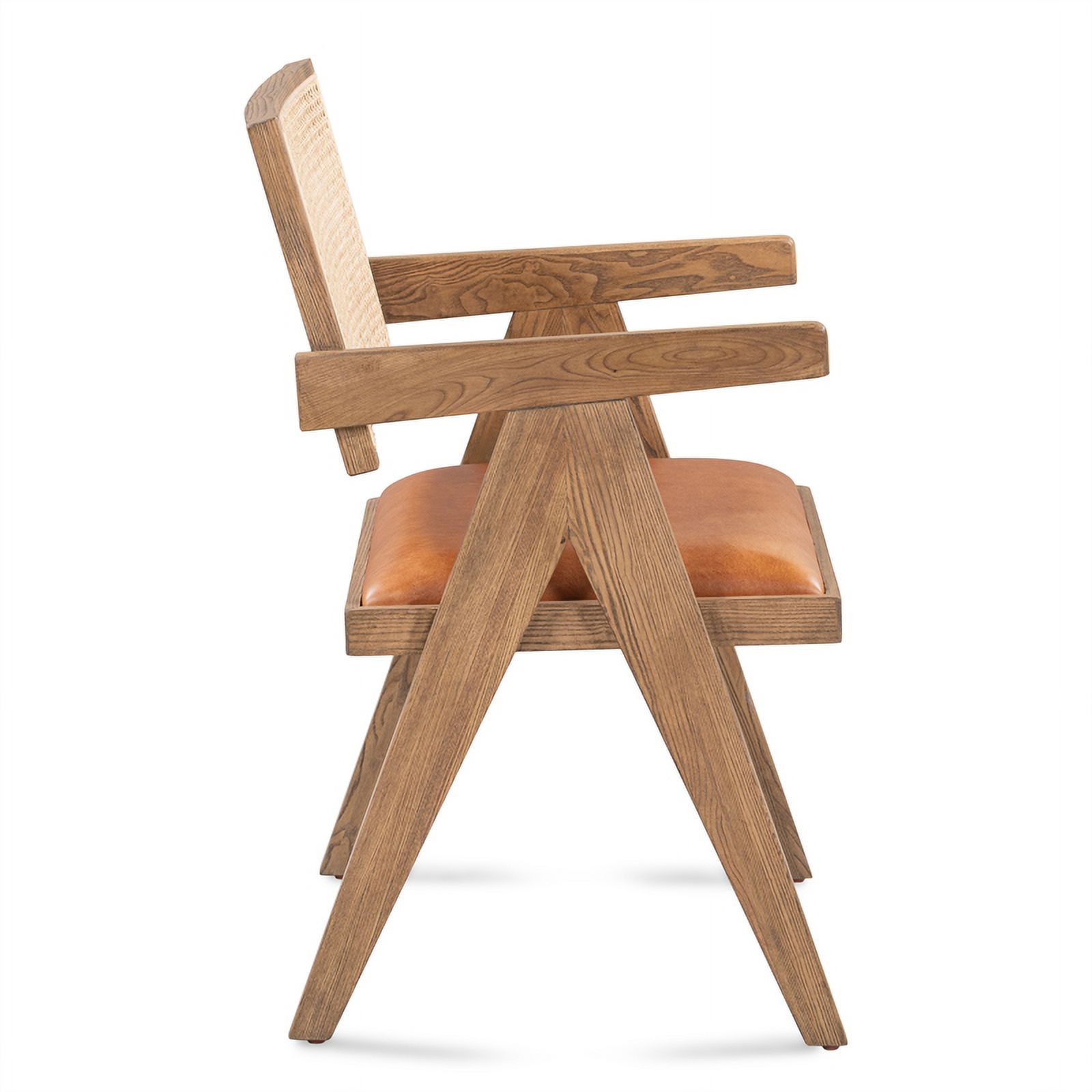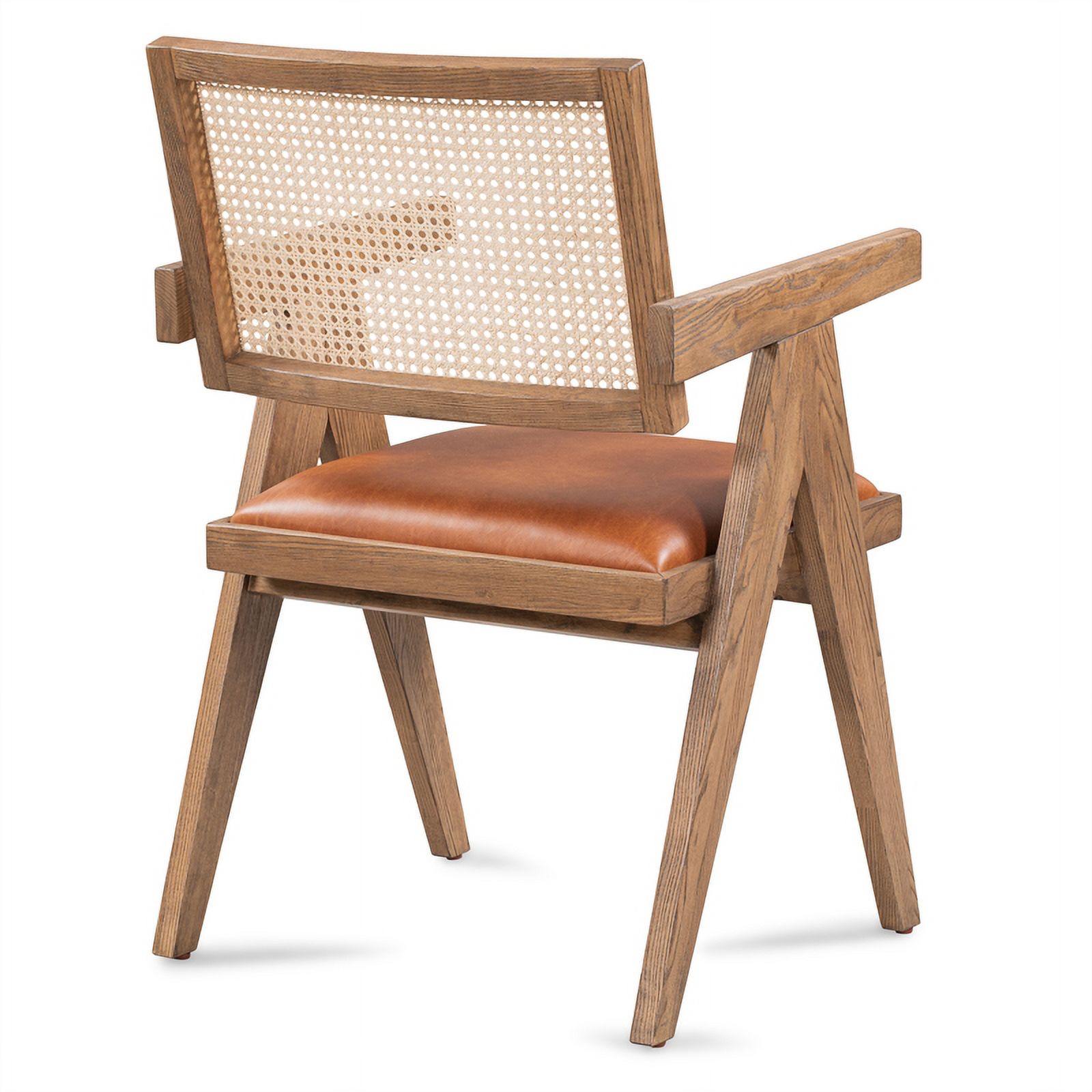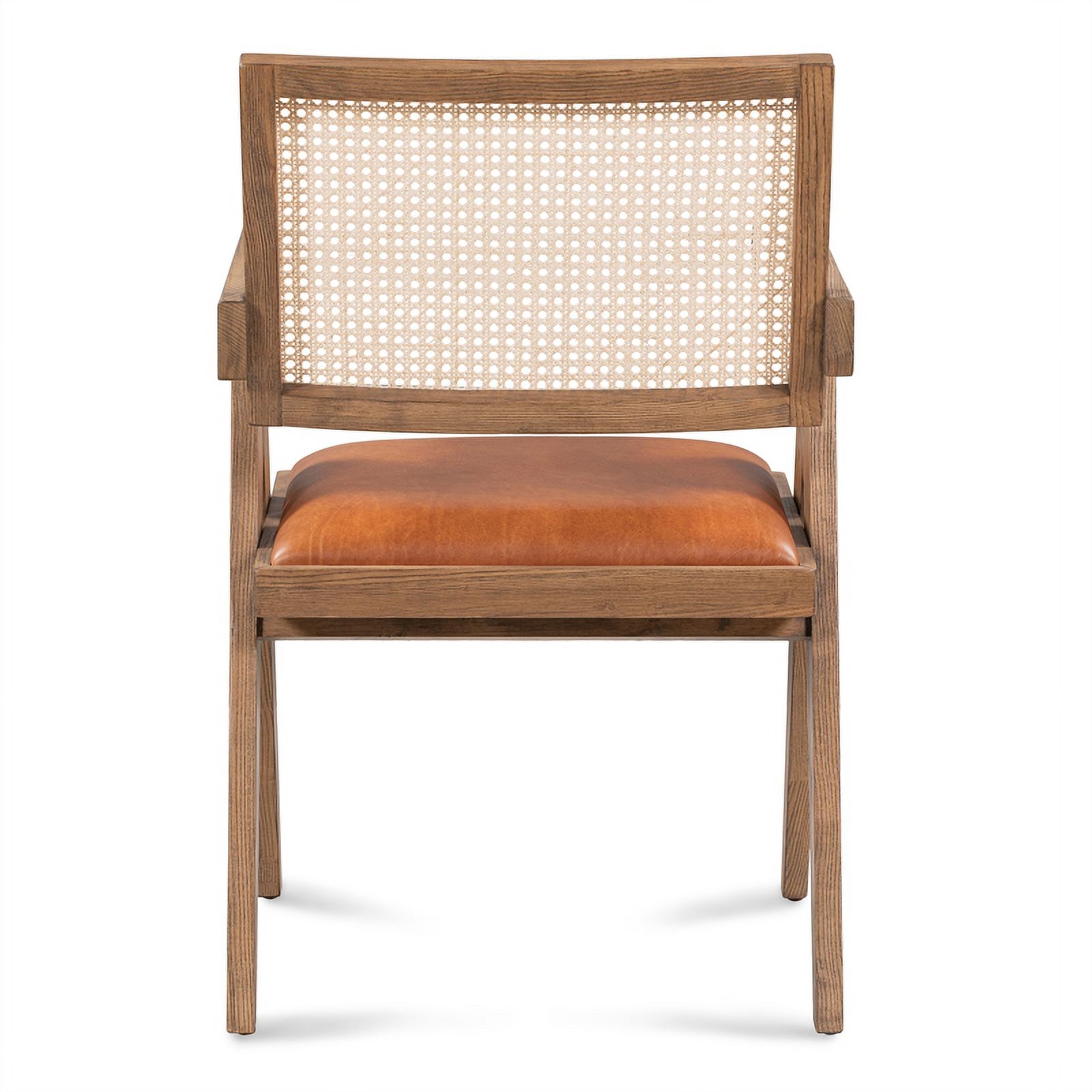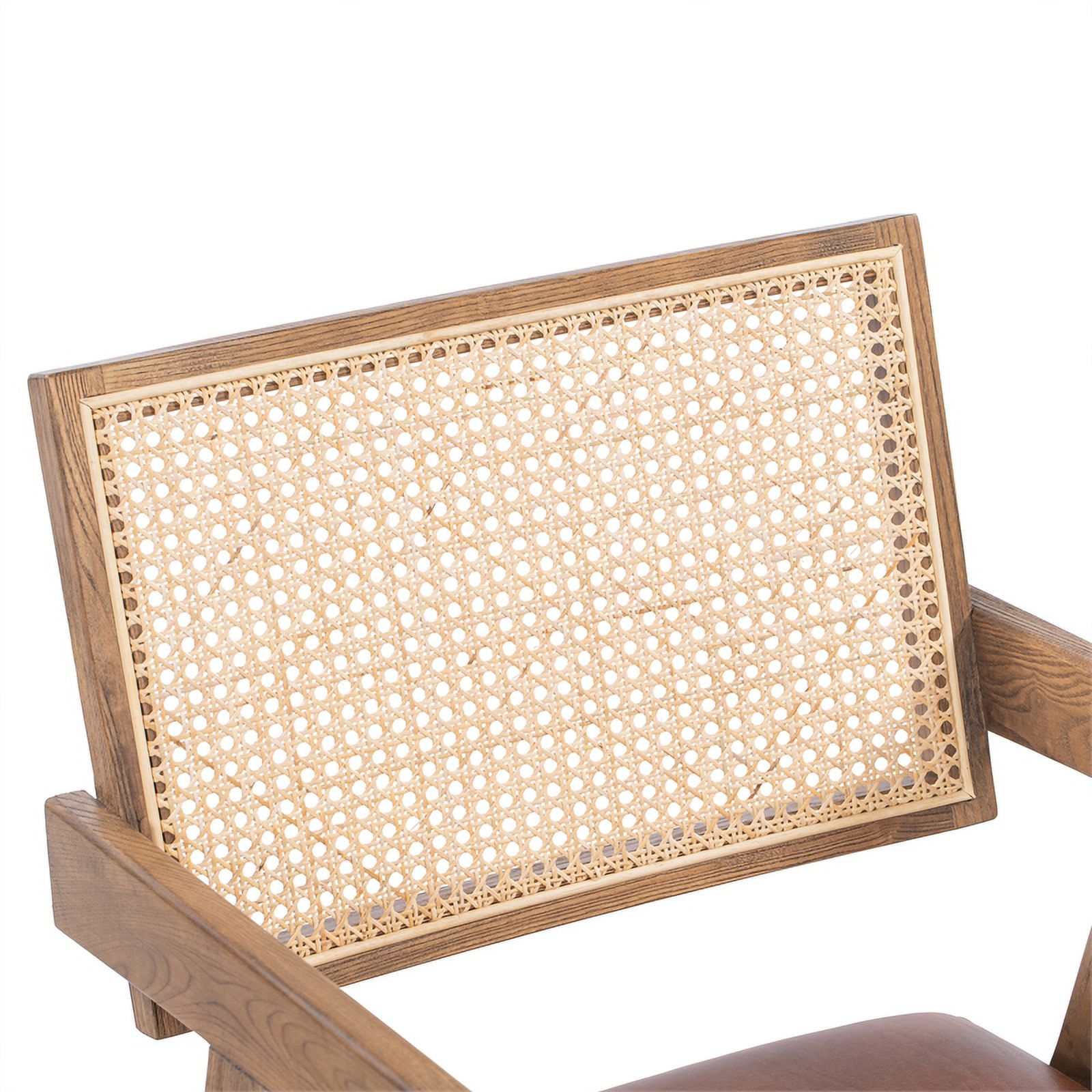 Pemberly Row Tan Top-Grain Leather & Wood Dining Chair with Rattan Back