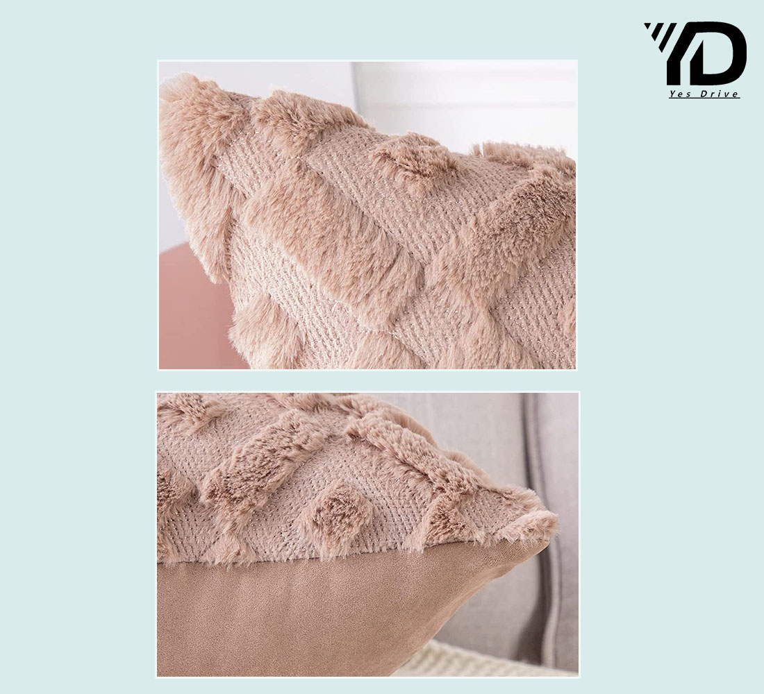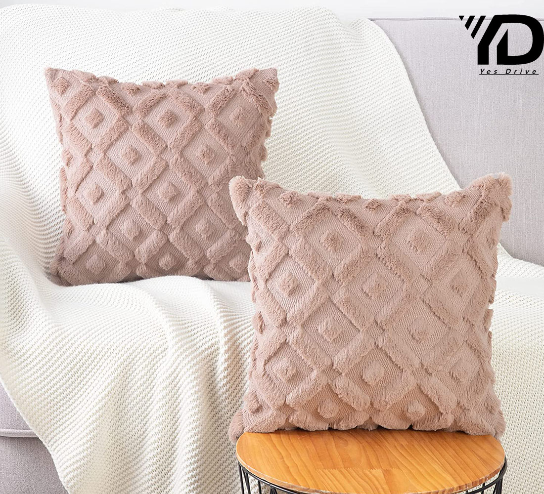 Set of 2 Soft Plush Short Wool Velvet Decorative Throw Pillow Covers Square Luxury Style Cushion Case European Pillow Shell for Sofa Bedroom