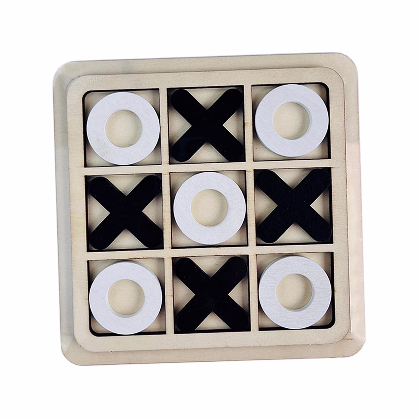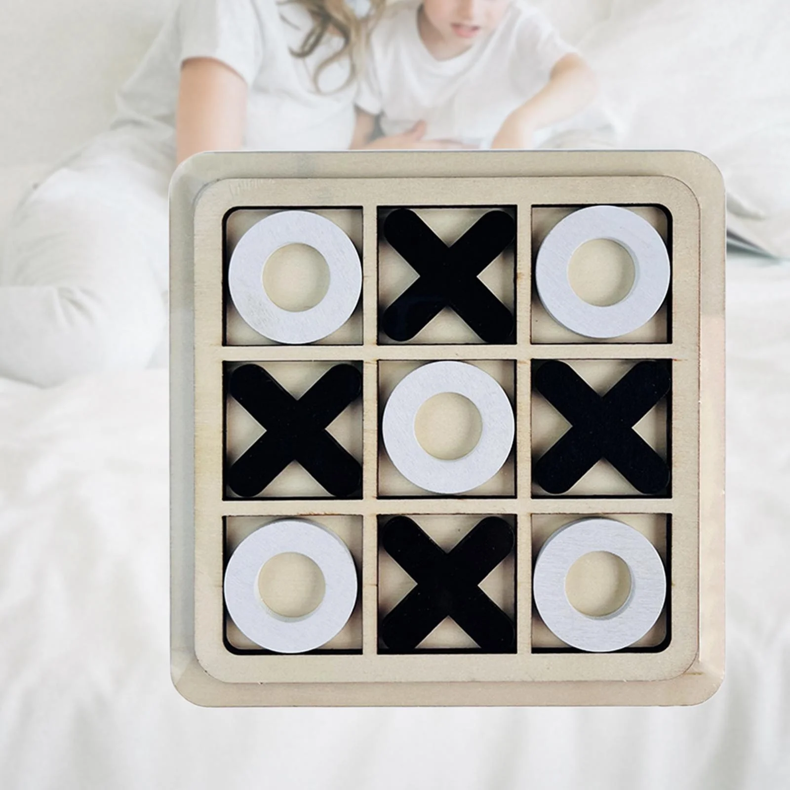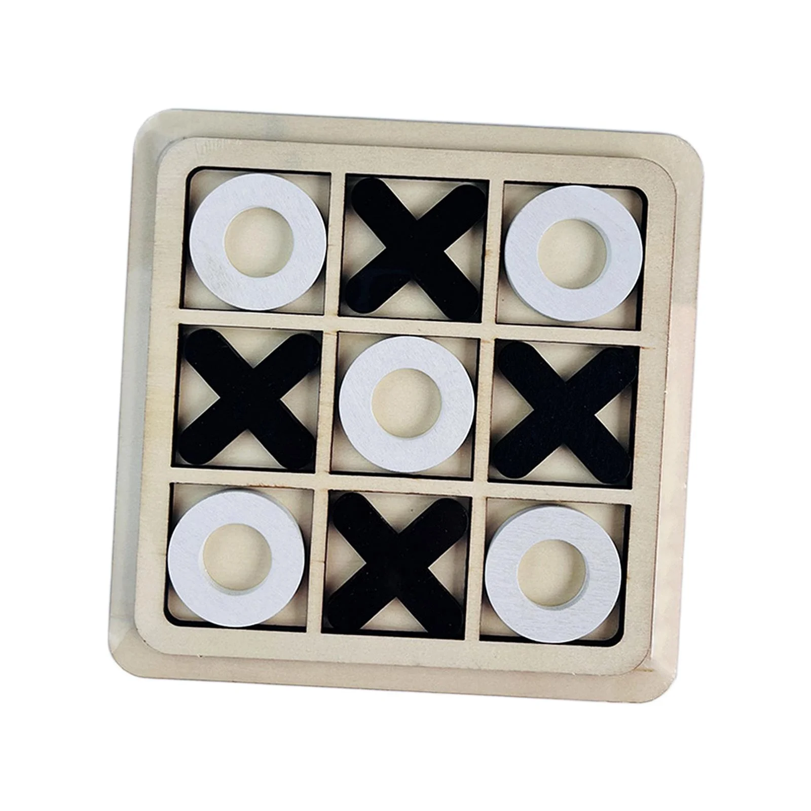 Wood Tic TAC Toe Board Game XO Table Toy Unique Gifts for Kids Entertainments 18cmx18cm Rustic Night Activity Educational Toys black white