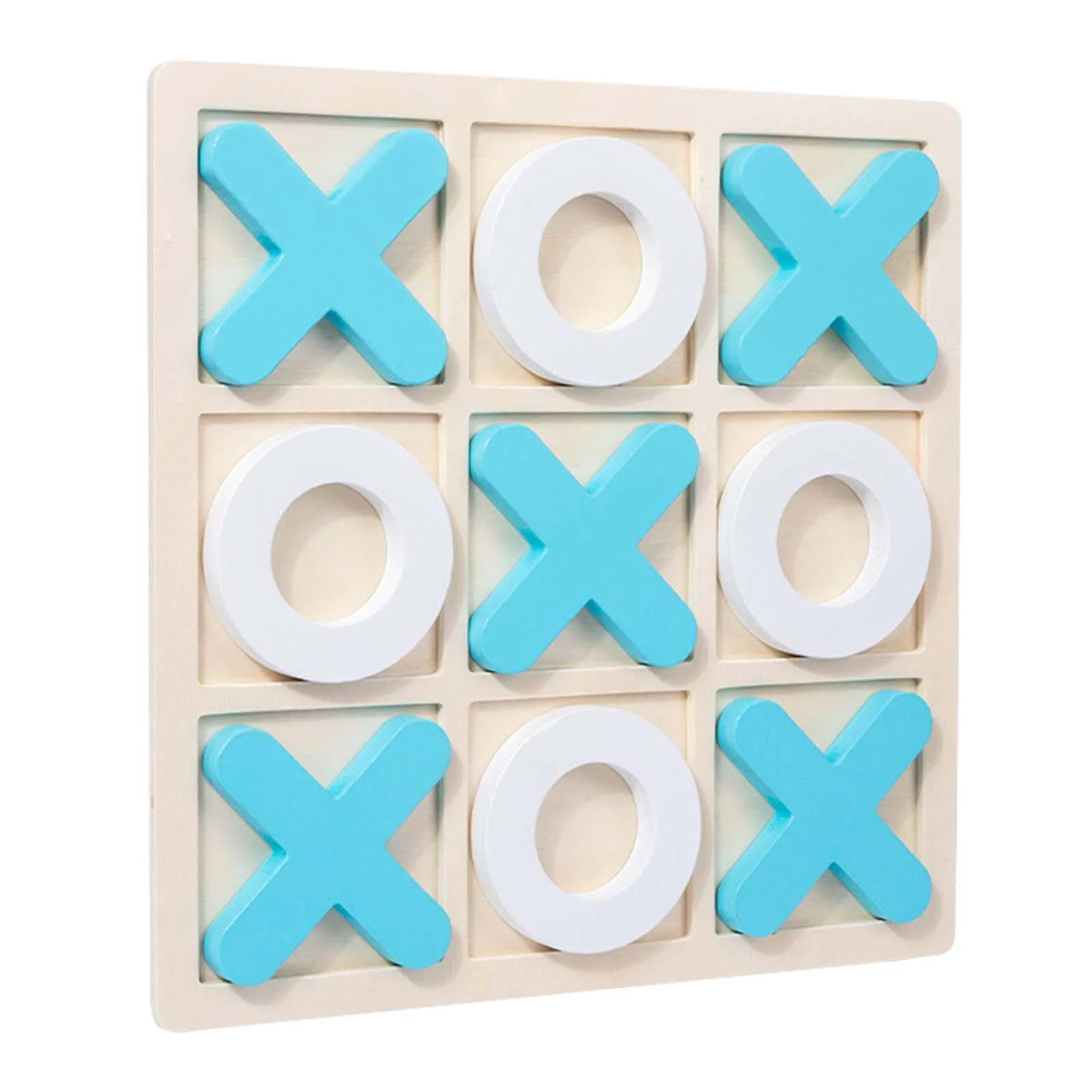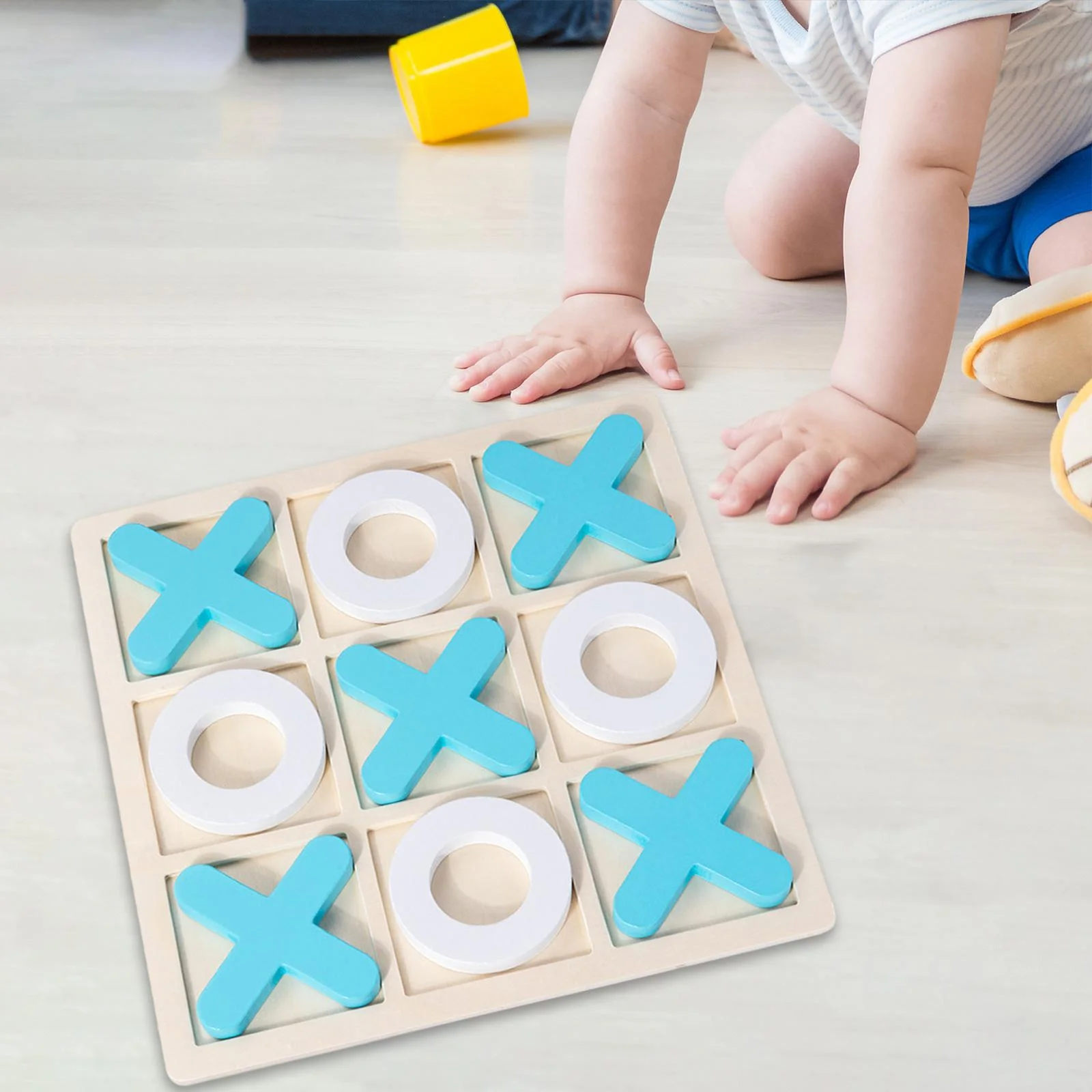 Wooden Board Tic Tac Toe Game XO Table Toy Classical Family Children Puzzle Game Educational Toys, Random Color