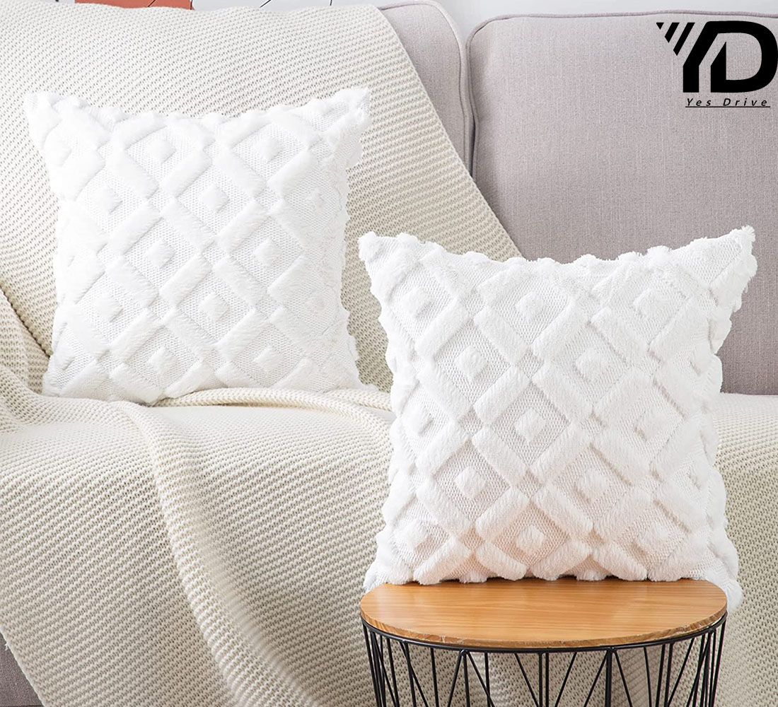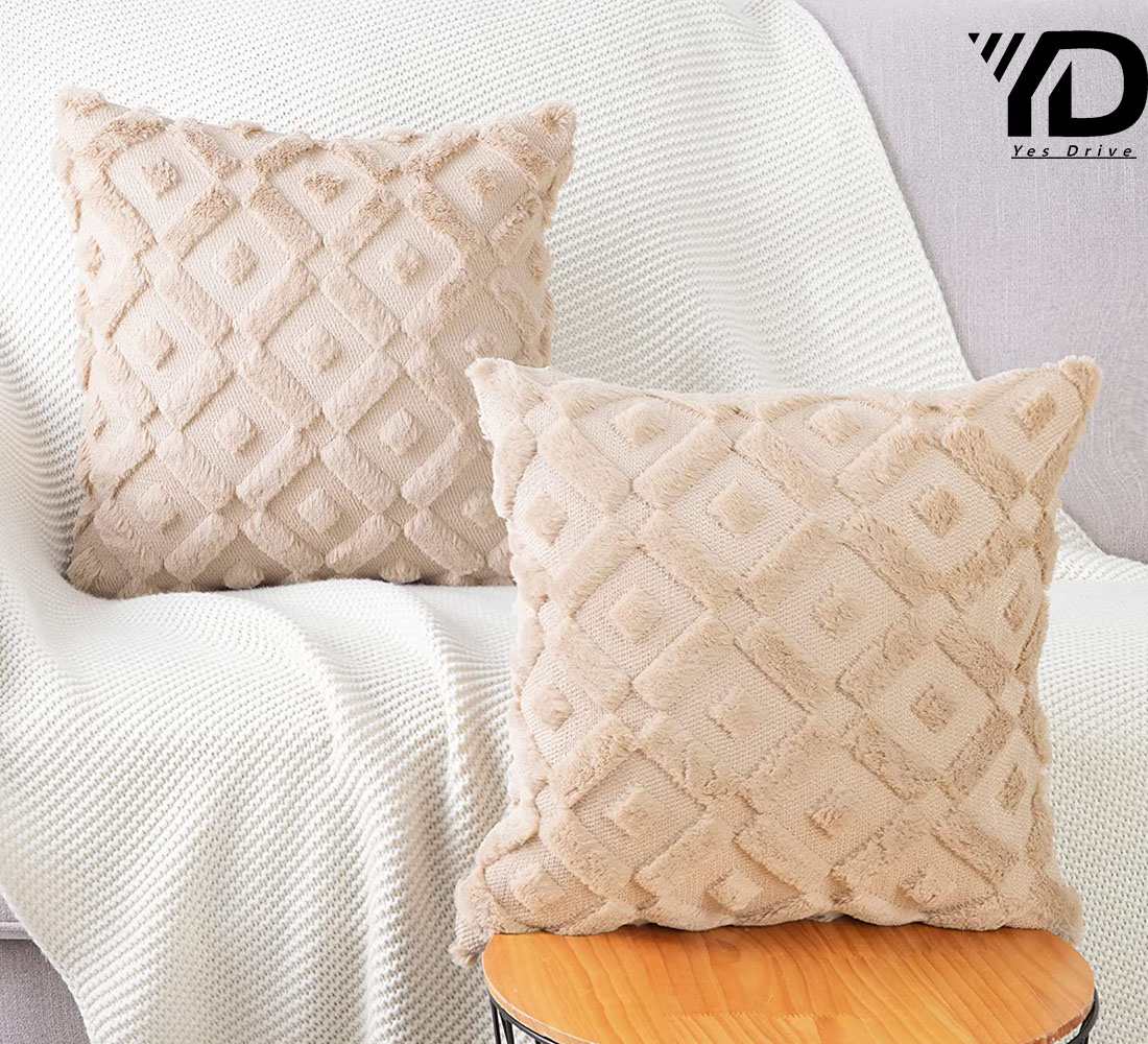 Set of 2 Soft Plush Short Wool Velvet Decorative Throw Pillow Covers Square Luxury Style Cushion Case Pillow Shell for Sofa Bedroom