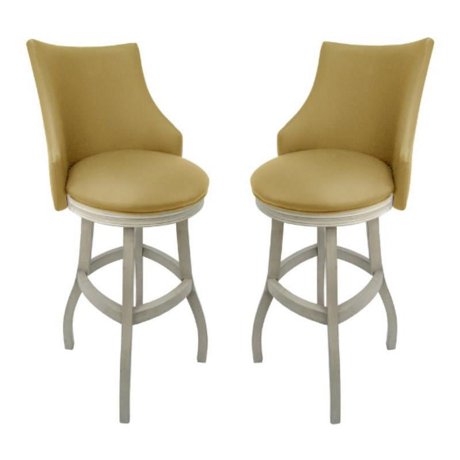 Home Square 34" Swivel Wood Tall Bar Stool in Tan & White - Set of 2
