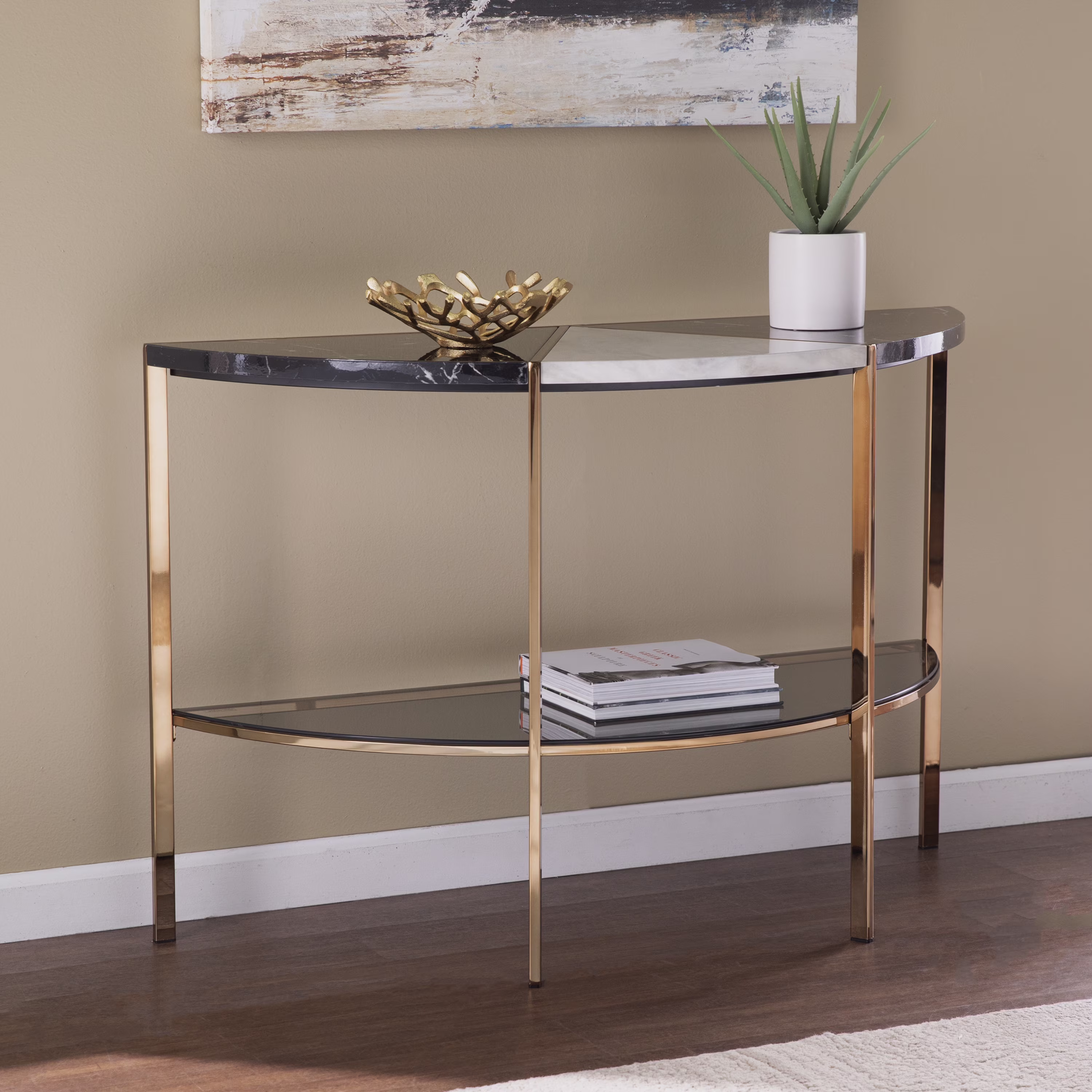 Southern Enterprises Cortihana Half Moon Faux Marble Console Table, Gold