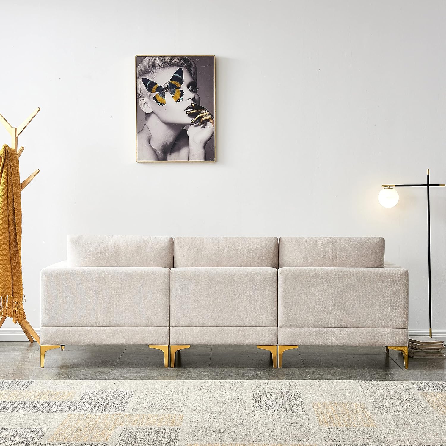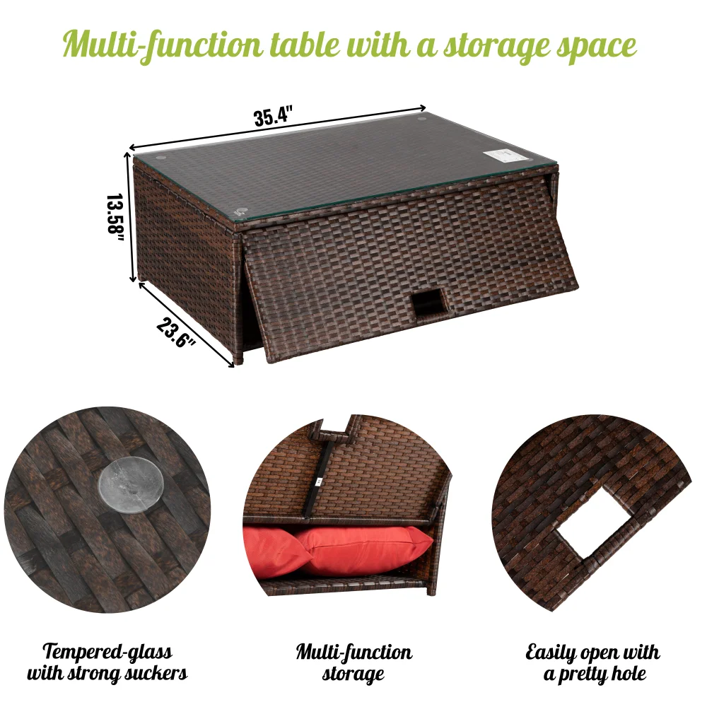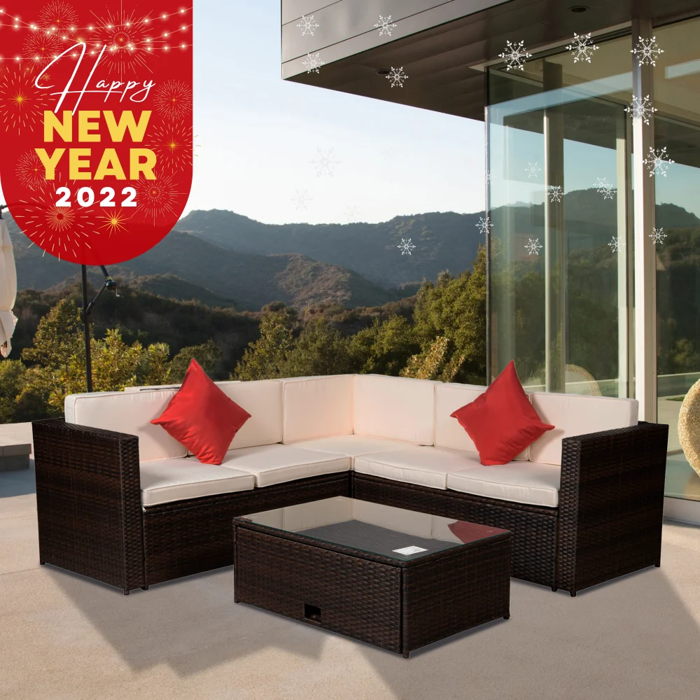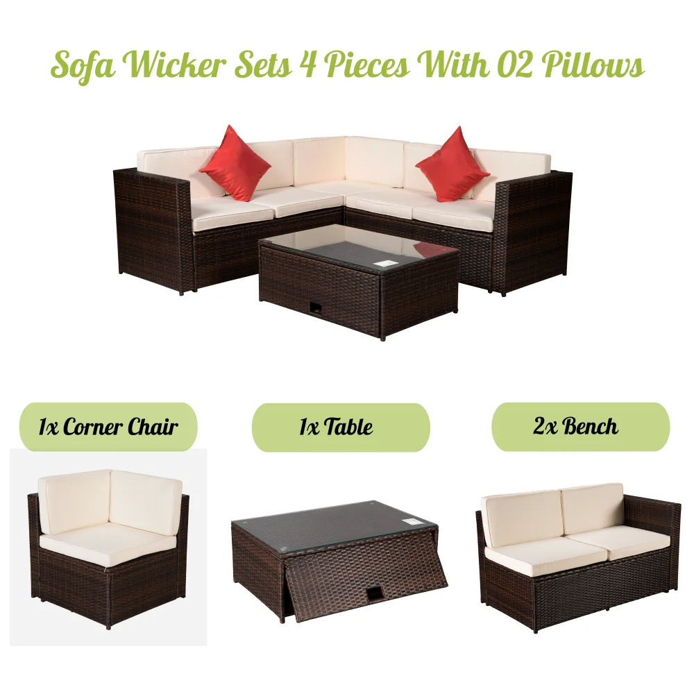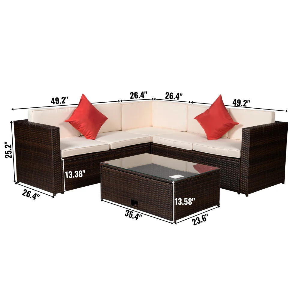 Holaki Outdoor Garden Patio Furniture 4-Seat Brown PE Rattan Wicker Sectional Cushioned Sofa Sets, Beige