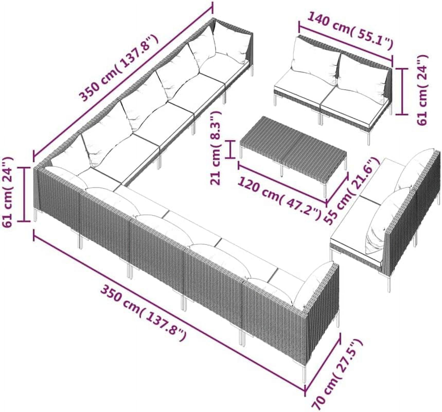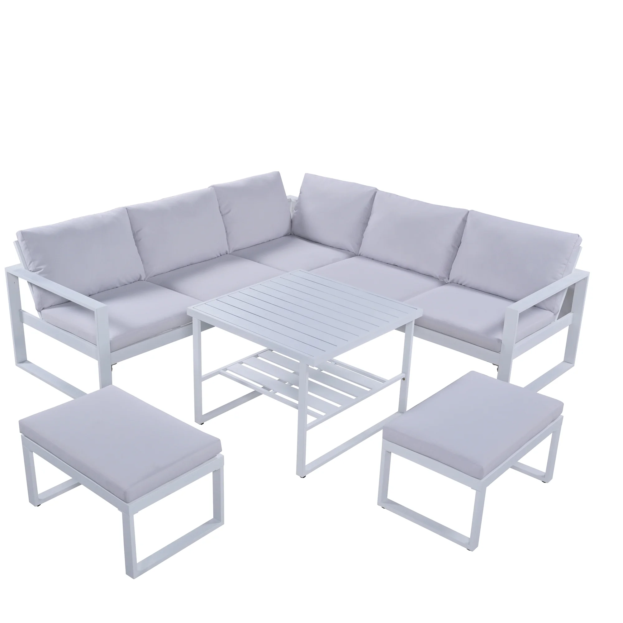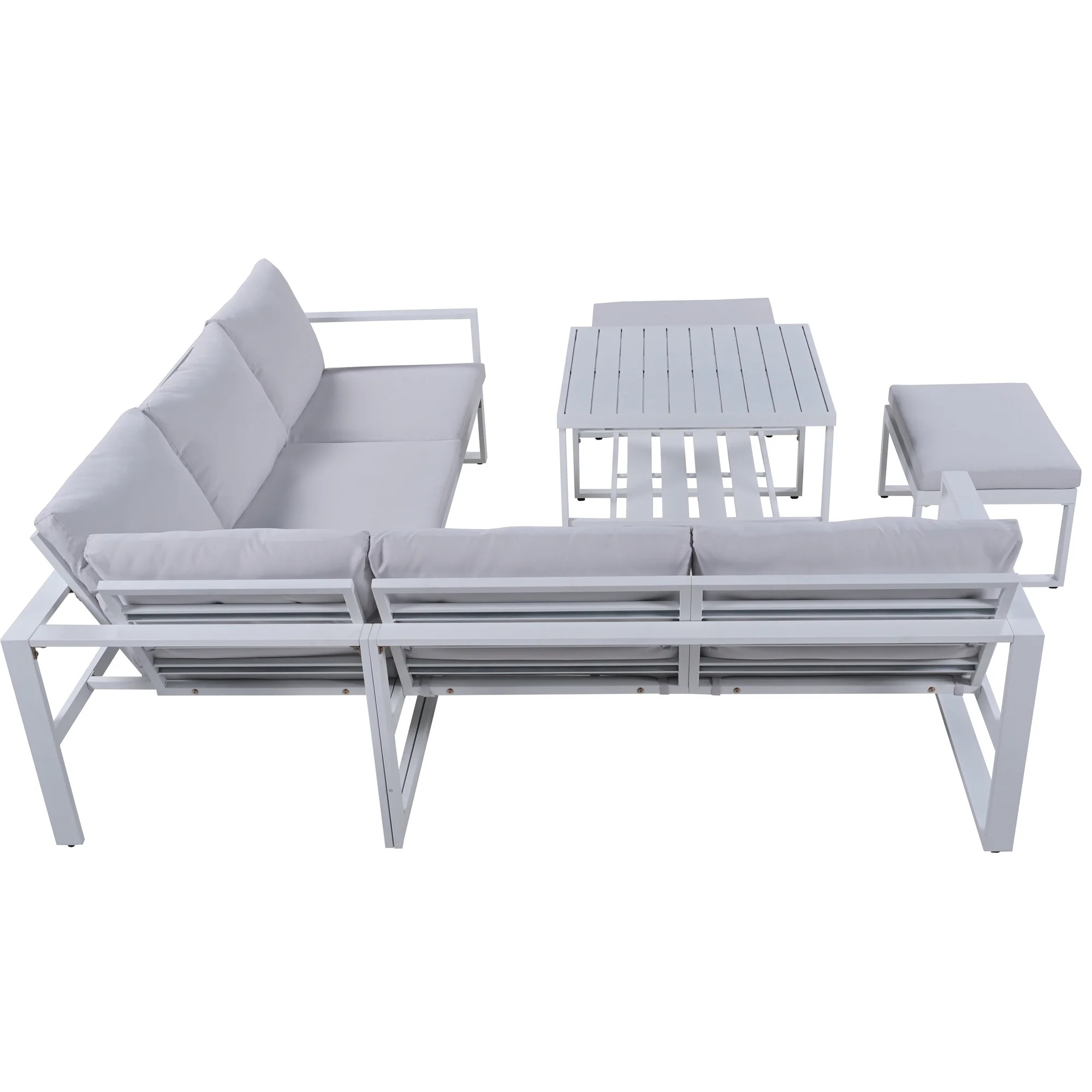 CoSoTower Industrial Style Outdoor Sofa Combination Set with 2 Love Sofa, 1 Single Sofa, 1 Table, 2 Bench