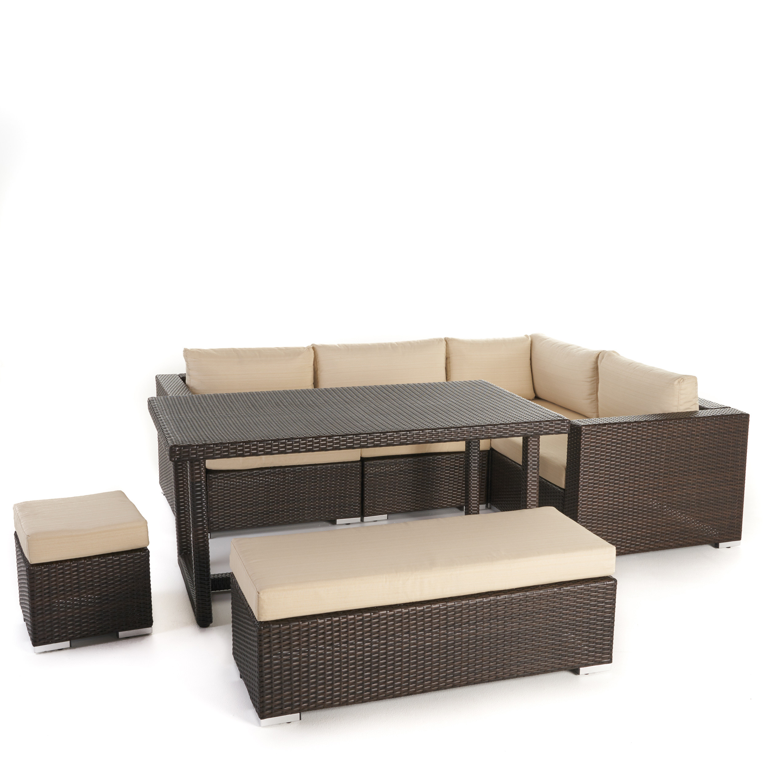 Santa Maria Outdoor 7 Seater Wicker Dining Sofa Set with Water Resistant Cushions