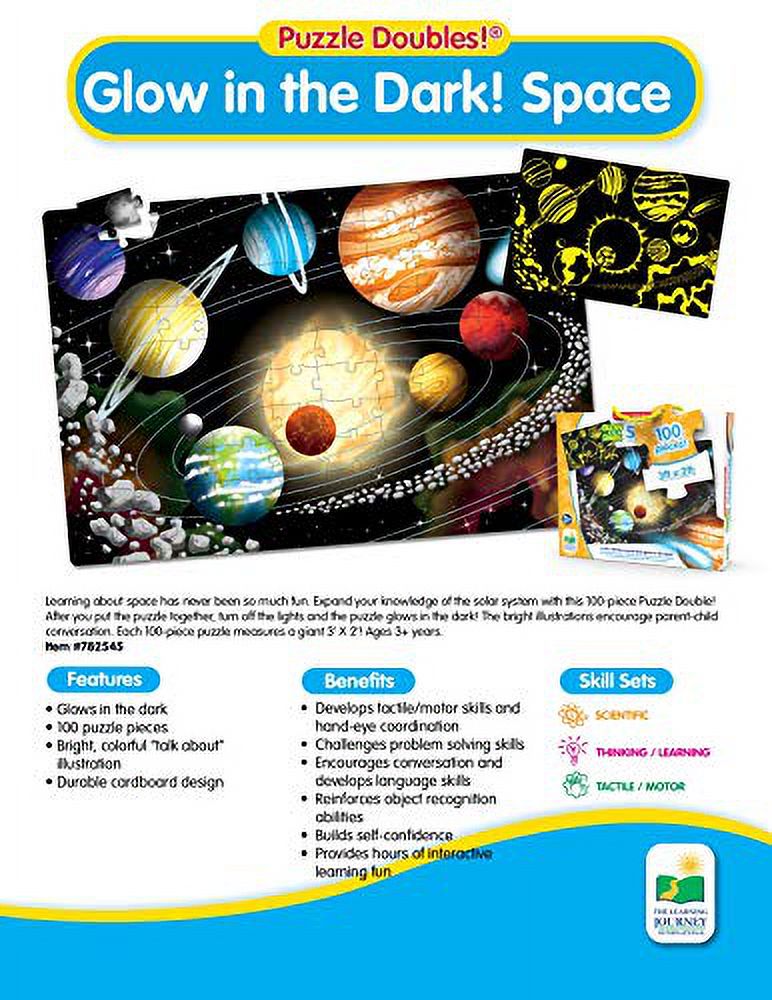 The Learning Journey Puzzle Doubles Glow in the Dark - Space - 100 Piece Glow in the Dark Puzzle, Space Puzzles For Kids Ages 4-8, Solar System Puzzle For Kids, Award Winning Educational Toys