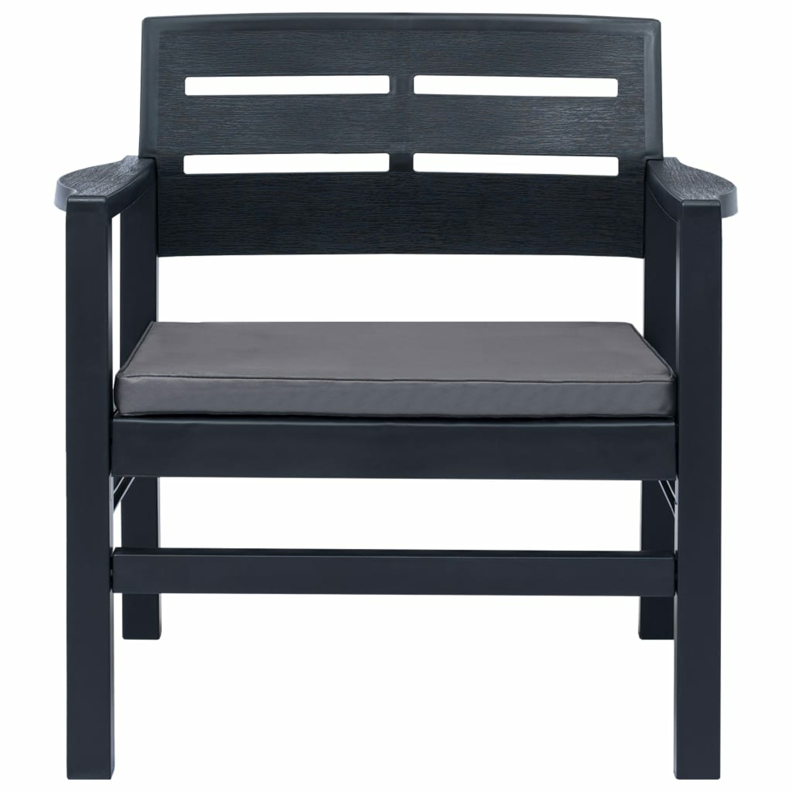 moobody 3 Piece Patio Lounge Set with Anthracite Cushions 2 Benches and Table Conversation Set Plastic White Outdoor Sectional Sofa Set for Garden, Balcony, Yard, Deck