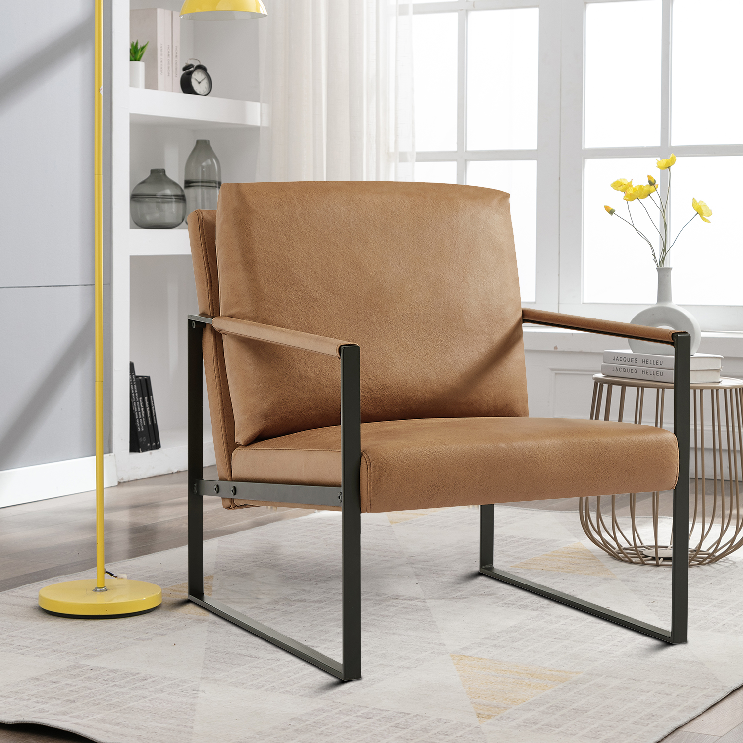 HULALA HOME Clément 28" Wide Contemporary Upholstered Accent Barrel Chair with Black Base by CAMEL