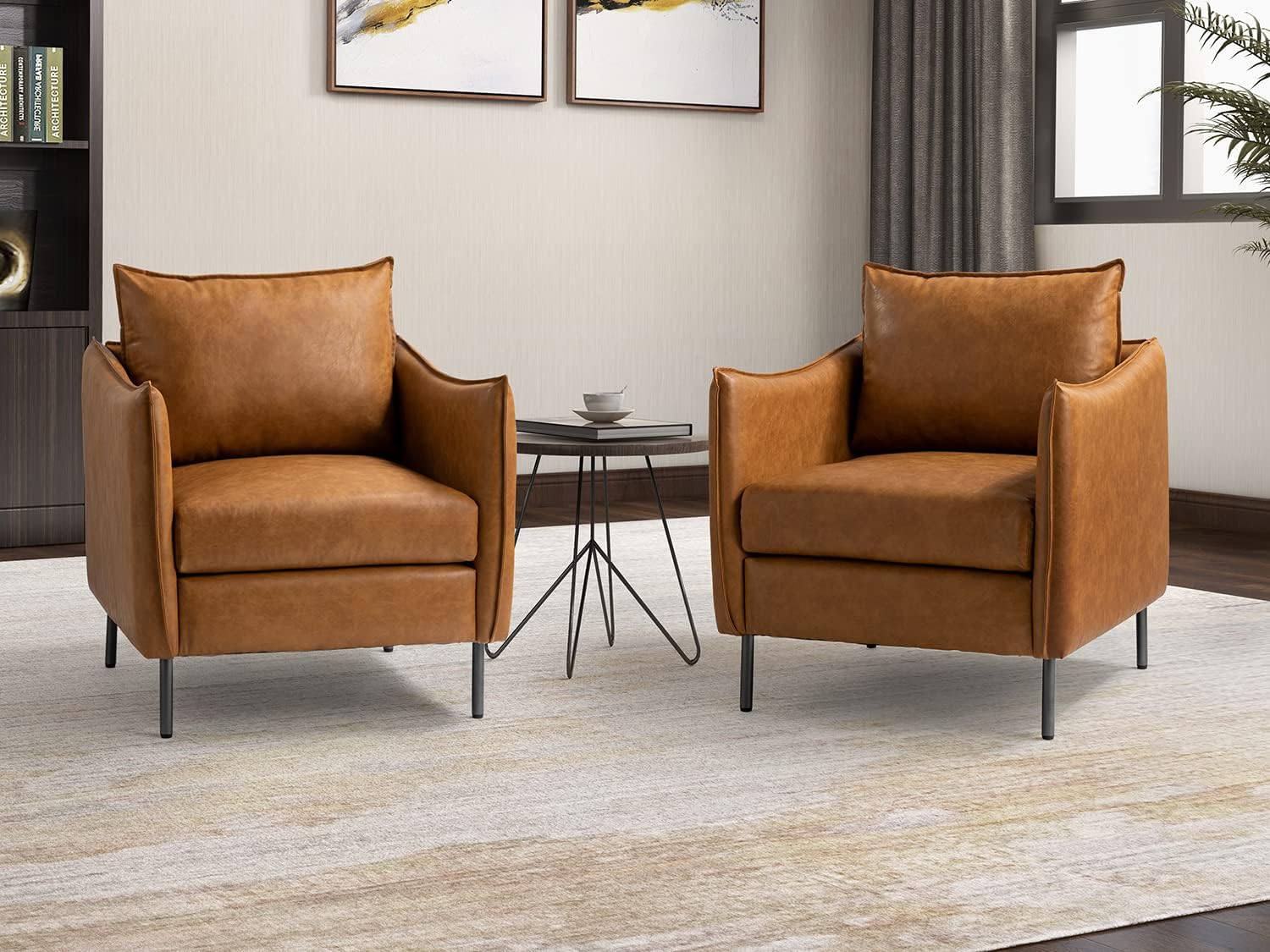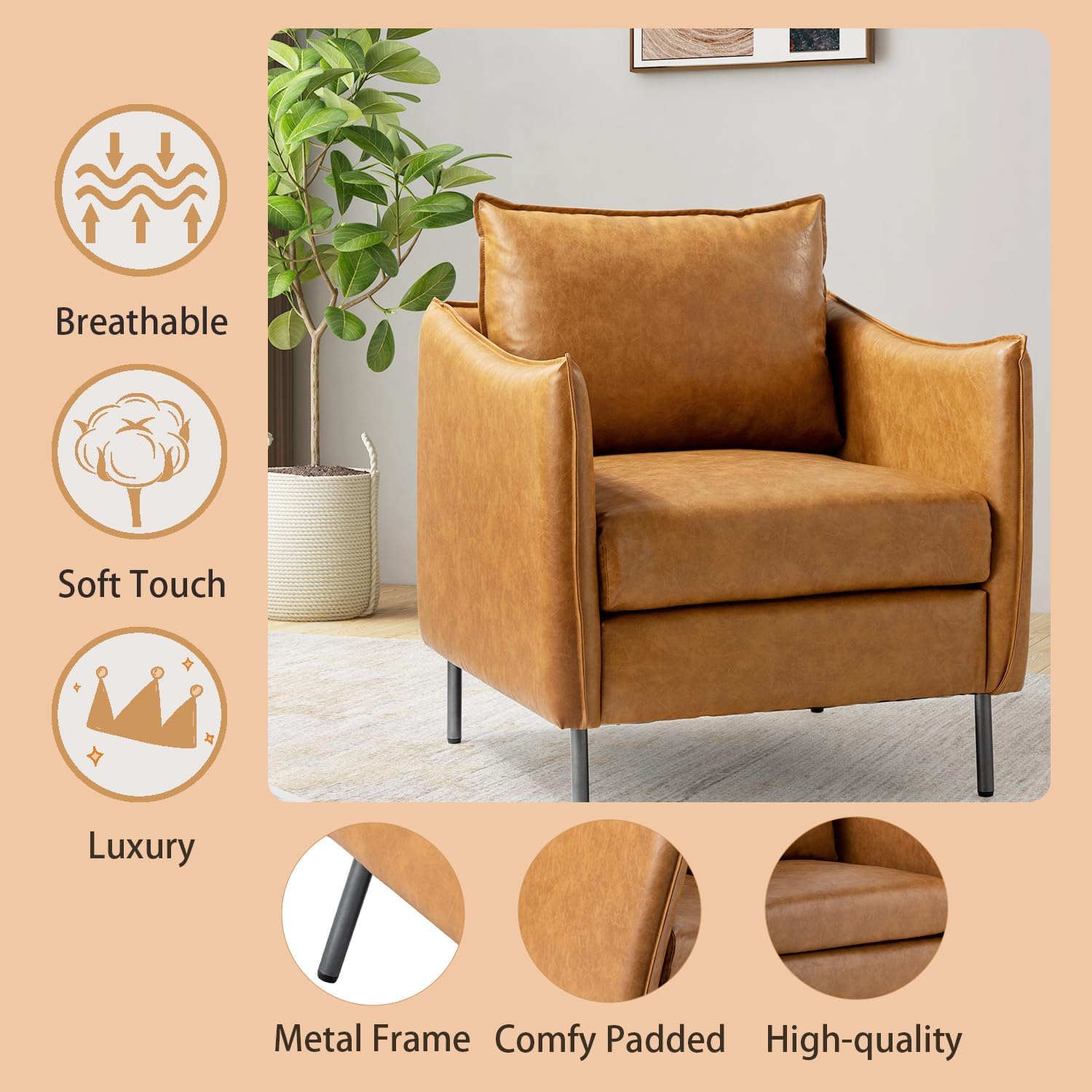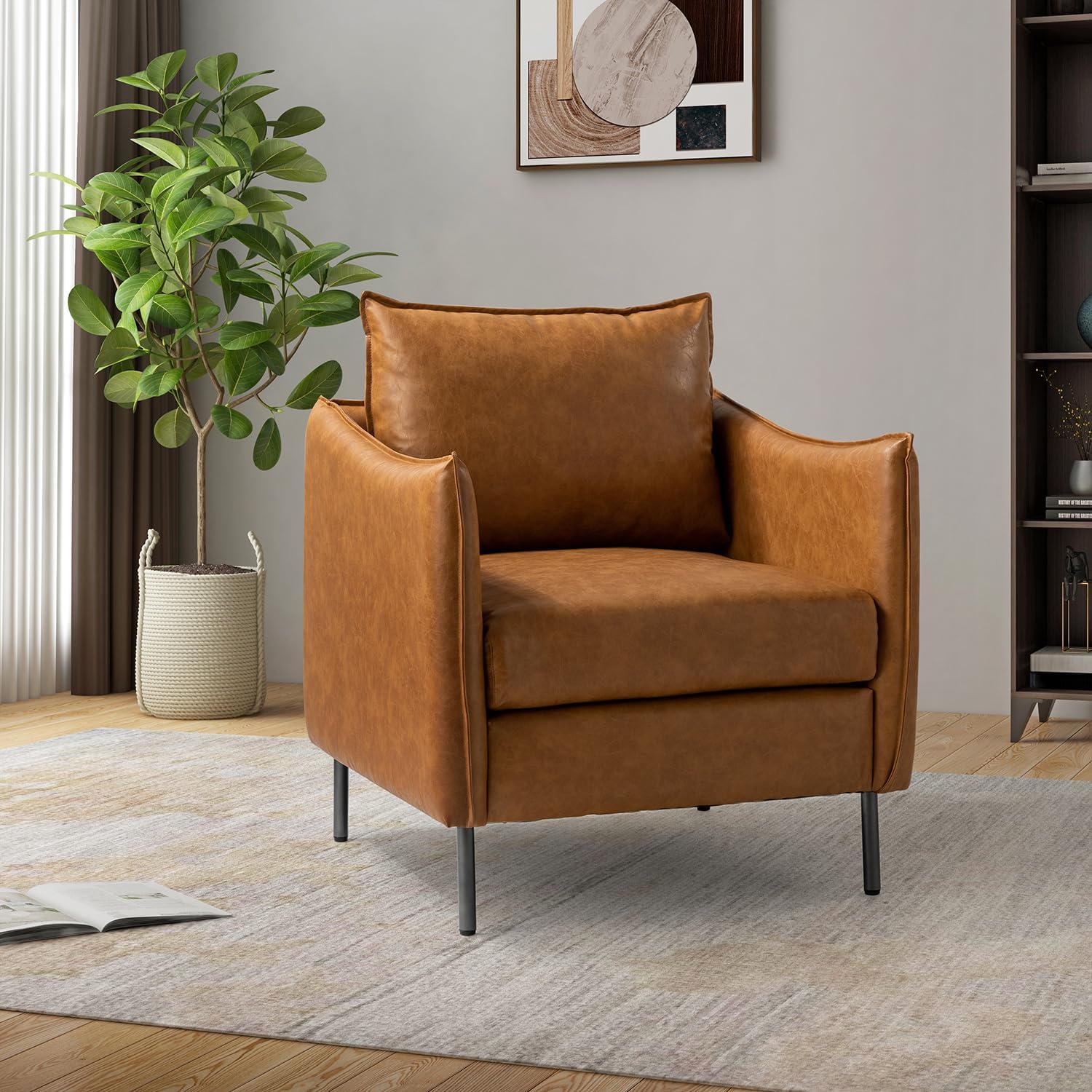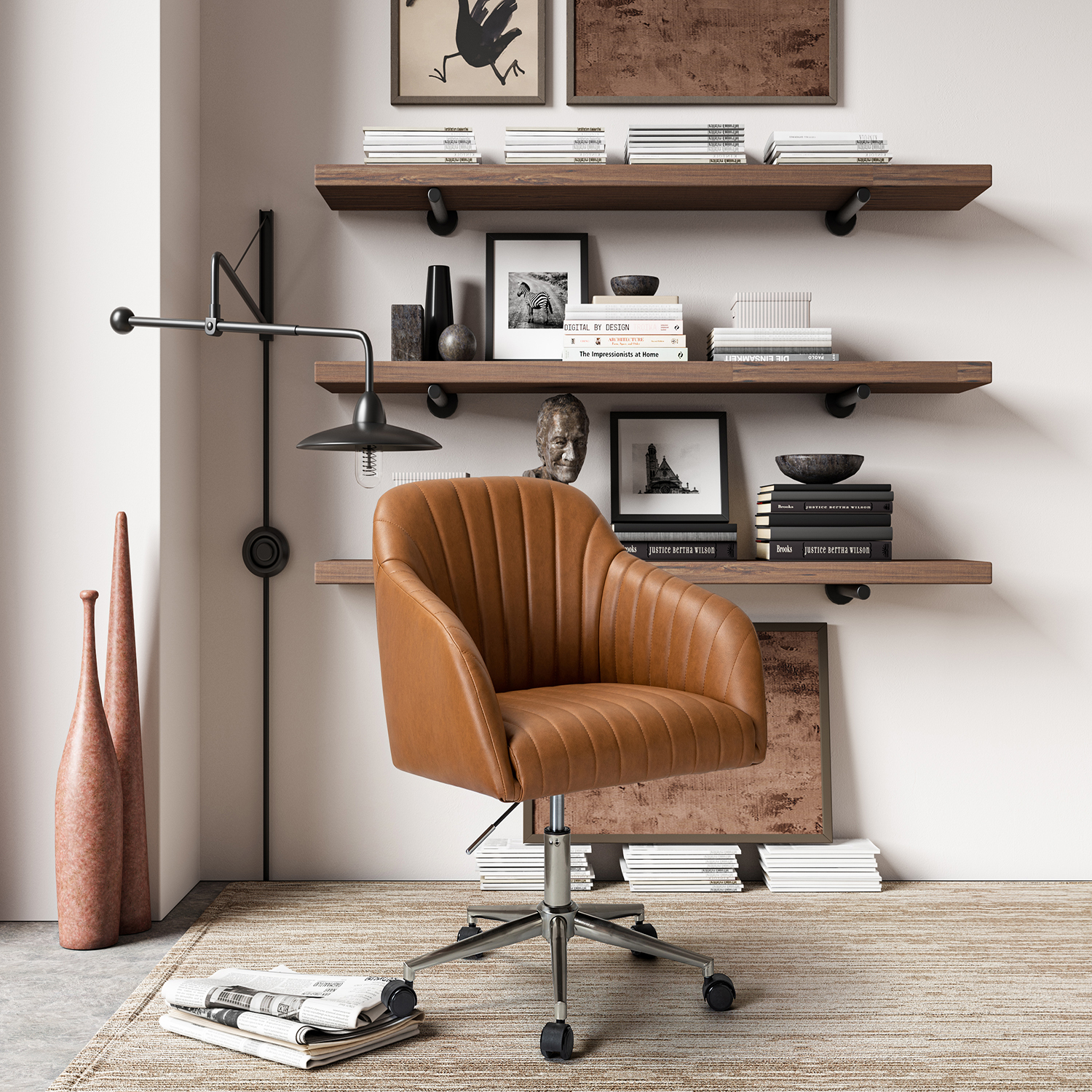 Modern Leather Home Office Task Chair Adjustable Height 5 Wheels Camel