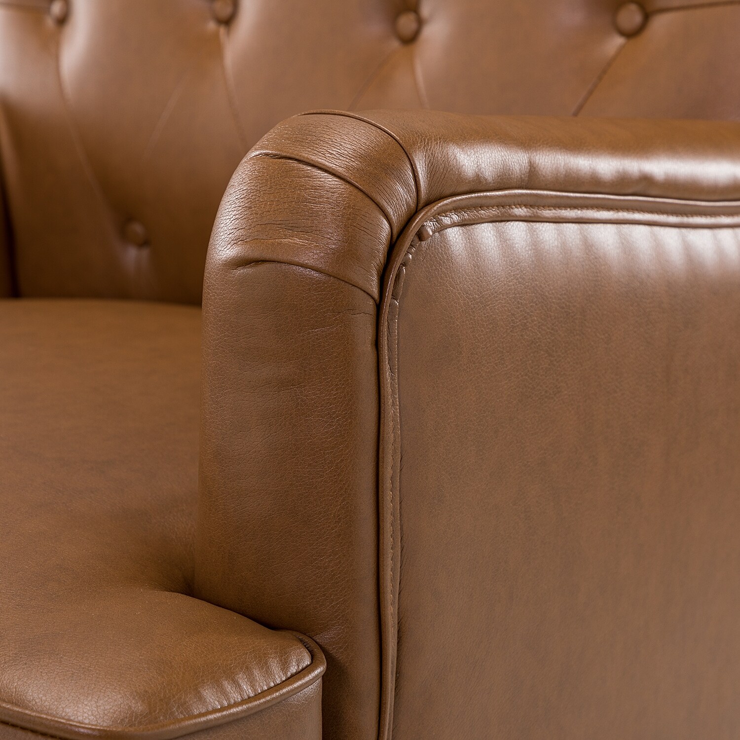 ART OF LIVING DESIGNS,INC Jorge 28.74" Wide Genuine Leather Swivel Chair with Arms CAMEL