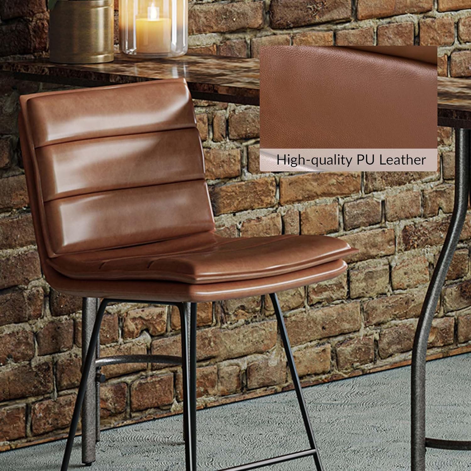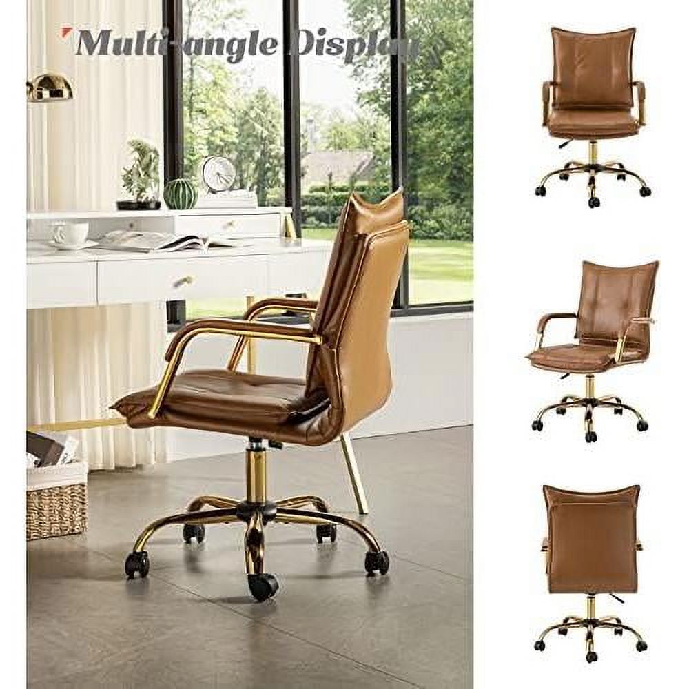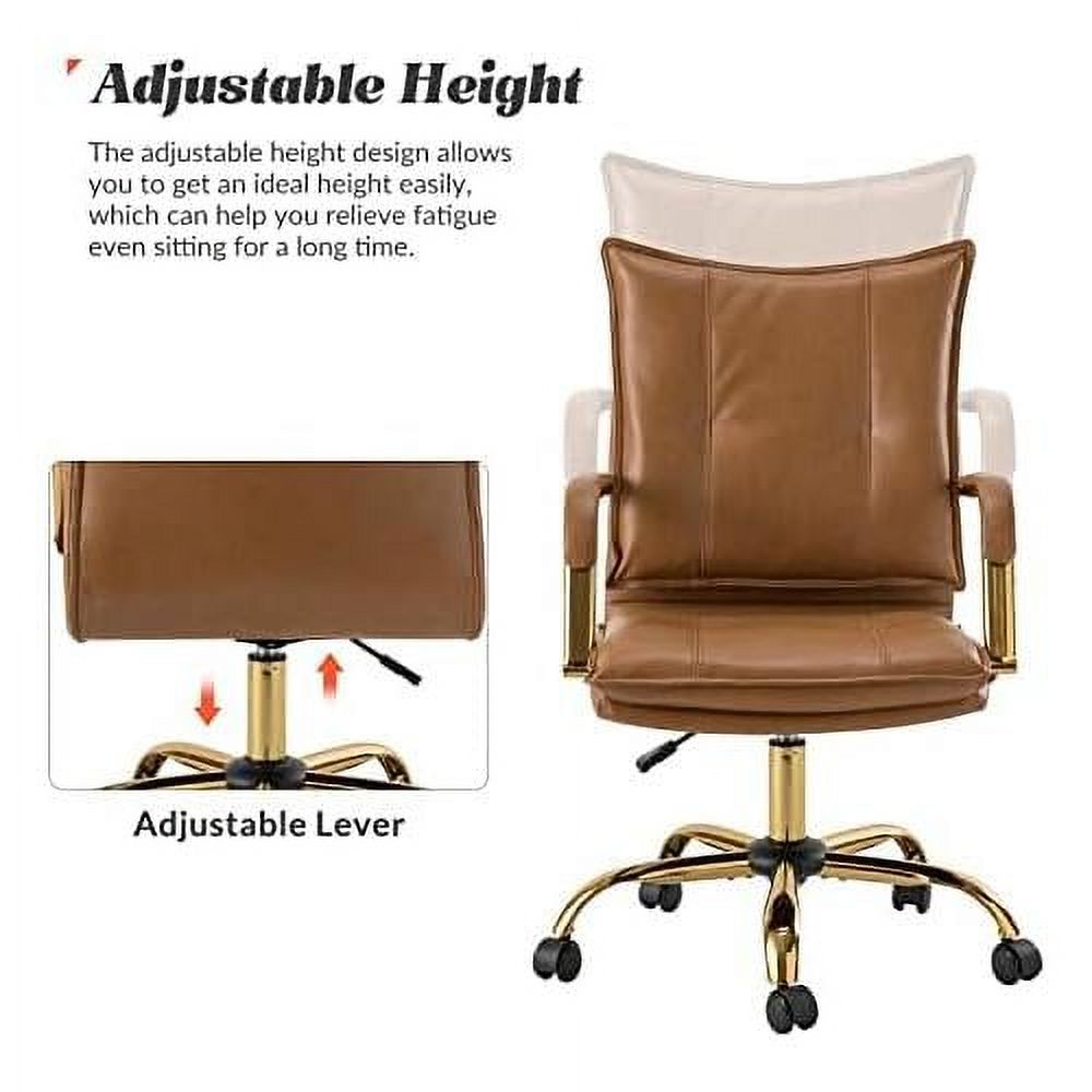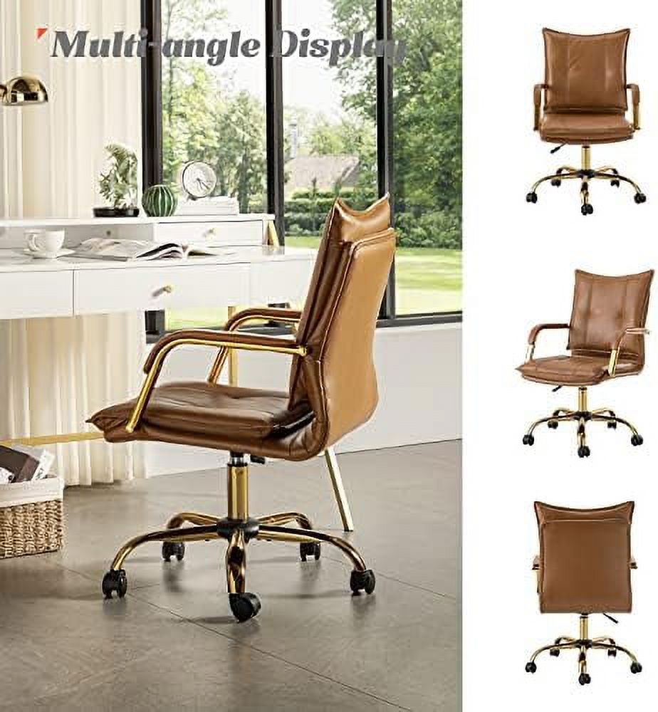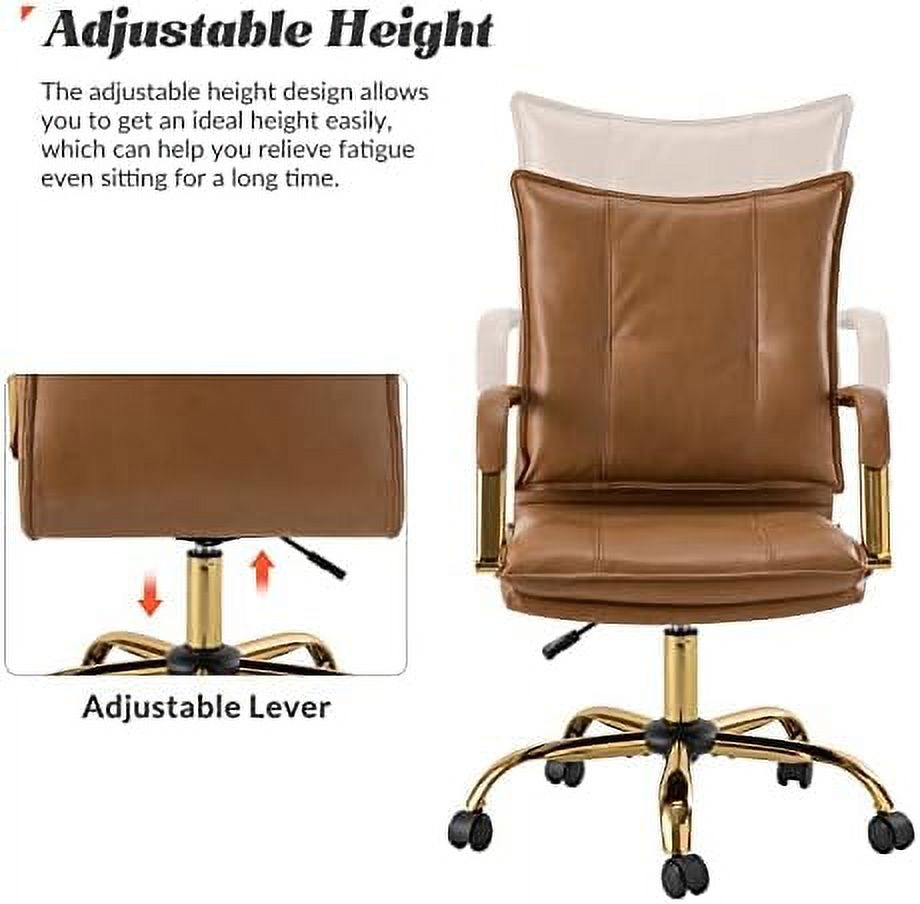 HULALA HOME Lilia Modern Leather Button-Tufted Arm Chair with Gold Accent Legs Set of 2 by CAMEL