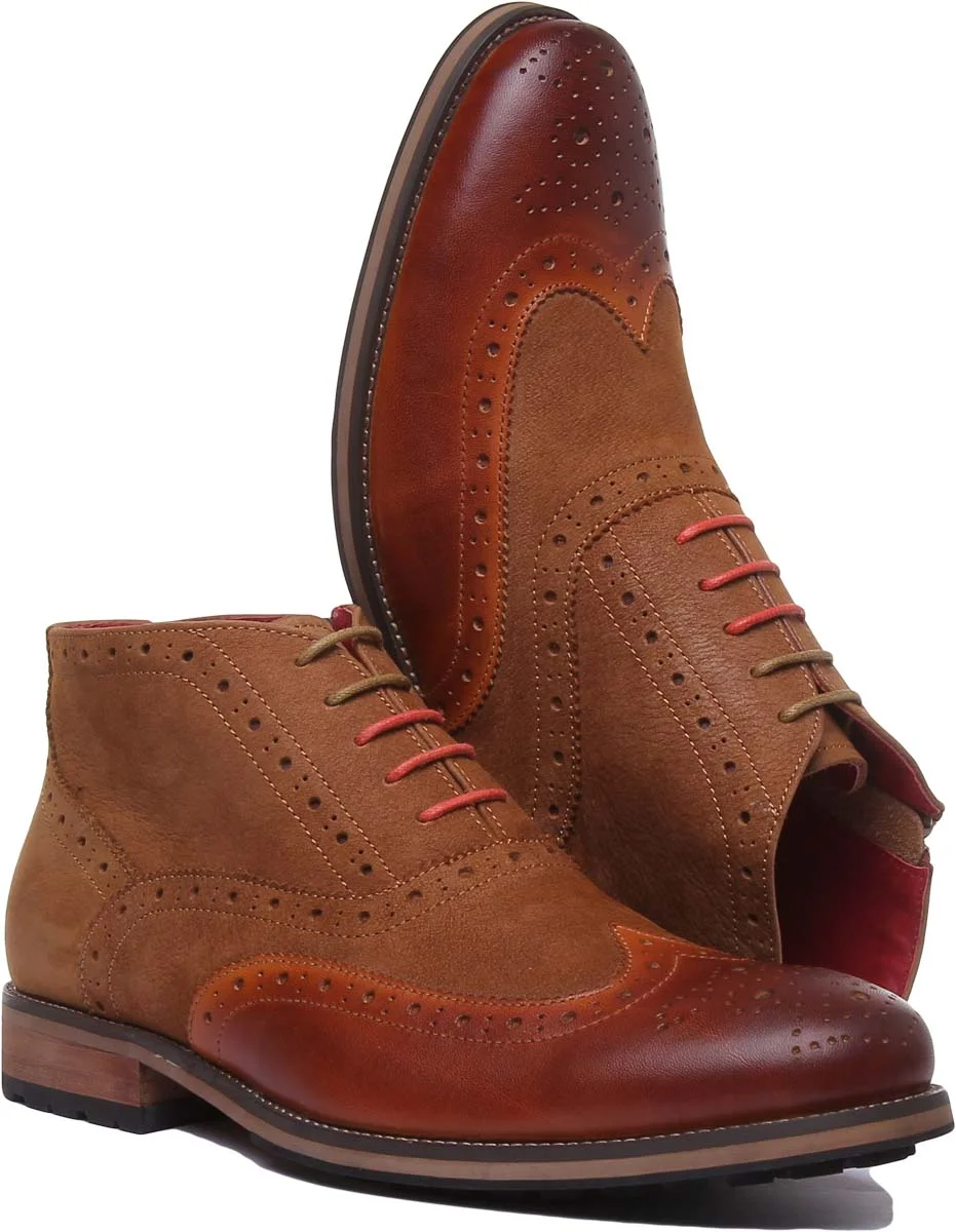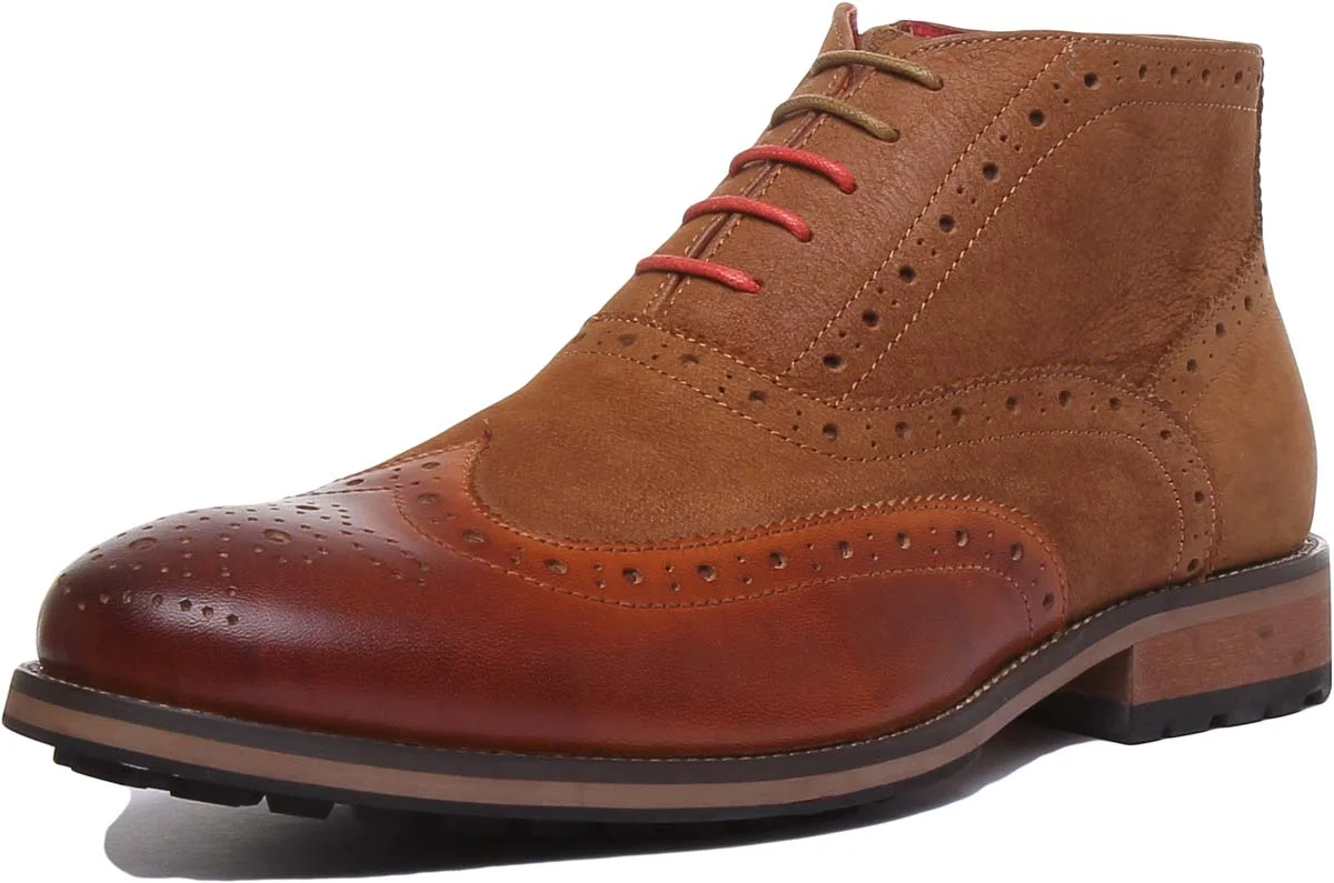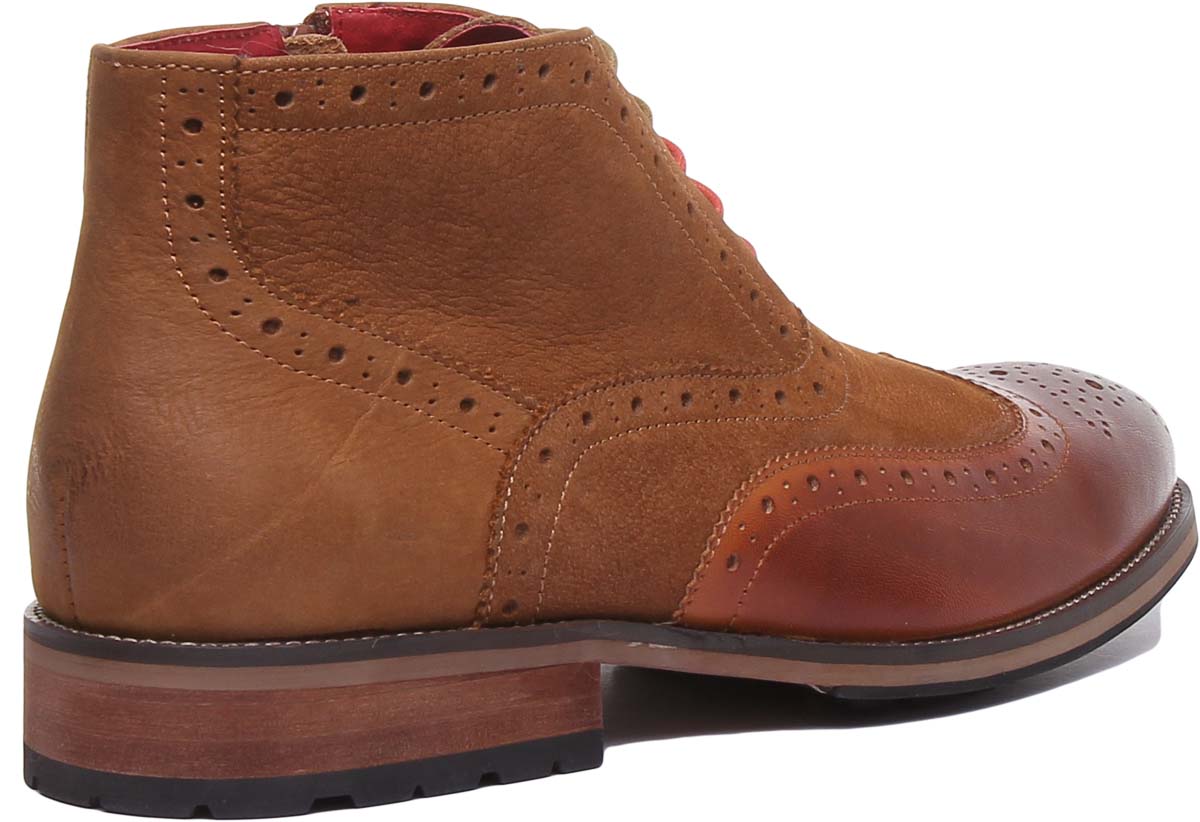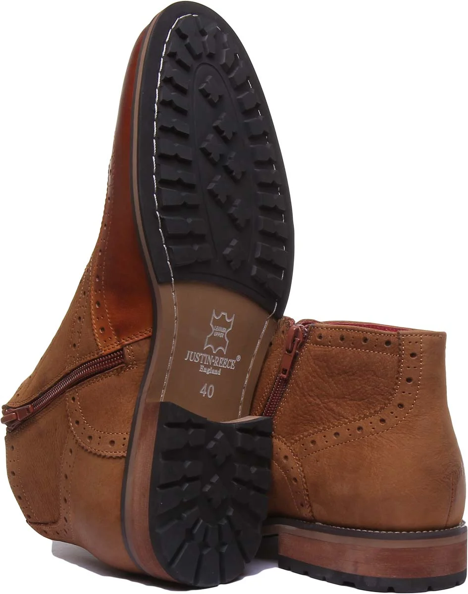 JUSTINREESS Bruno Men's Lace Up Leather Boots With Side Zip In Camel Size 7