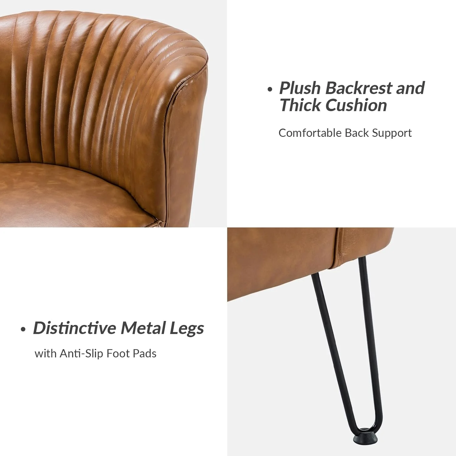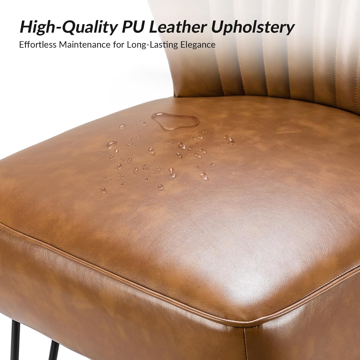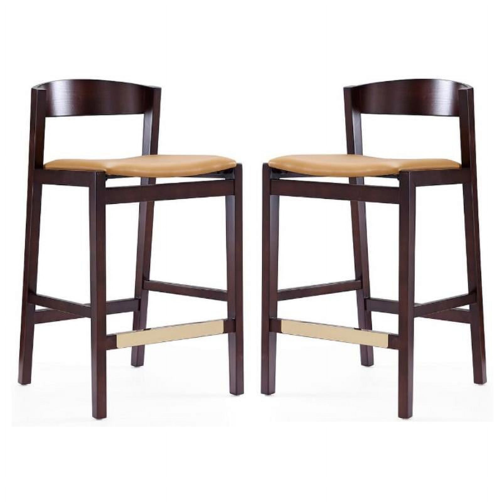 Home Square 37" Faux Leather Barstool in Camel Brown & Dark Walnut - Set of 2