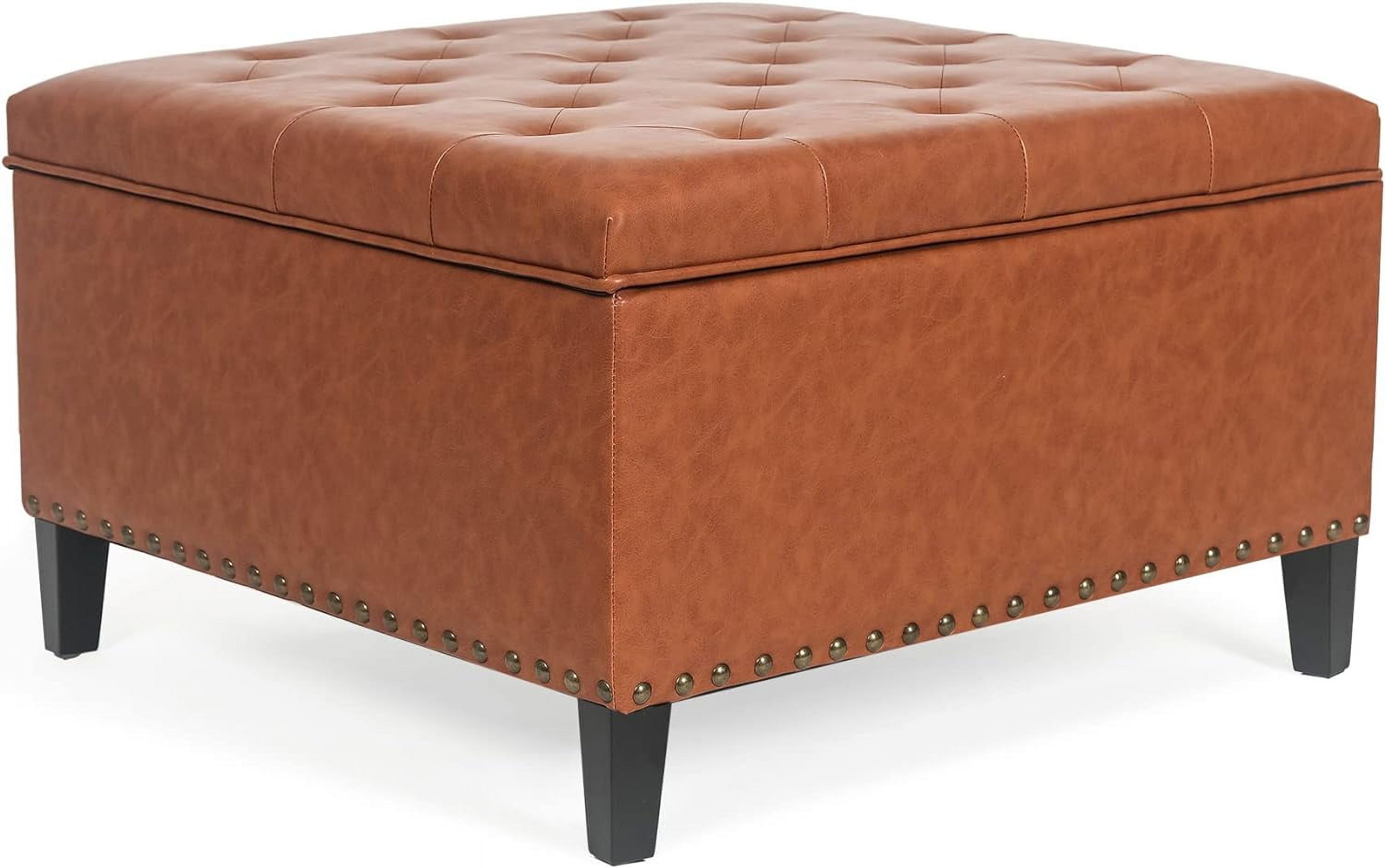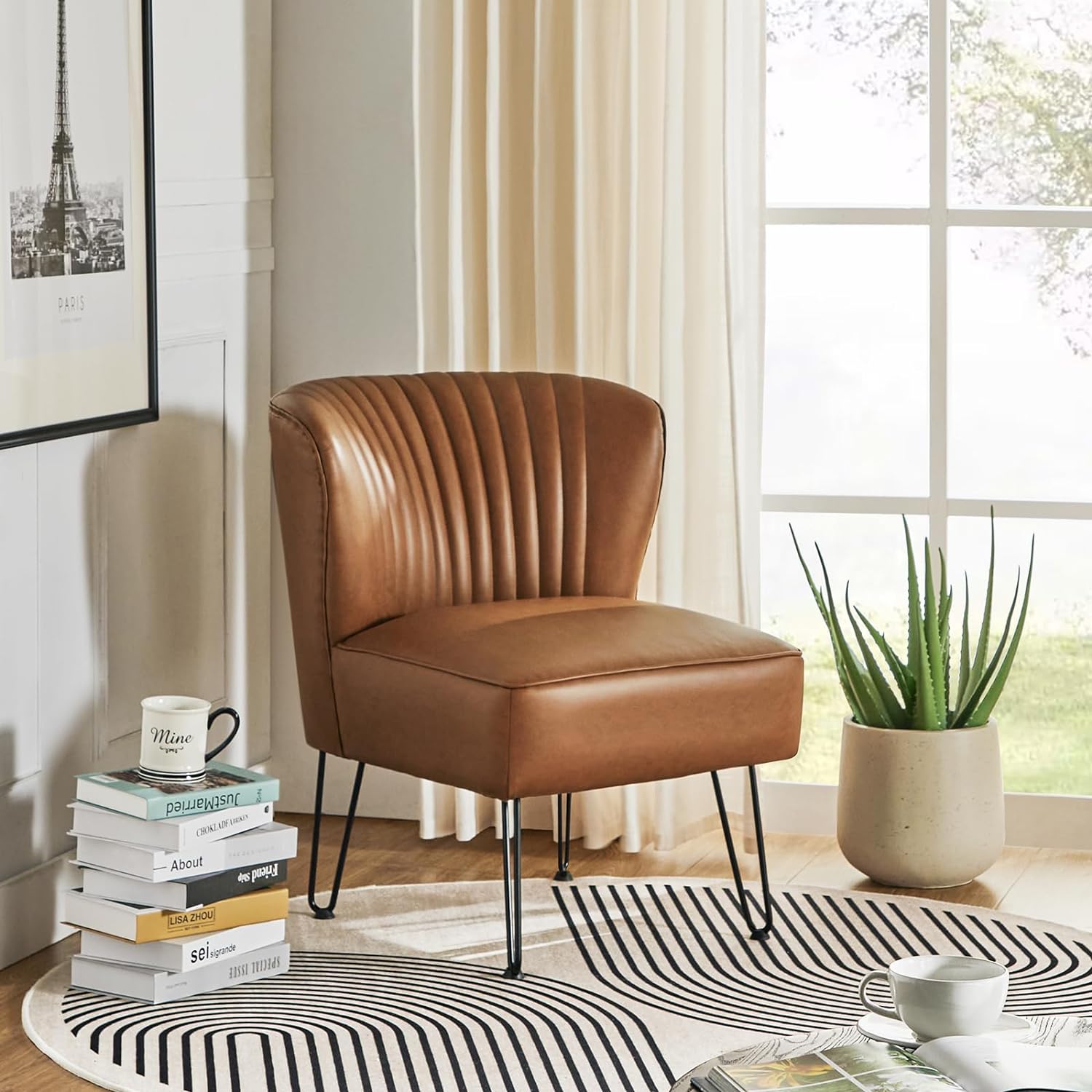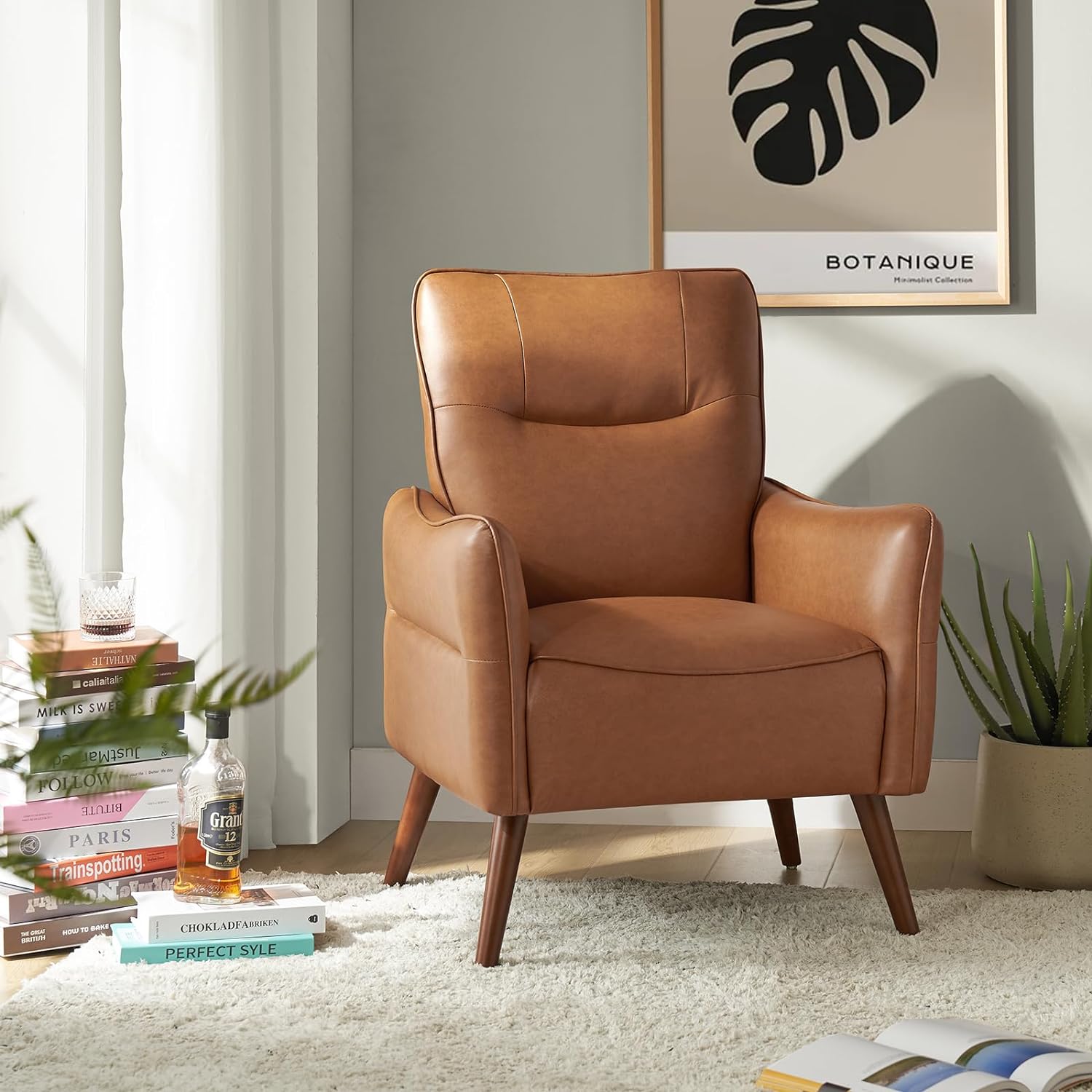 Home Square 37" Faux Leather Barstool in Camel Brown & Dark Walnut - Set of 2