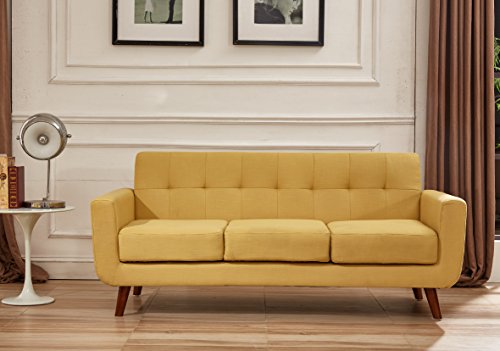 US Pride Furniture U.S. Pride Furniture Grace Rainbeau Linen Upholstered Tufted Mid-century Sofa naples yellow