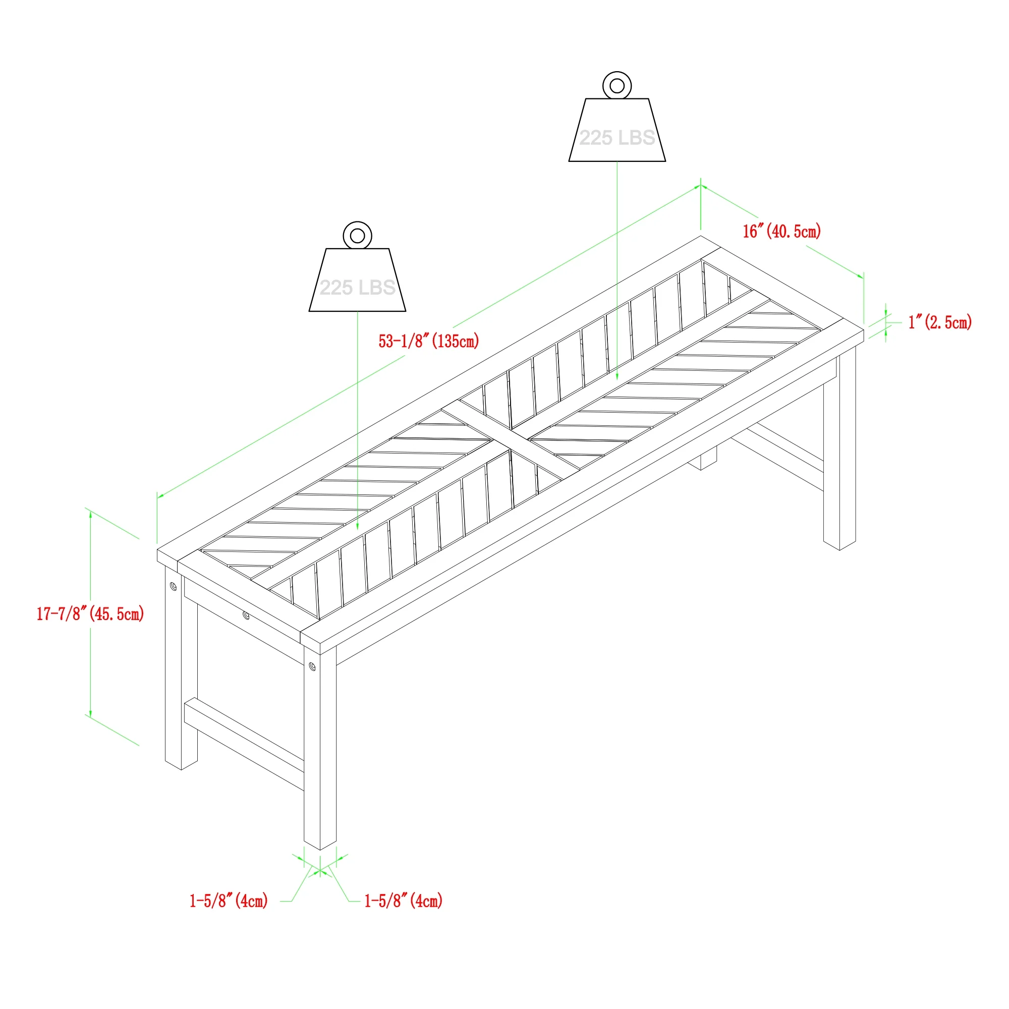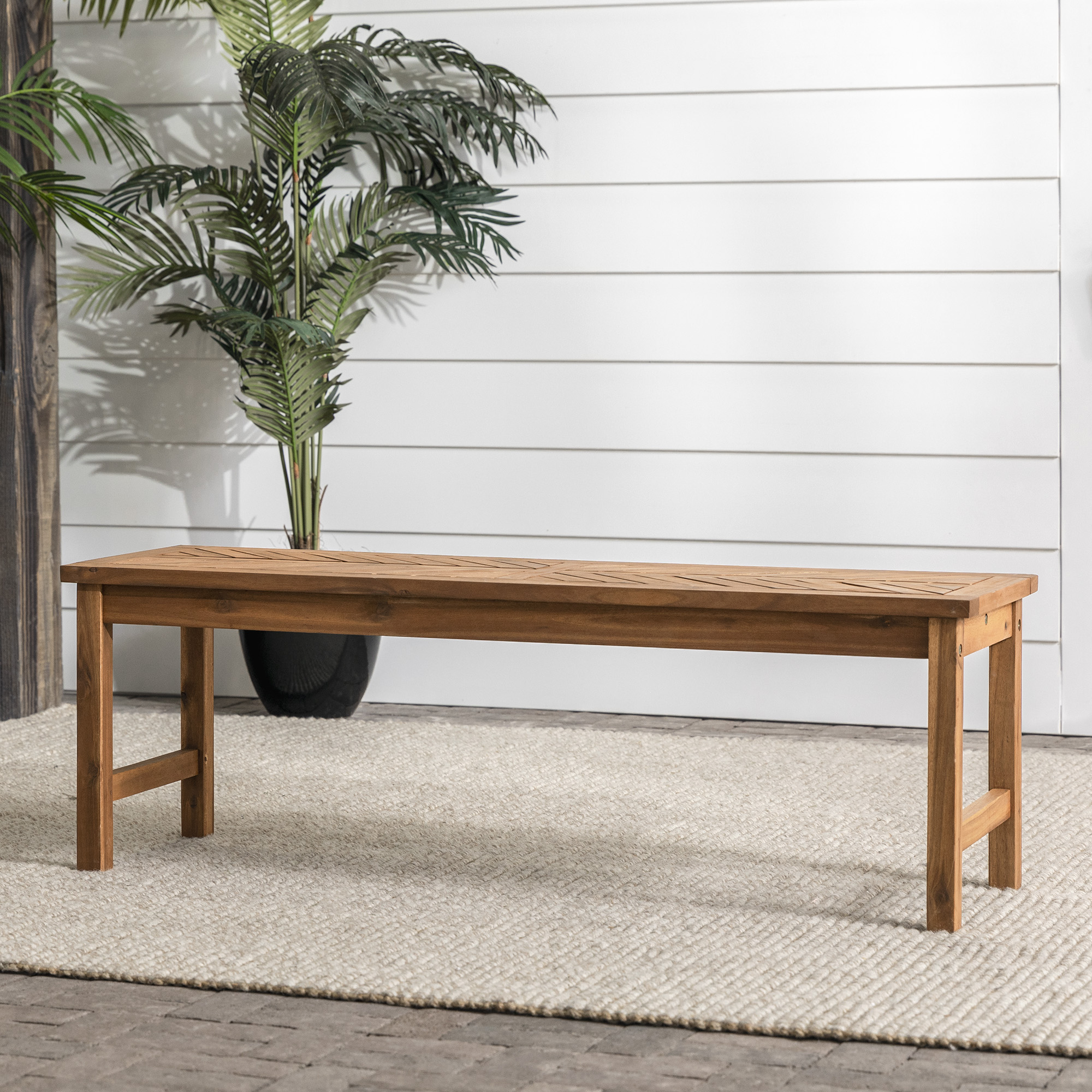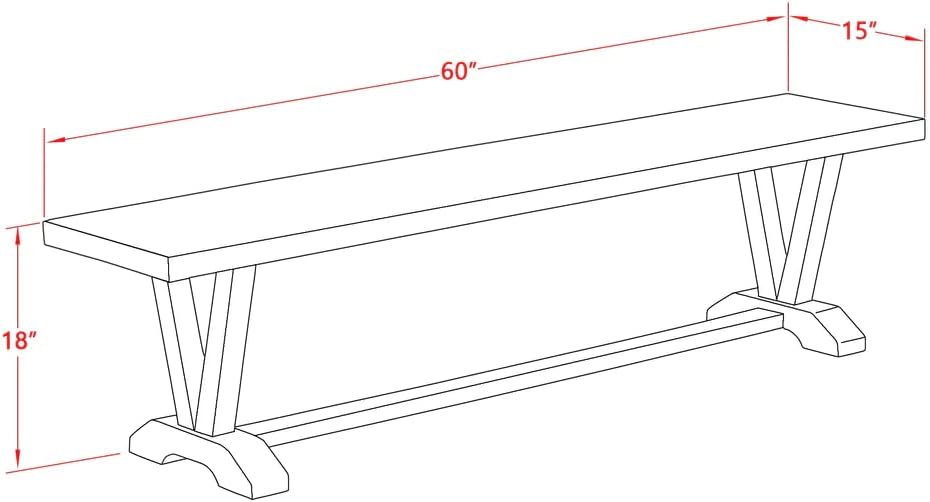 VB096 V-Style Century Modern Dining Bench With Solid Wood Seat, 60X15x18 Inch