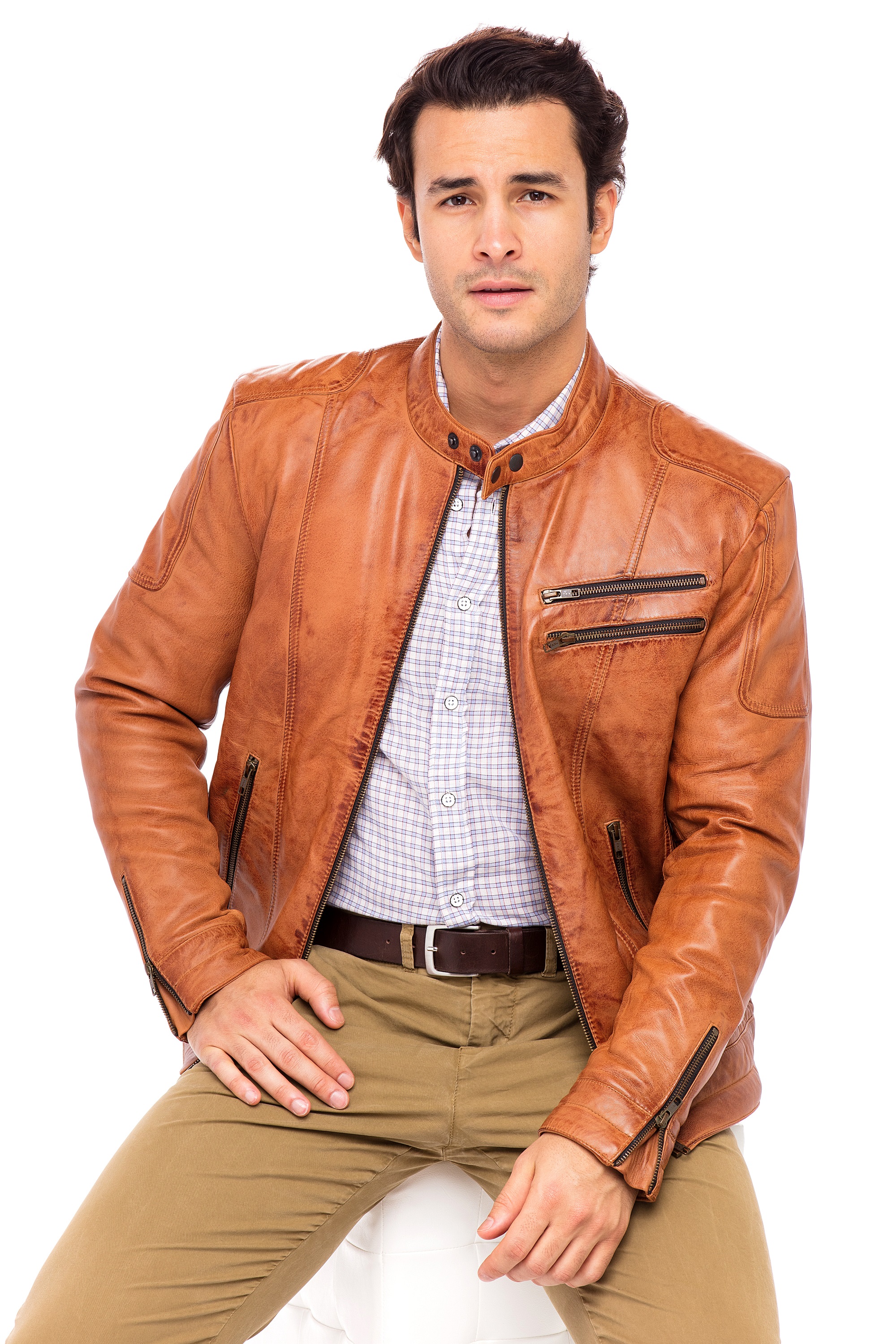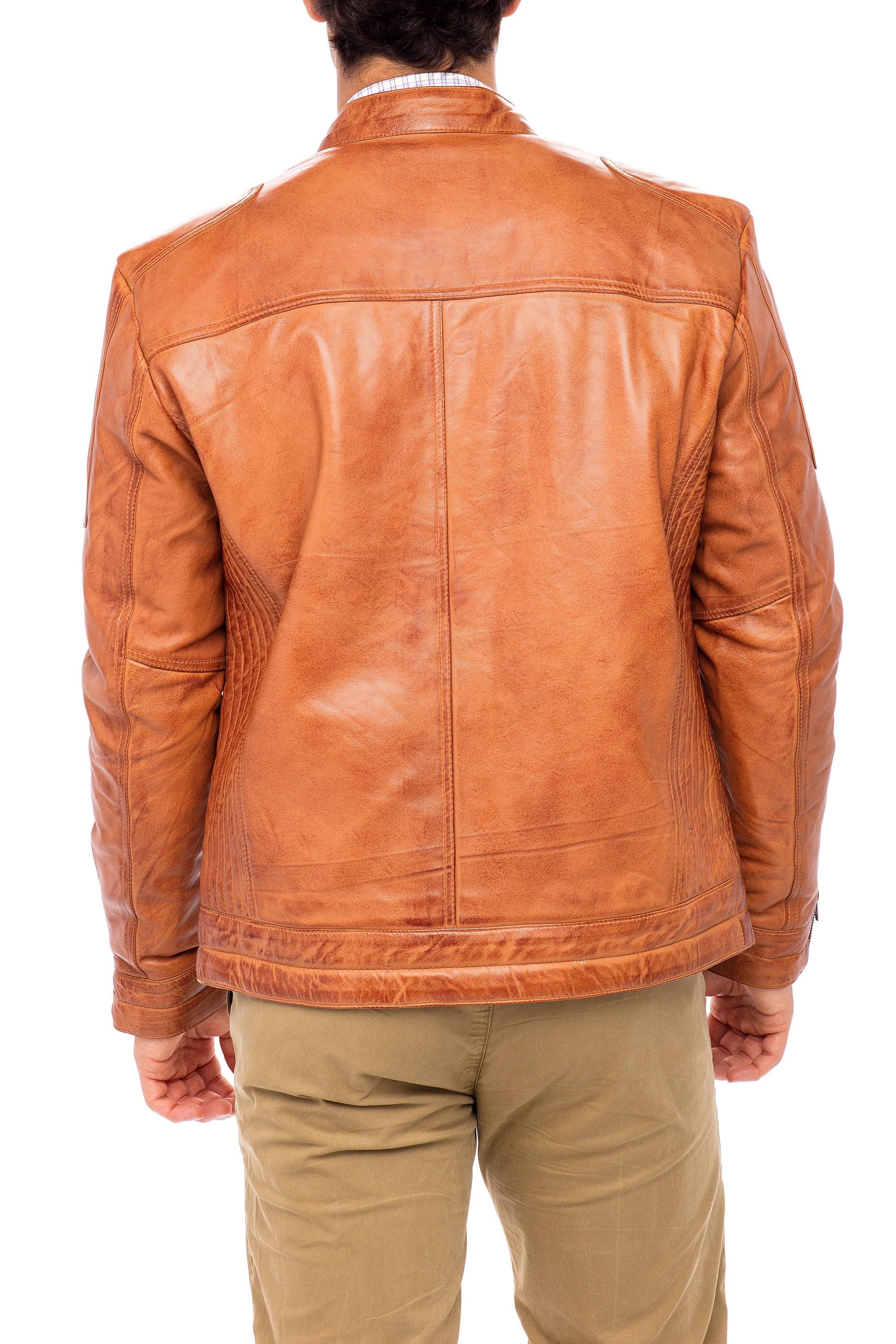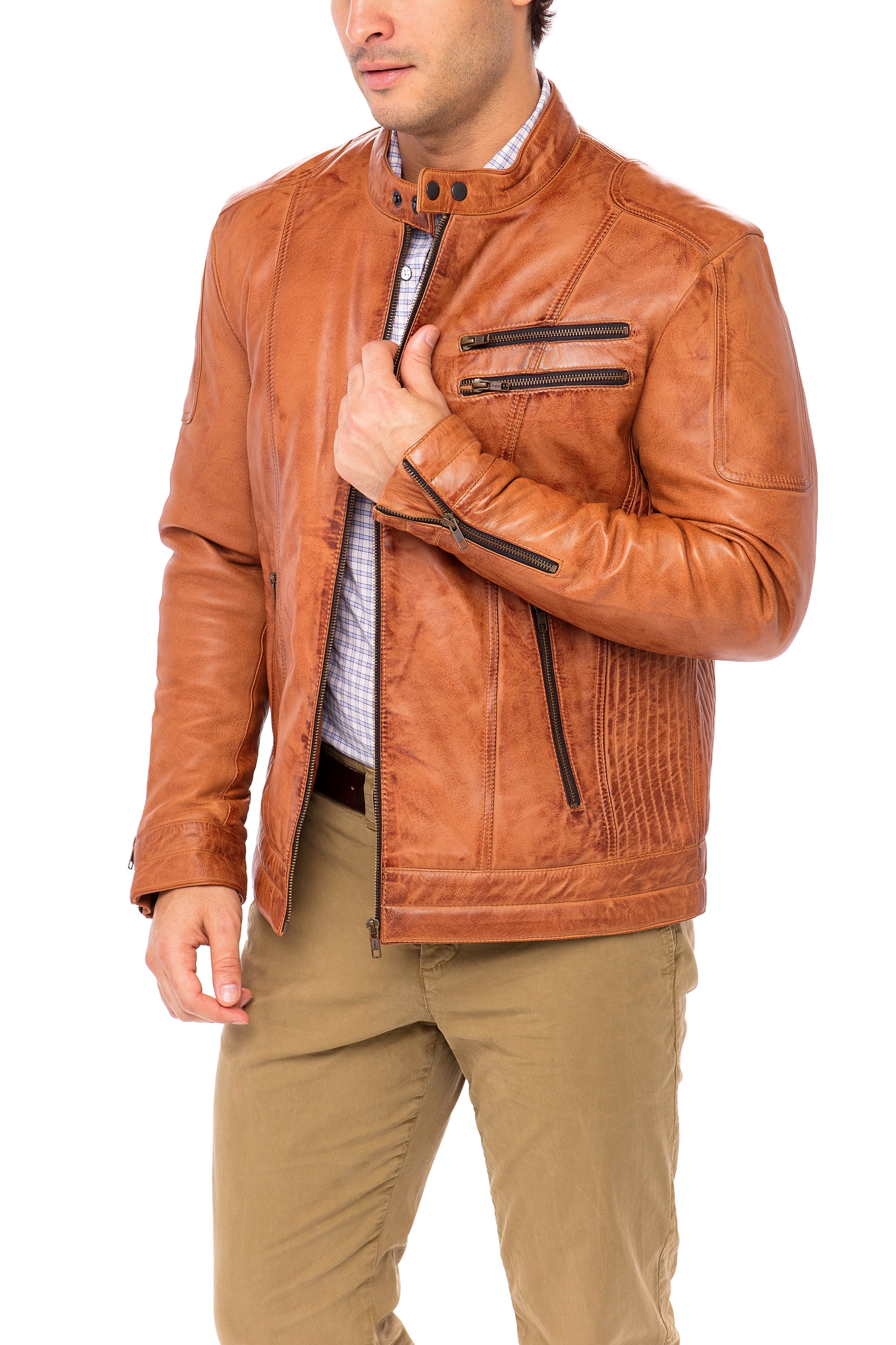 Skylinewears Mens Biker Leather Jacket 100% Genuine Sheepskin Jackt on Sale Camel Size M