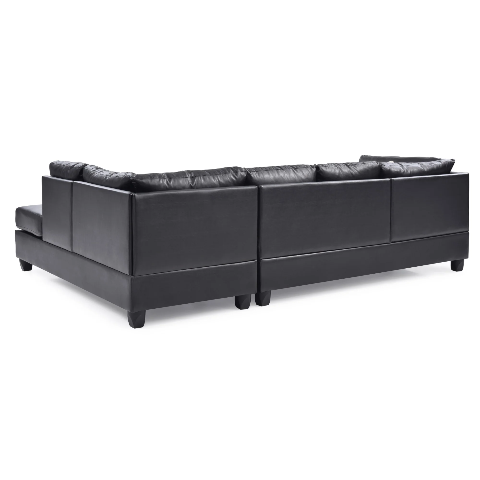 Passion Furniture 111 in. Malone Faux Leather 4-Seater Sectional Sofa with 2-Throw Pillow, Black