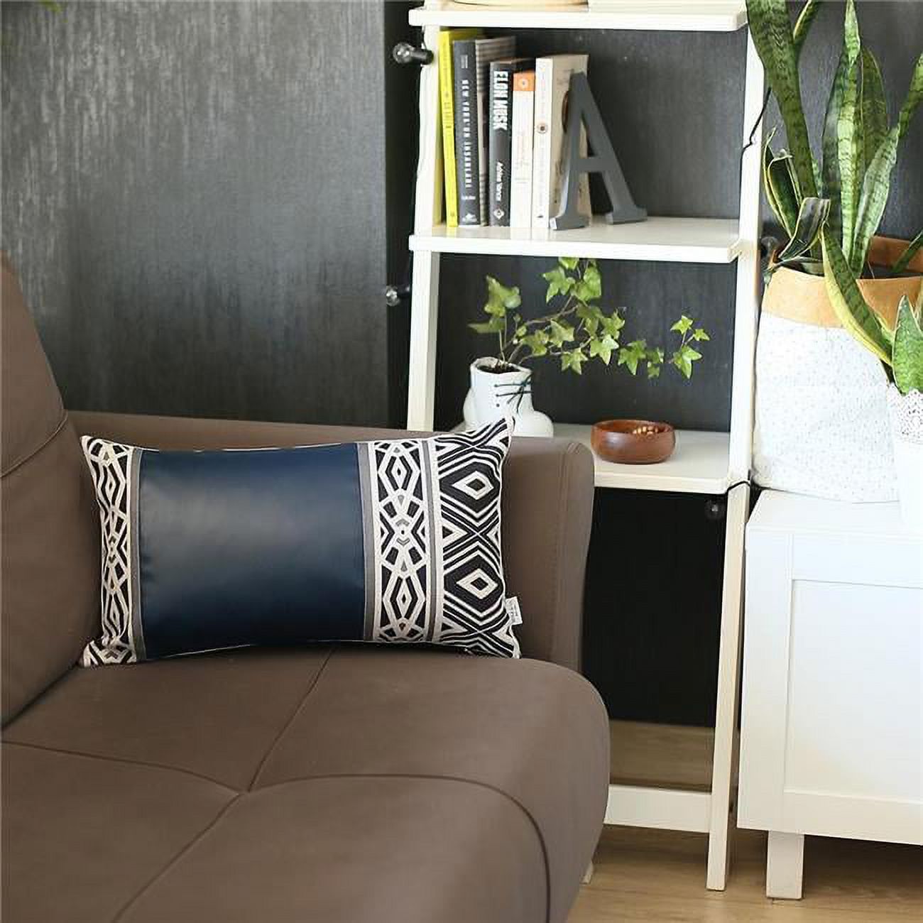 HomeRoots 399579 Blue Faux Leather Bohemian Lumbar Throw Pillow, Multi Color