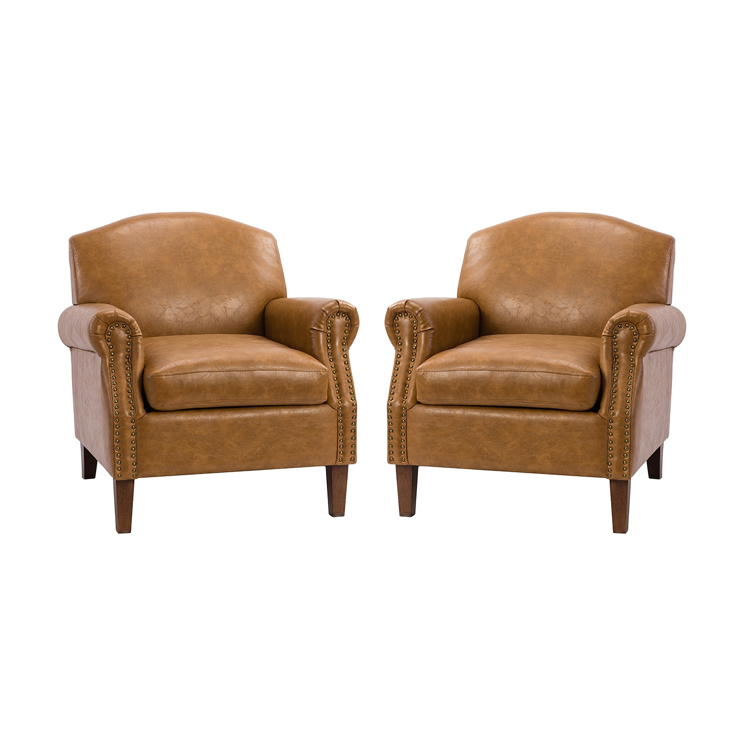 HULALA HOME Giampiero Transitional Faux Leather Arm Chair with Nailhead Trim and Rolled Arms Set of 2 by CAMEL