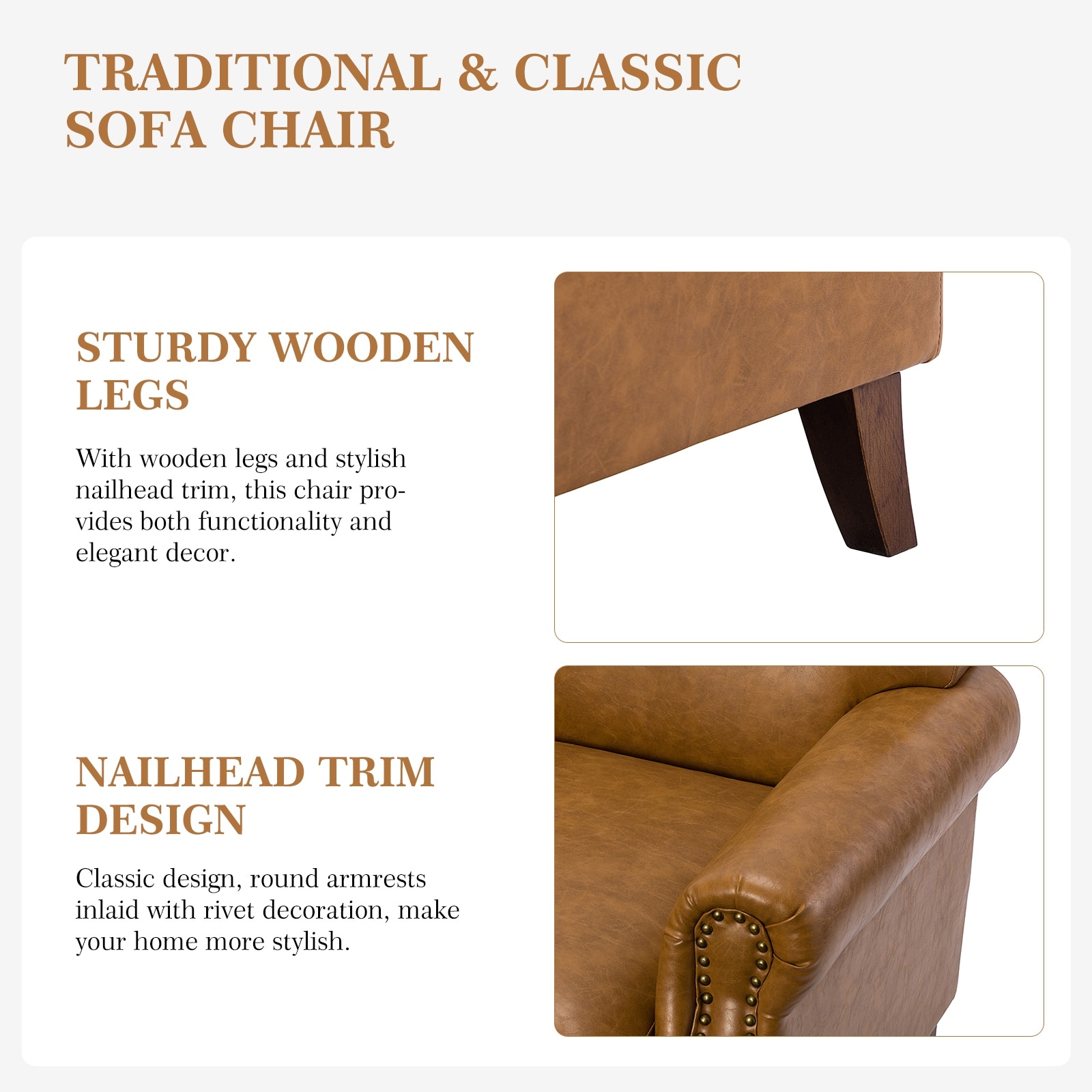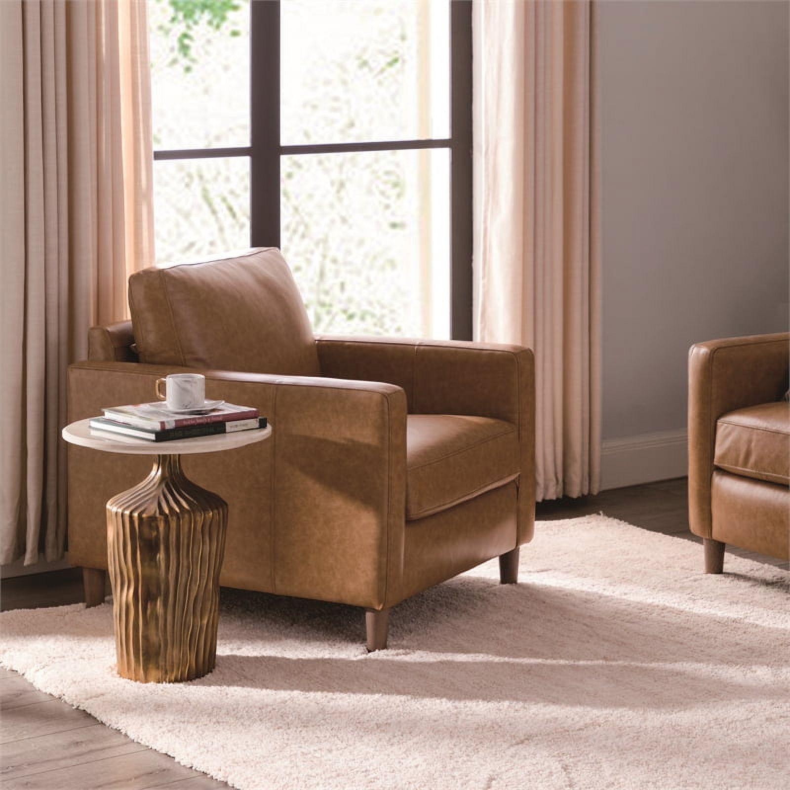 HULALA HOME Giampiero Transitional Faux Leather Arm Chair with Nailhead Trim by CAMEL
