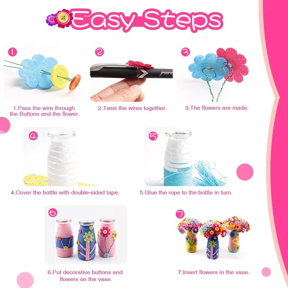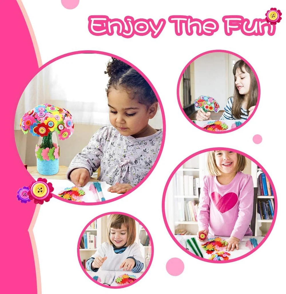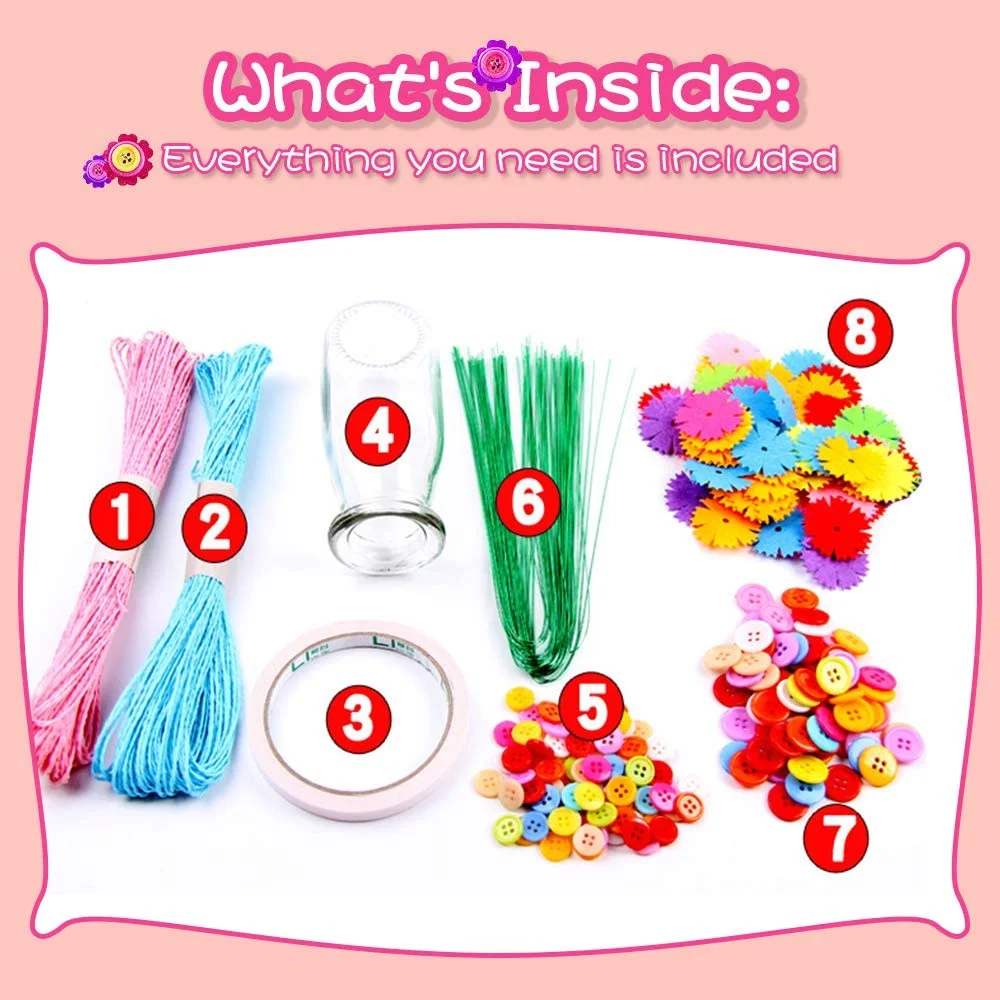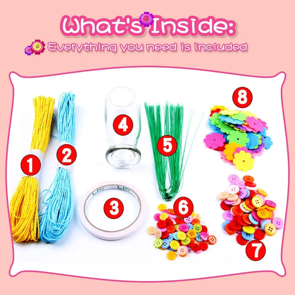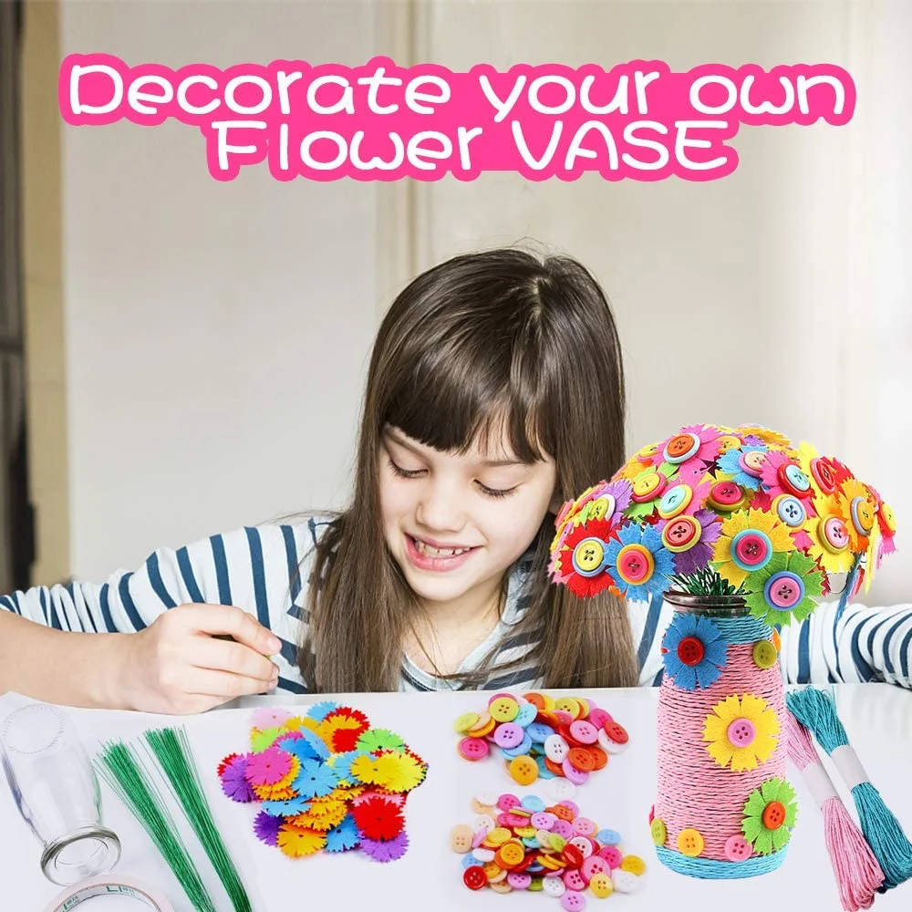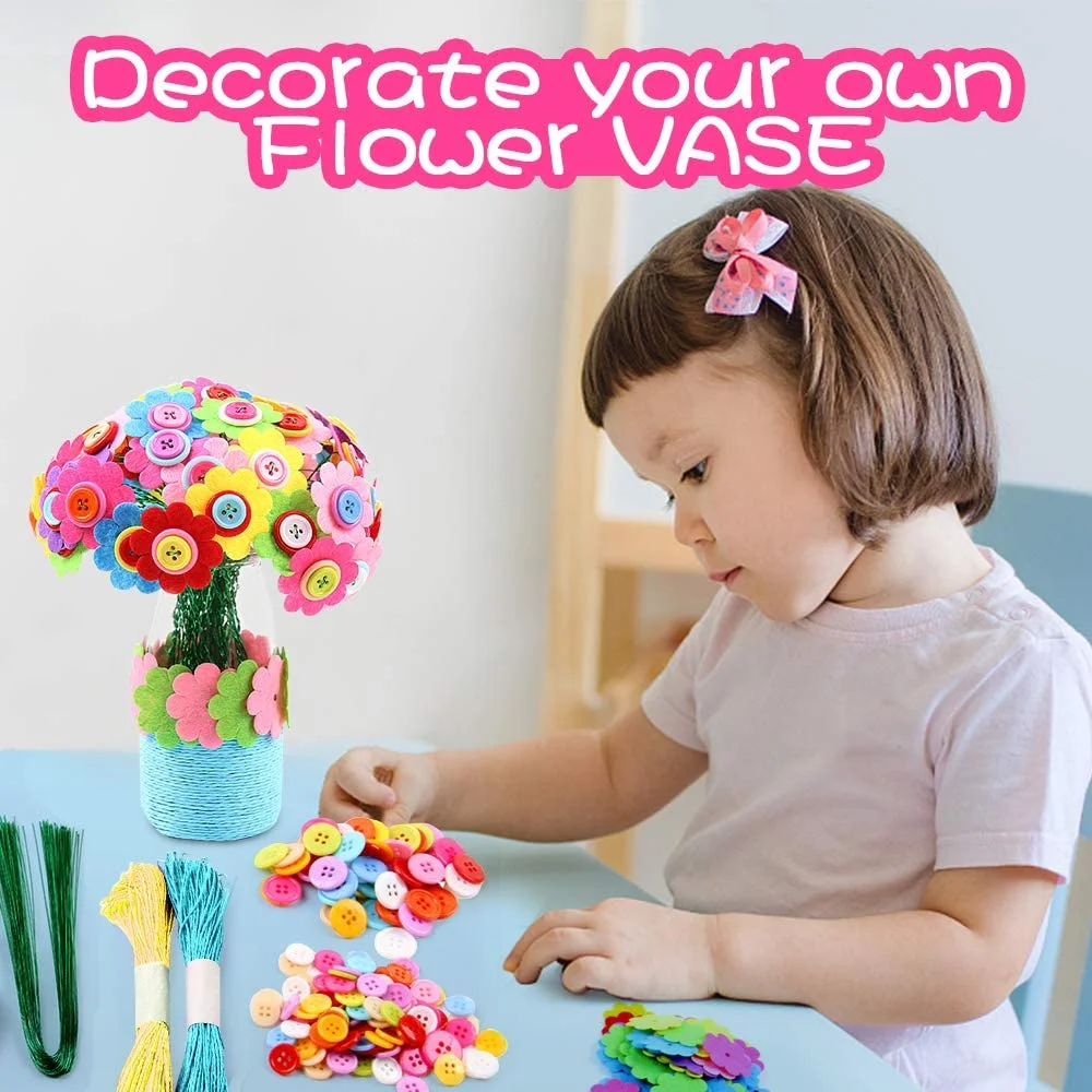 MAINYU Flower Craft Kit for Kids Colorful Buttons and Felt Flower Kit Vase Arts Toy Craft Project for Girls and Boys Fun DIY Activity Gift for Children Ages 4 5 6 7 8 9 Years Old Birthday Xmas Gift