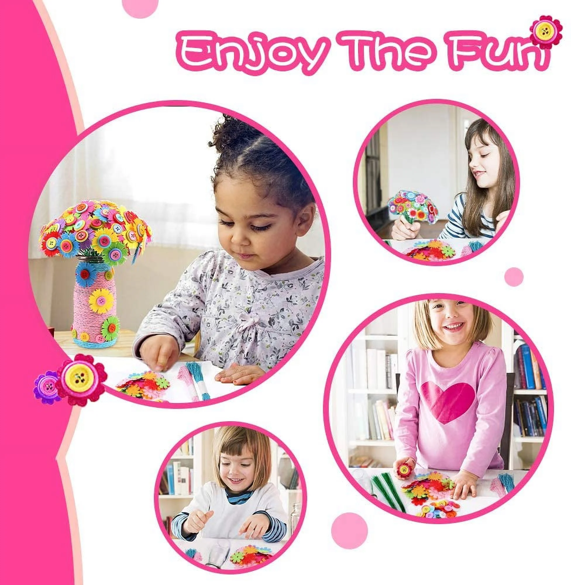 LNKOO Flower Craft Kit for Kids - Colorful Button & Felt Flowers, Vase Art Toy & Craft Project for Boys and Girls, Fun Party Favors & DIY Activity Gift for Children Ages 4 5 6 7 8 9 10 Years Old
