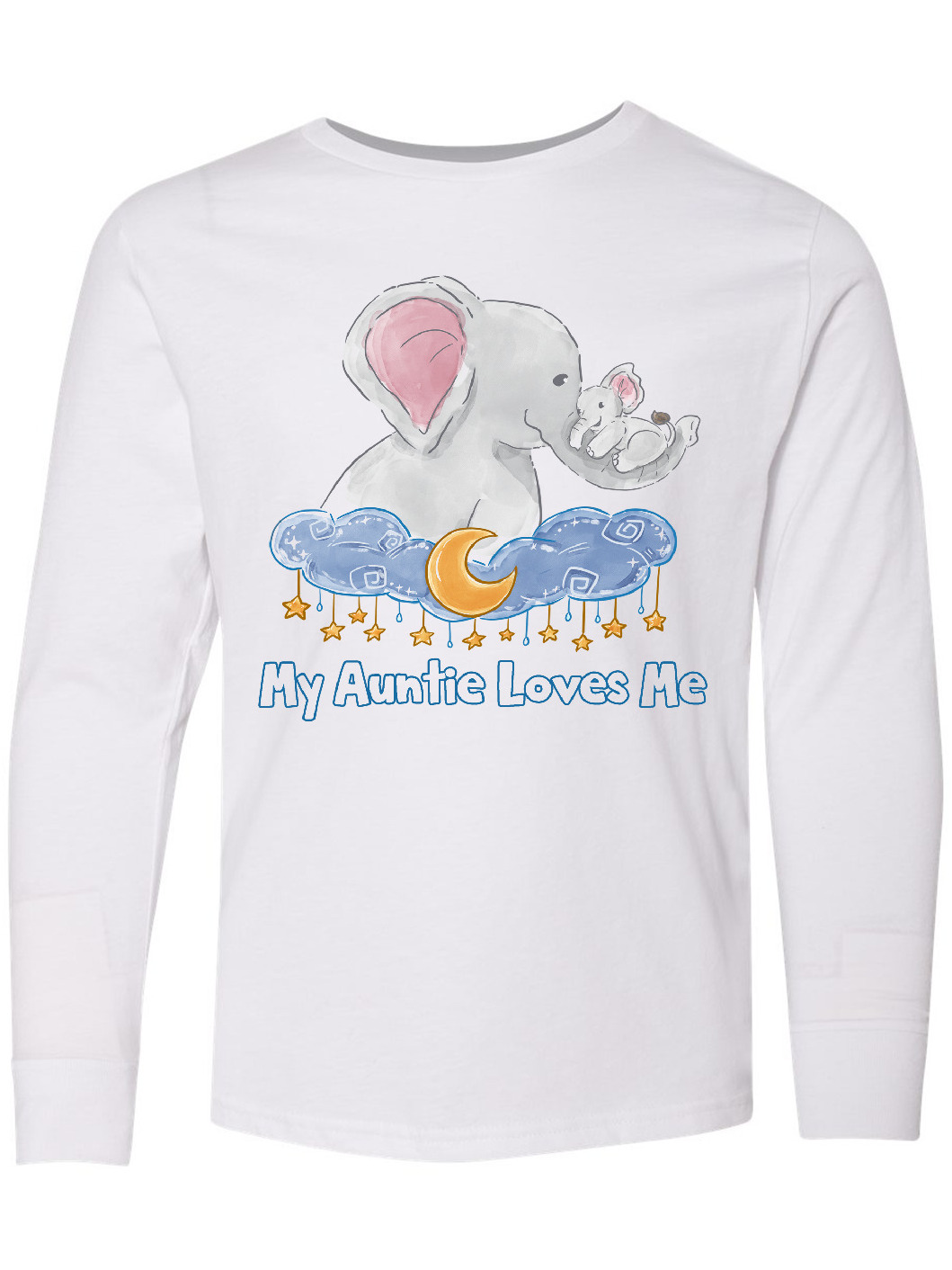 Inktastic My Auntie Loves Me Cute Elephants Clouds Moon and Stars Long Sleeve Youth T-Shirt
