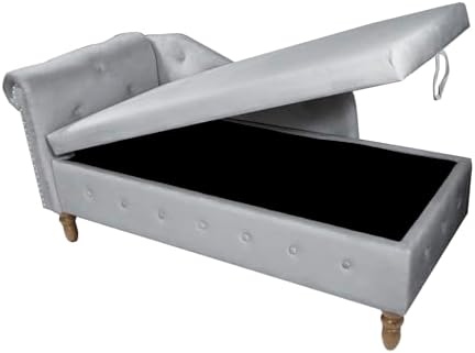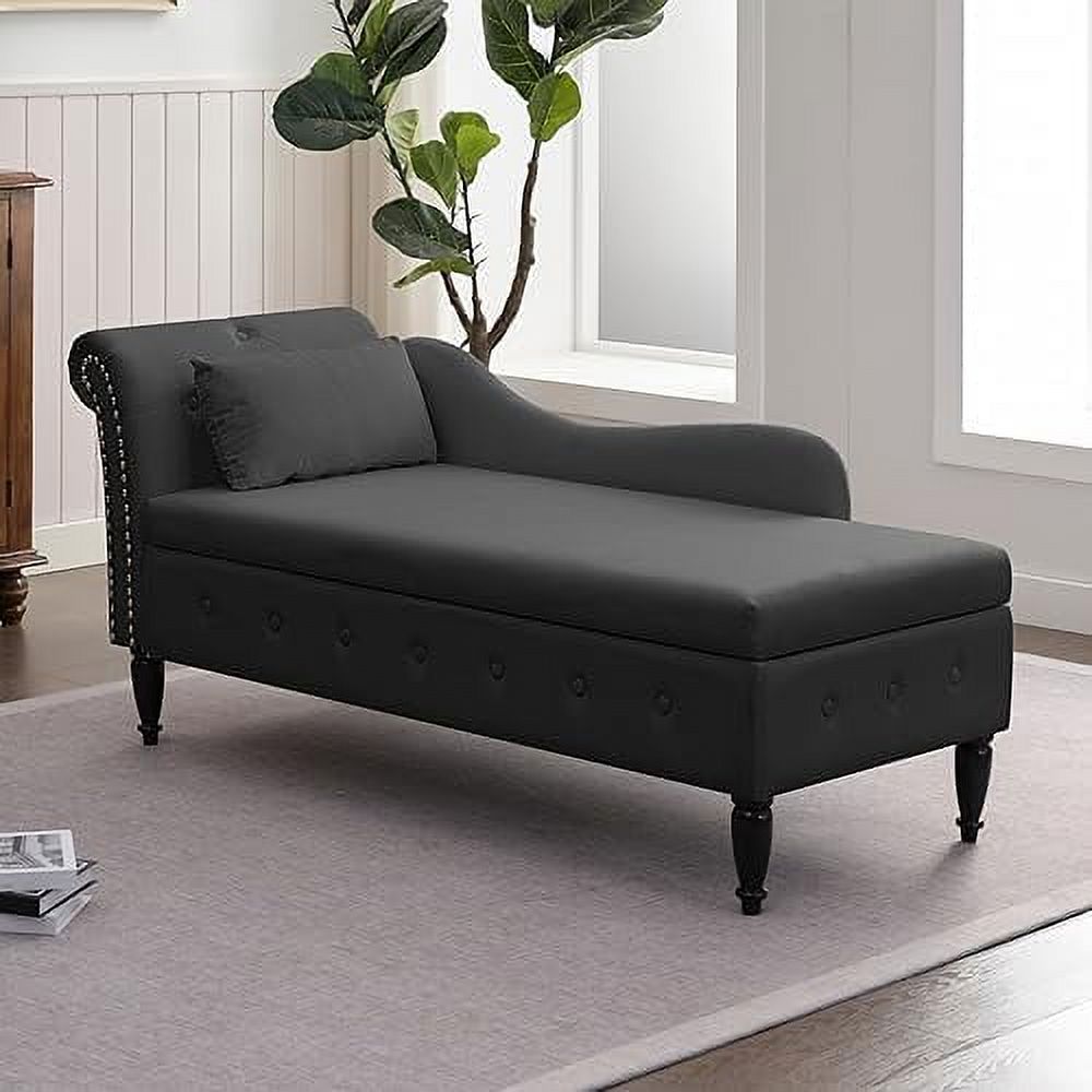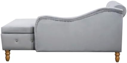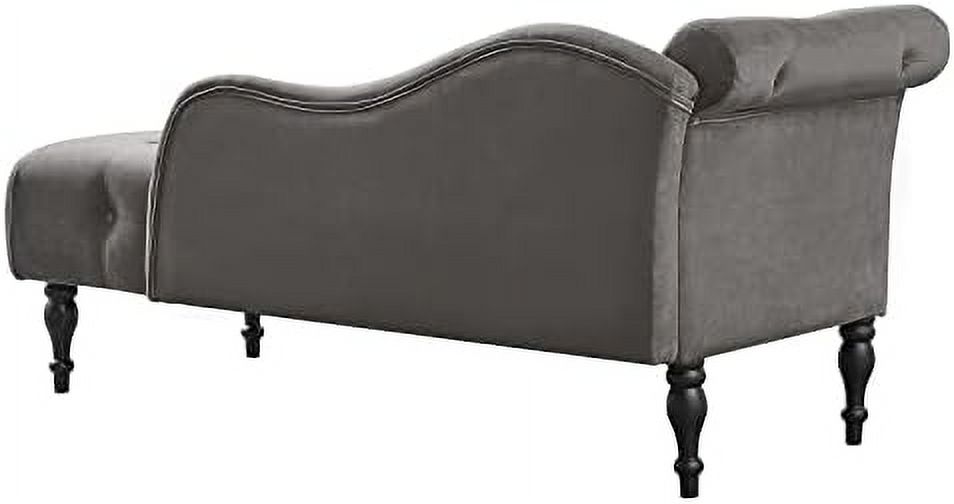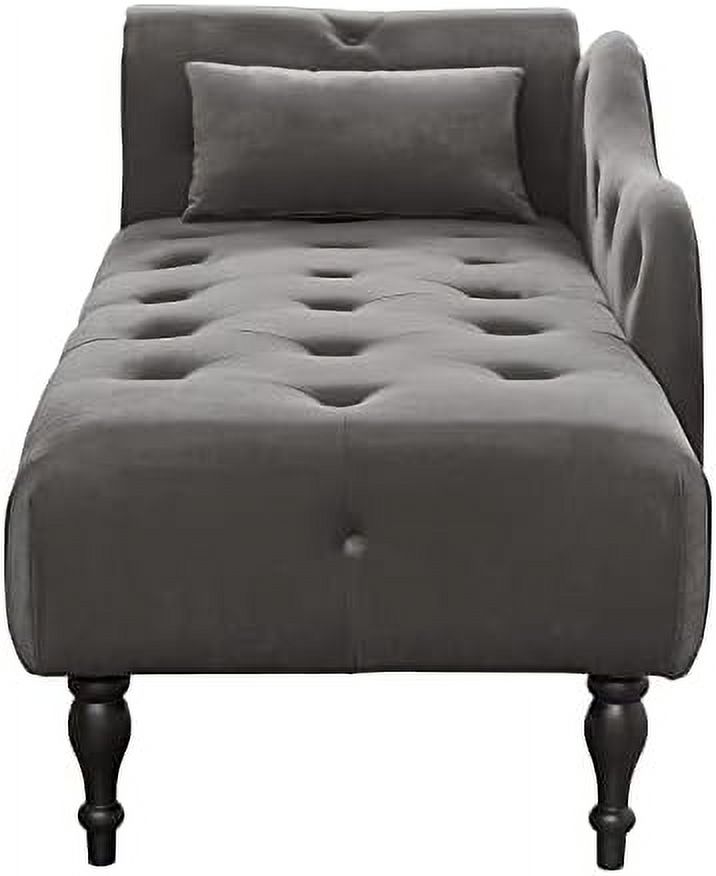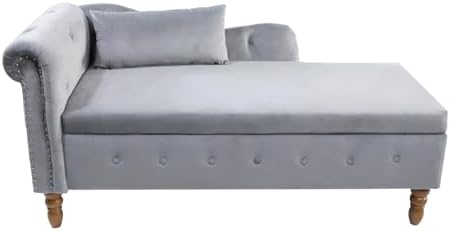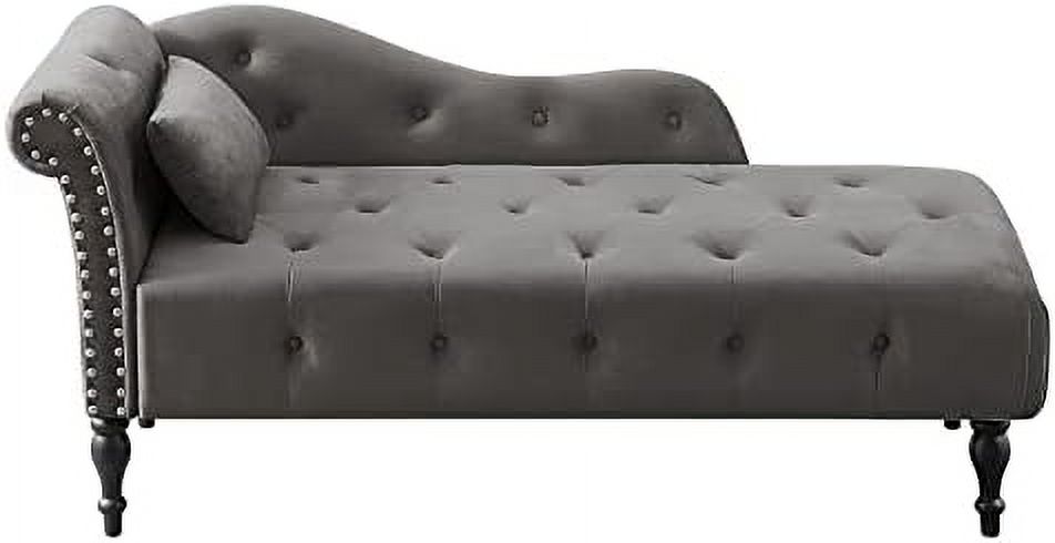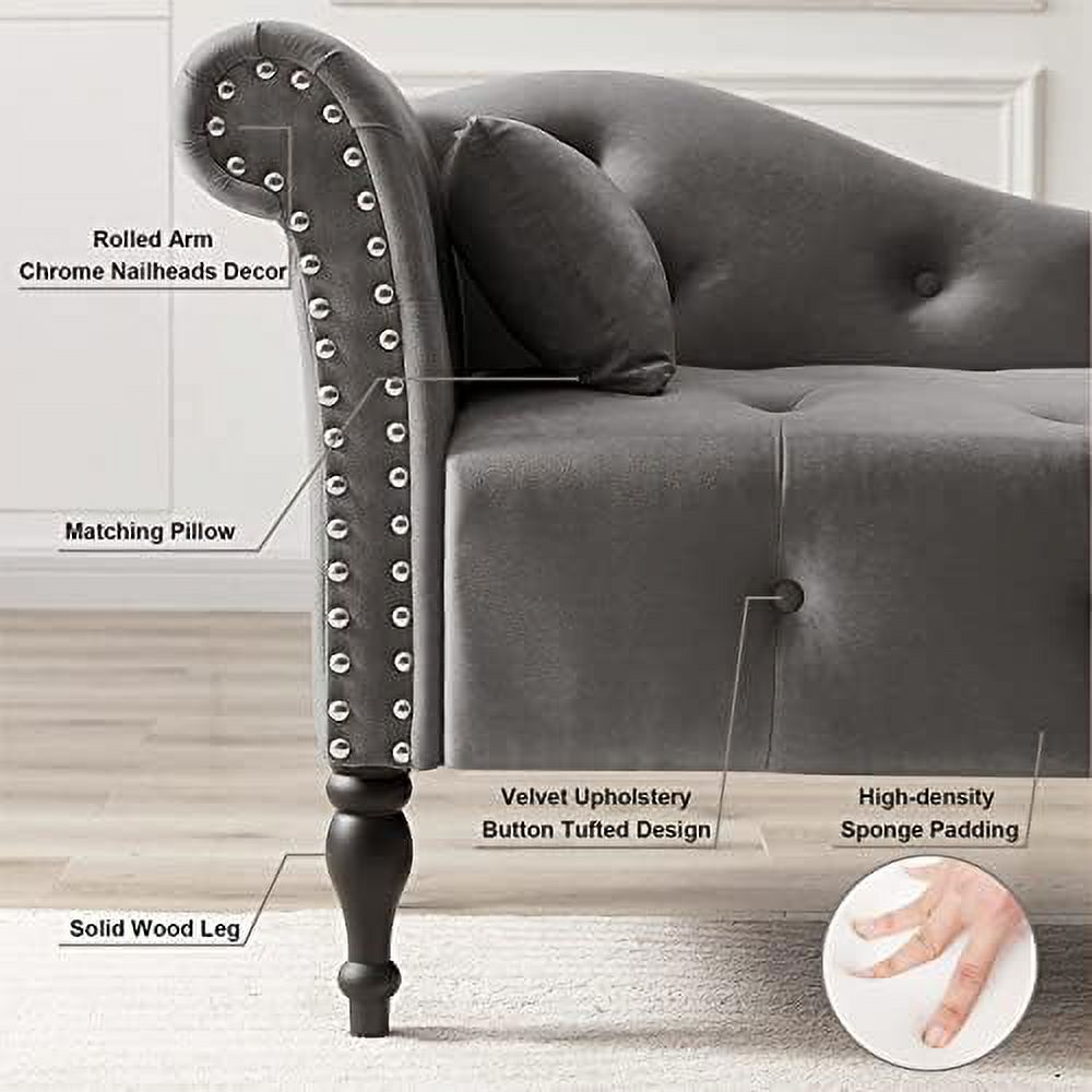 xrboomlife Velvet Chaise Lounge Indoor 60\u201D Tufted Upholstered Lounge Chair with Pillow & Rolled Arm Nailhead Trim for Bedroom Living Room Office Grey