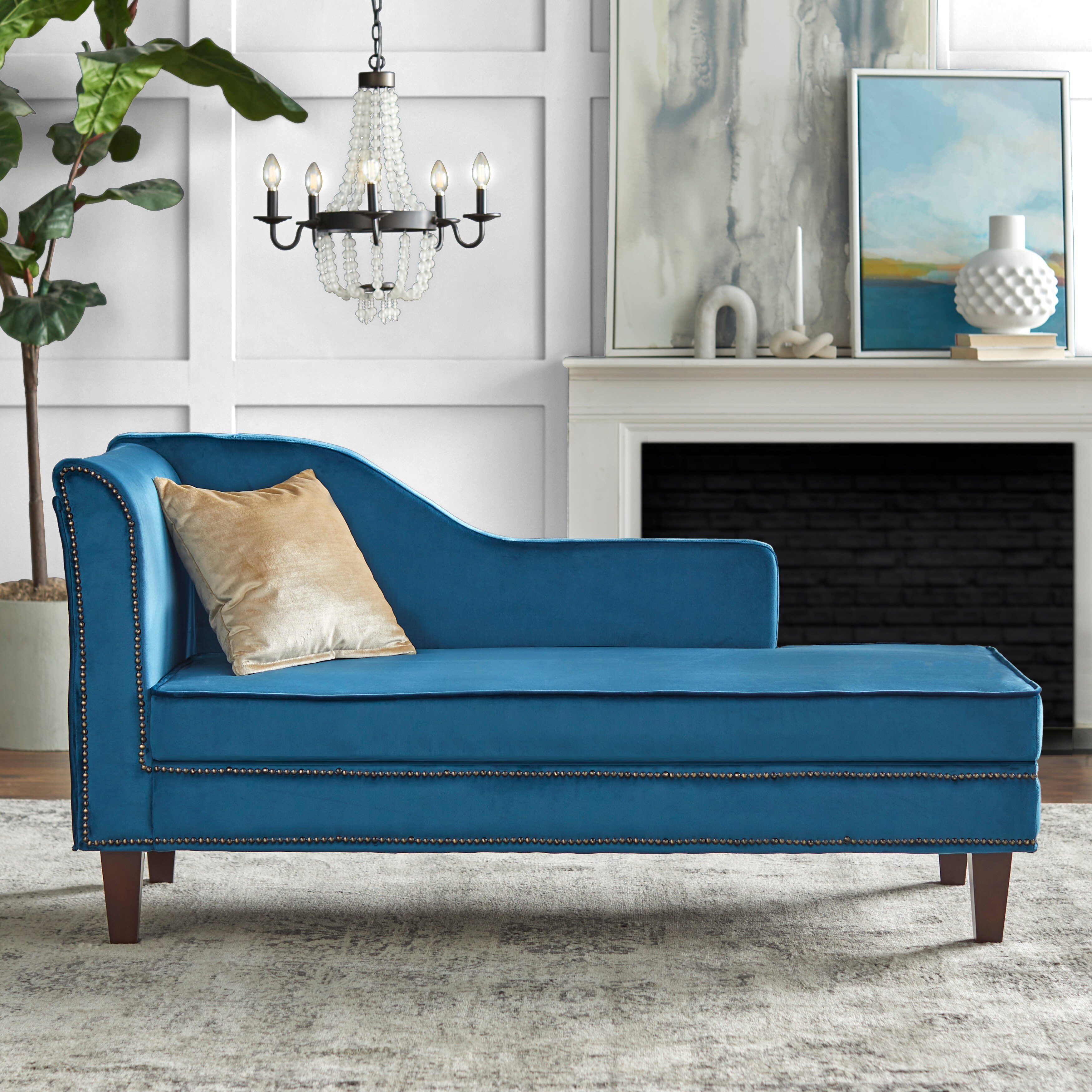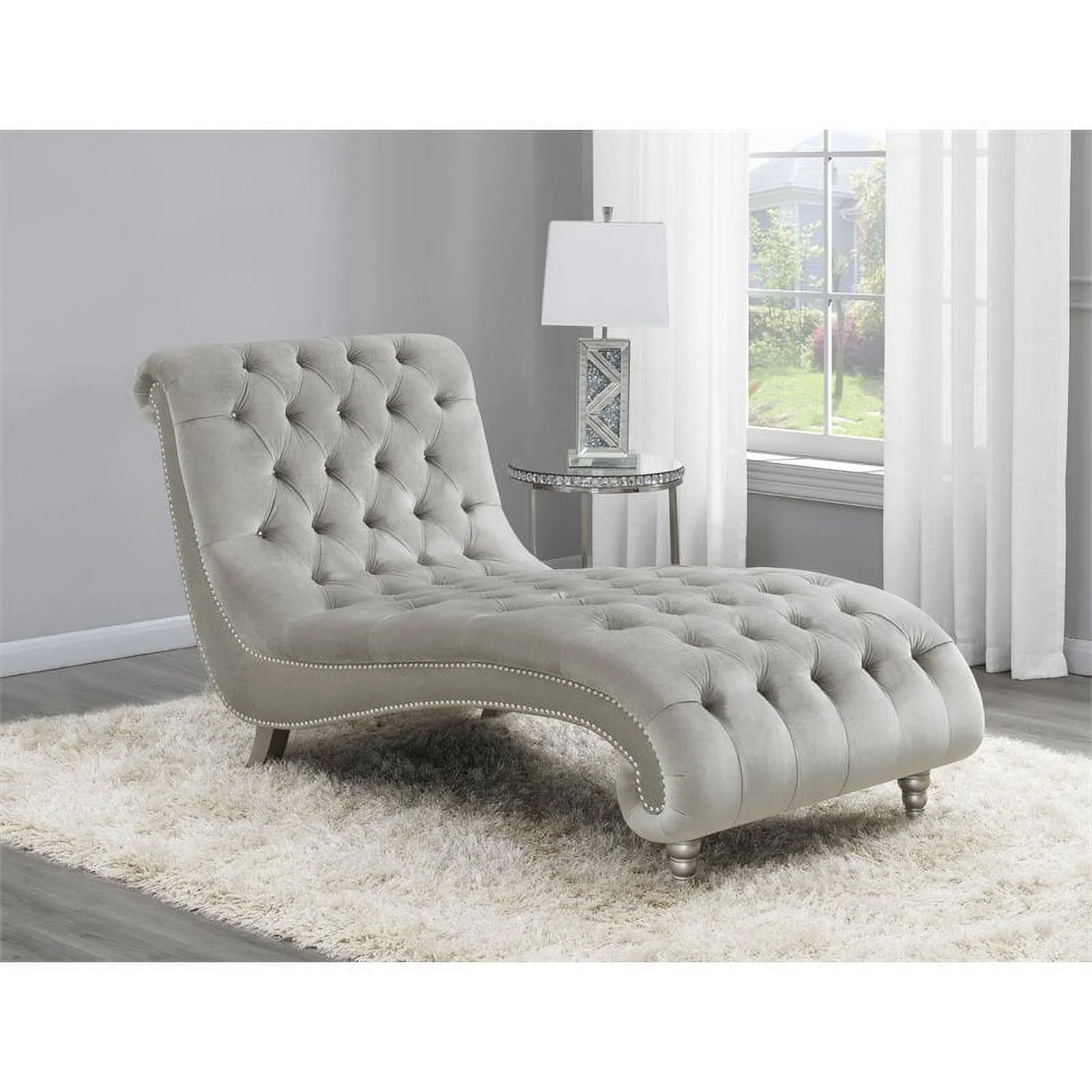Lydia Tufted Cushion Chaise with Nailhead Trim Grey