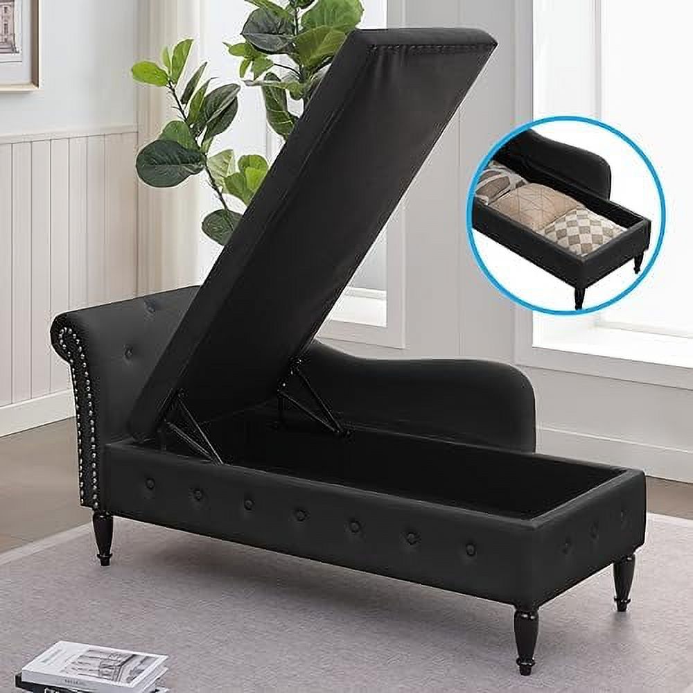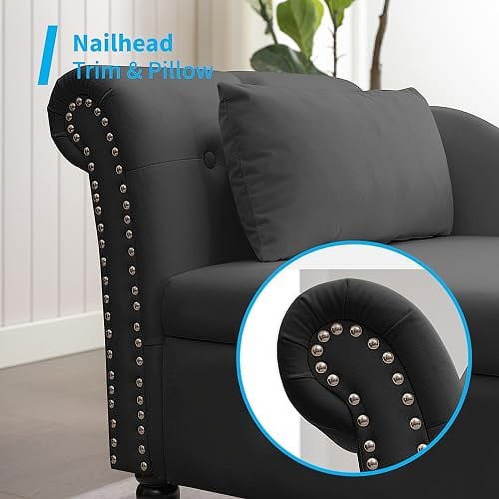 TJUNBOLIFE Velvet Chaise Lounge Indoor Chaise Lounge Chair with Design Upholstered Rolled Arm Lounge Chair with Nailhead Trim Button Tufted Chaise with Cushion for Living Room Dark G