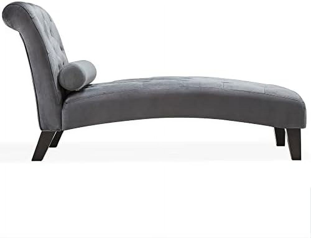 RUNFAYBIU Velvet Chaise Lounge Indoor with Button Tufted Chaise Chair with Lumbar Pillow and Rolled Arm Upholstered Chaise Lounge Chair for Living Room Bedroom Office Grey