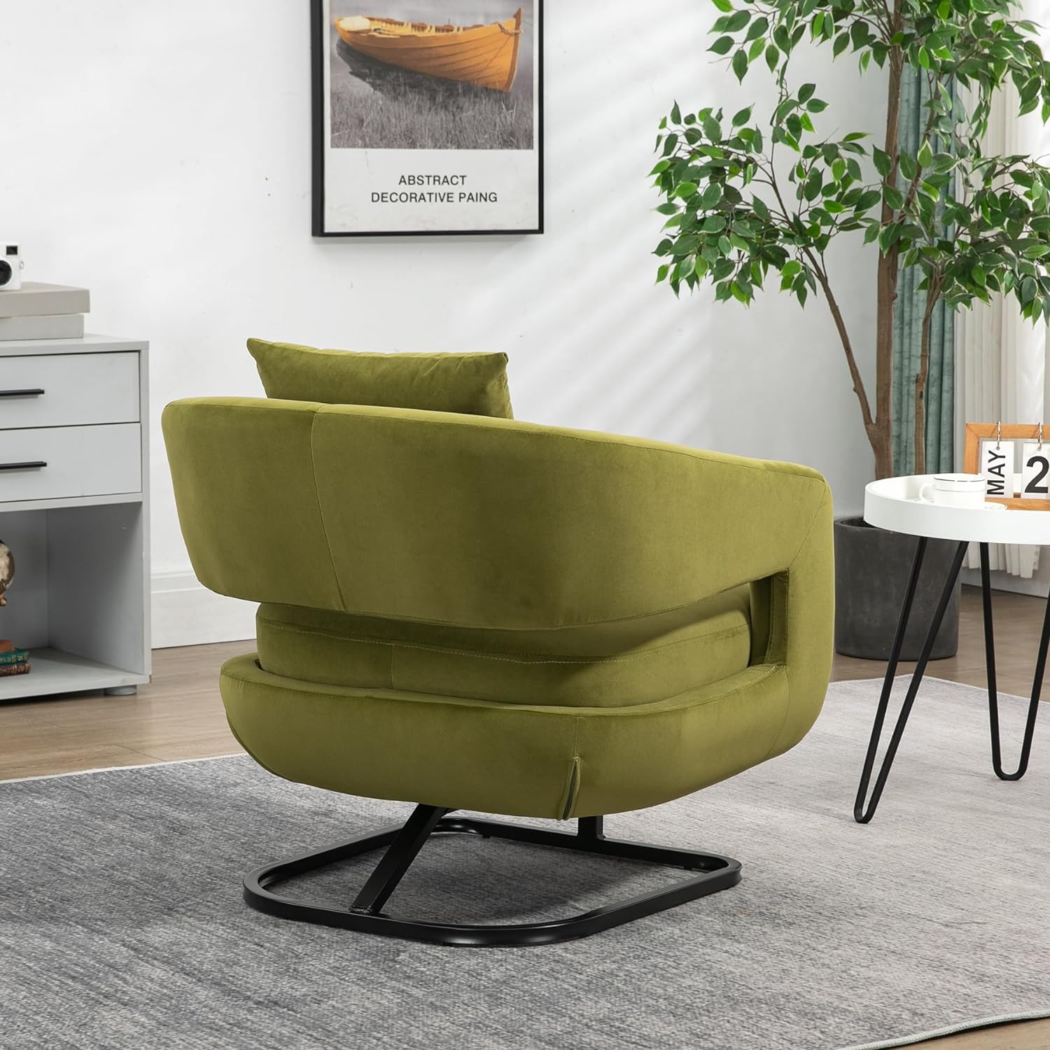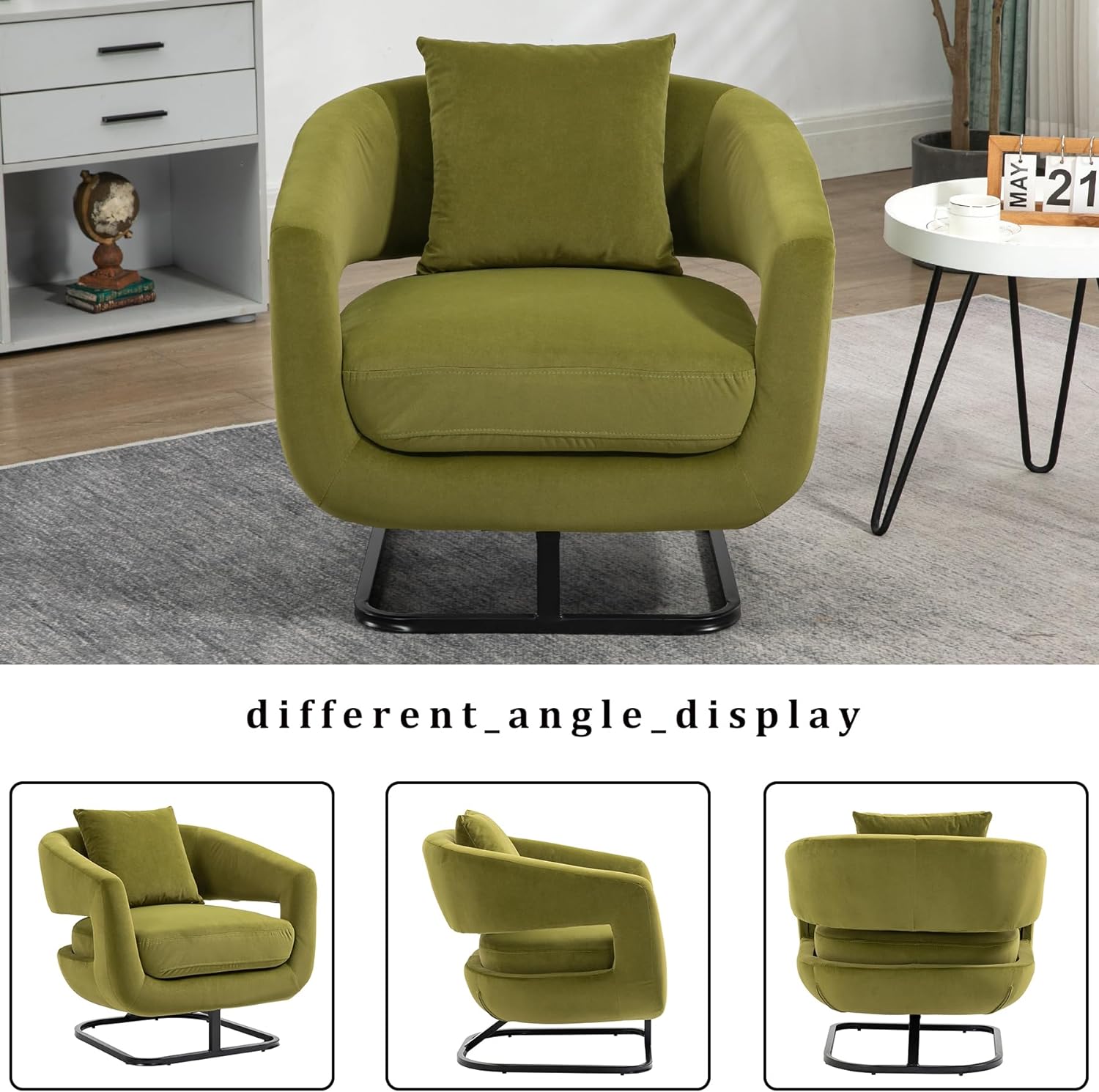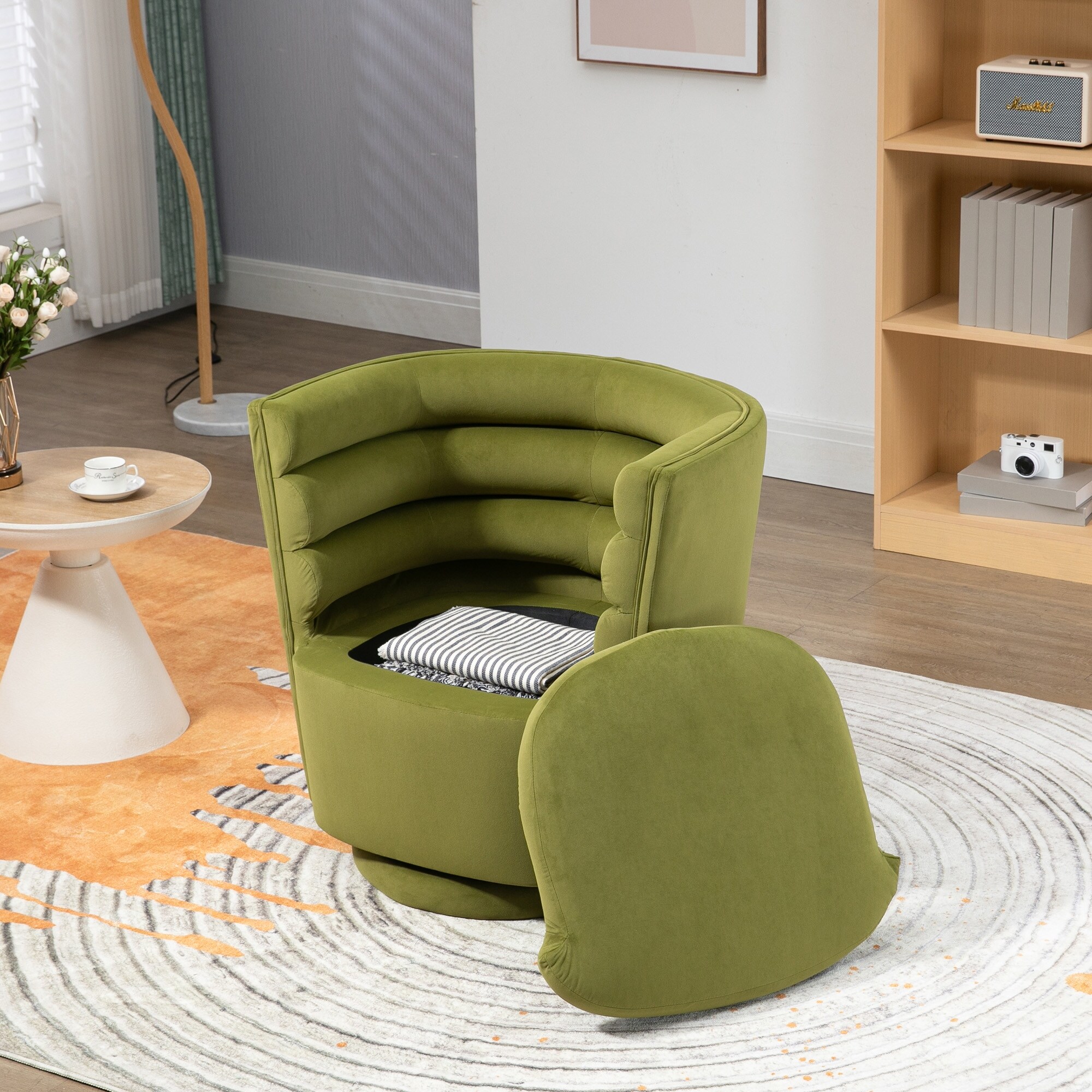 360 degree rotating barrel shaped velvet armchair with storage Olive Green