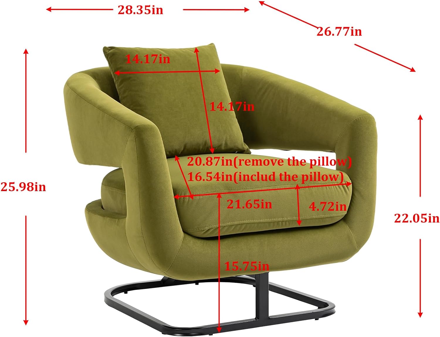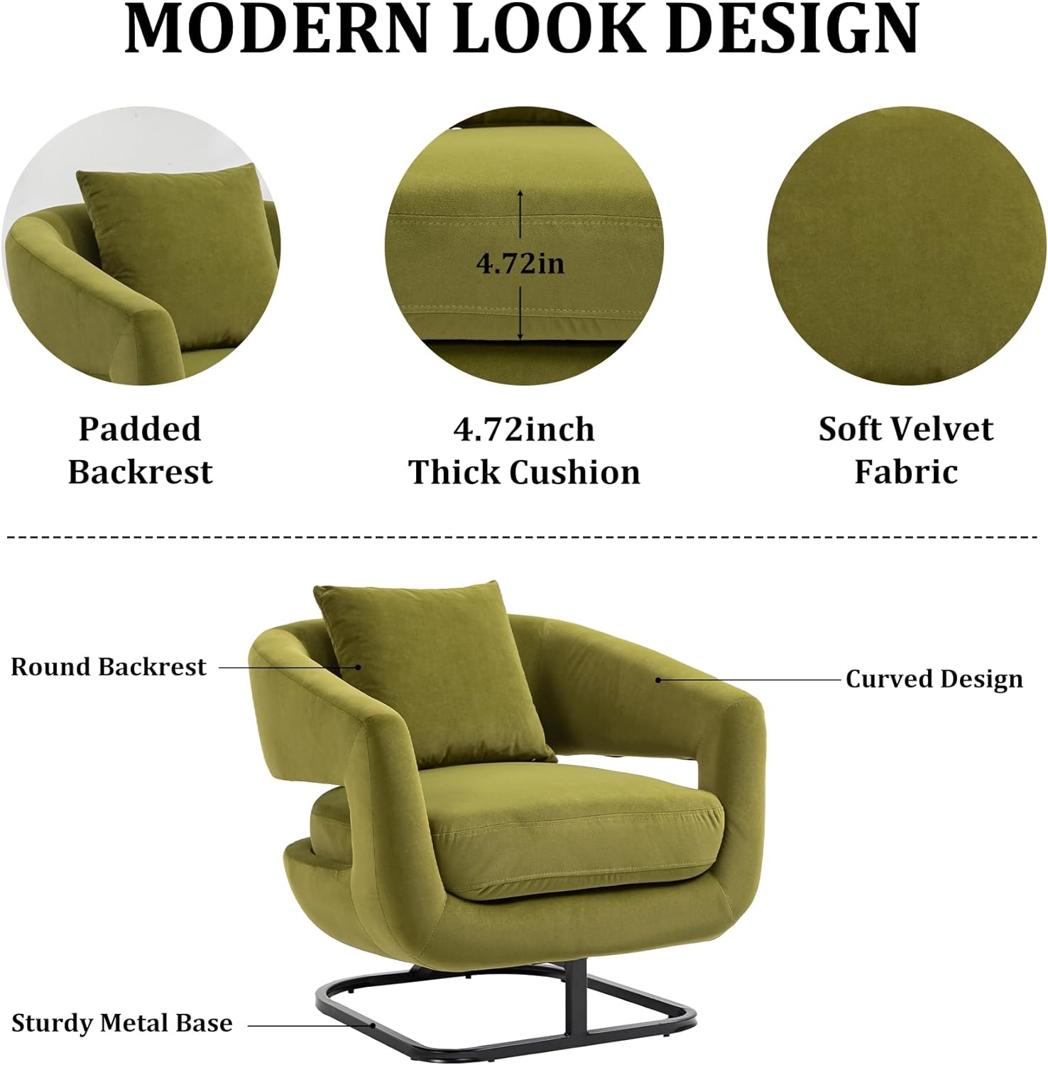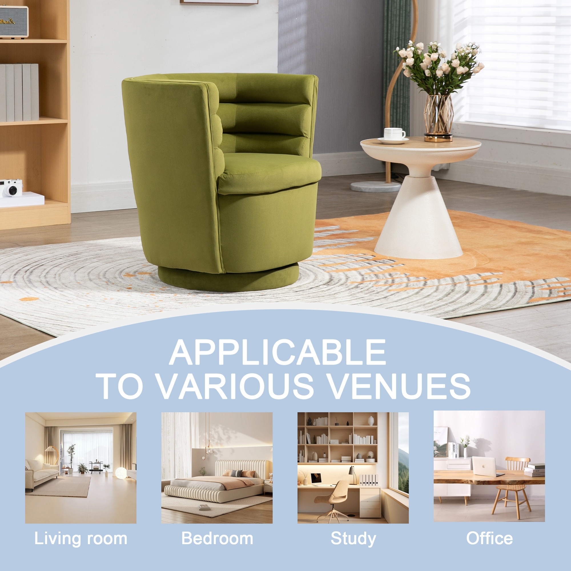 360 degree rotating barrel shaped velvet armchair with storage Olive Green