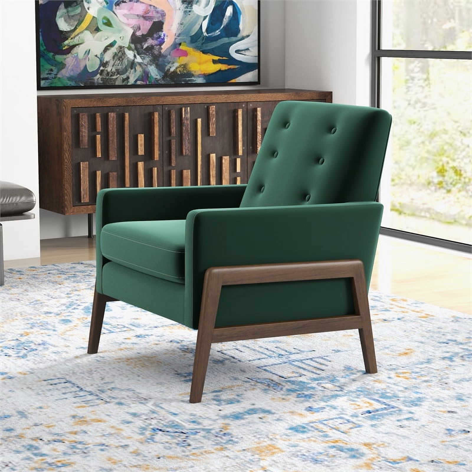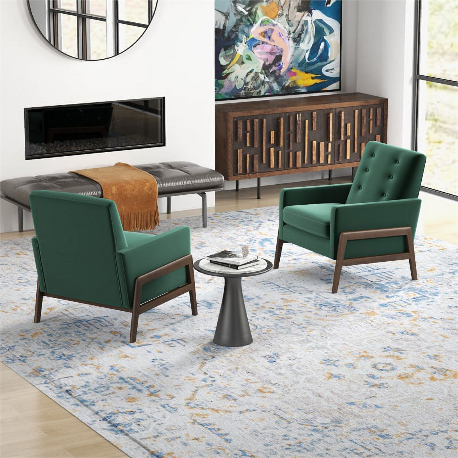 Sophia Mid-Century Modern Tufted Green Velvet Accent Armchair Set of 2