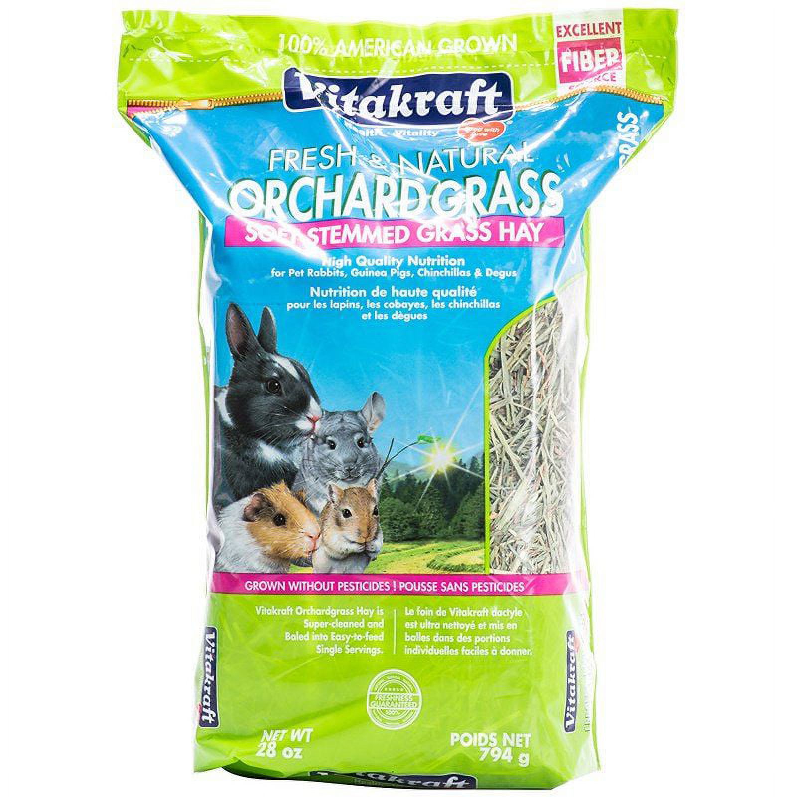 Vitakraft Fresh & Natural Orchard Grass - Soft Stemmed Grass Hay 28 oz (4 Pack)