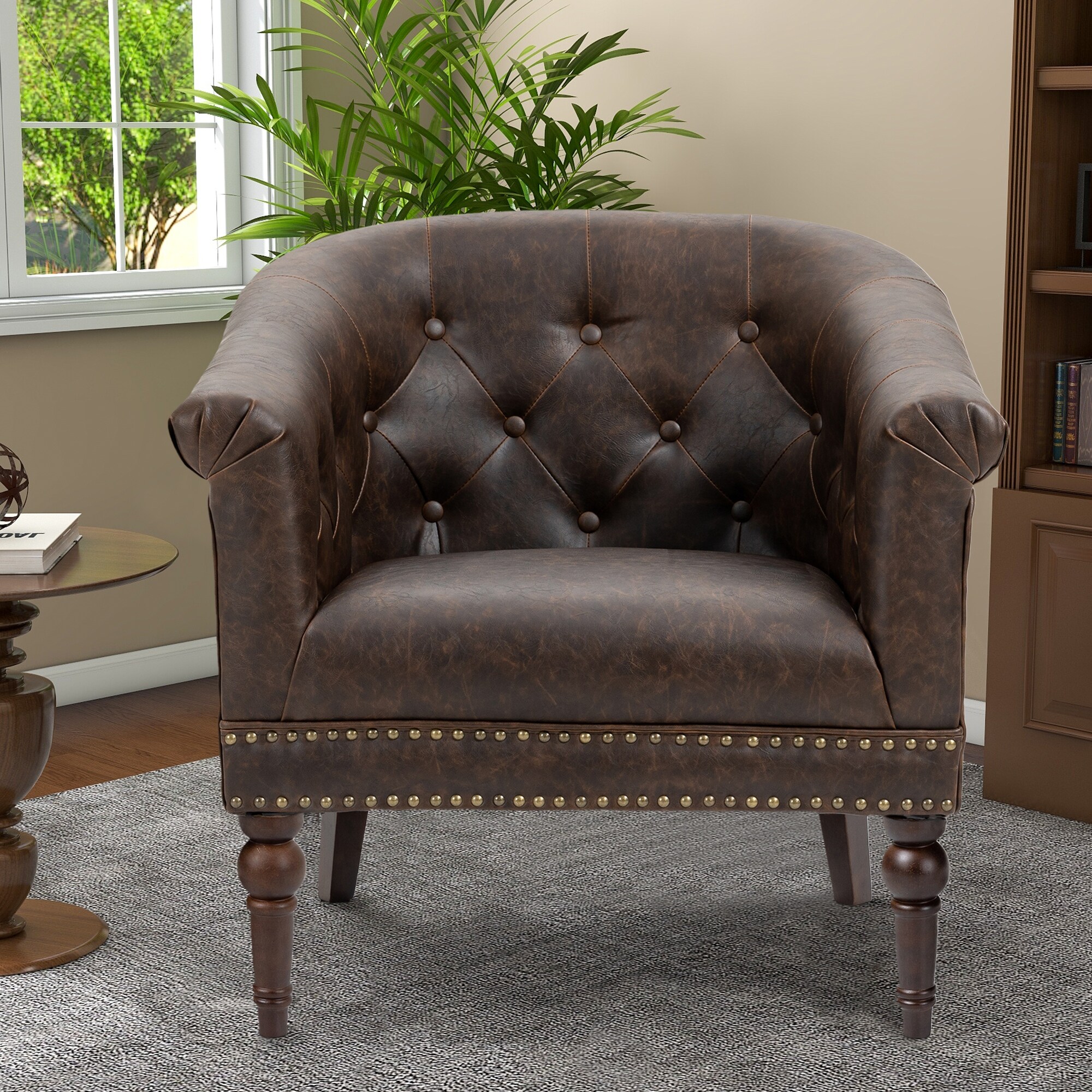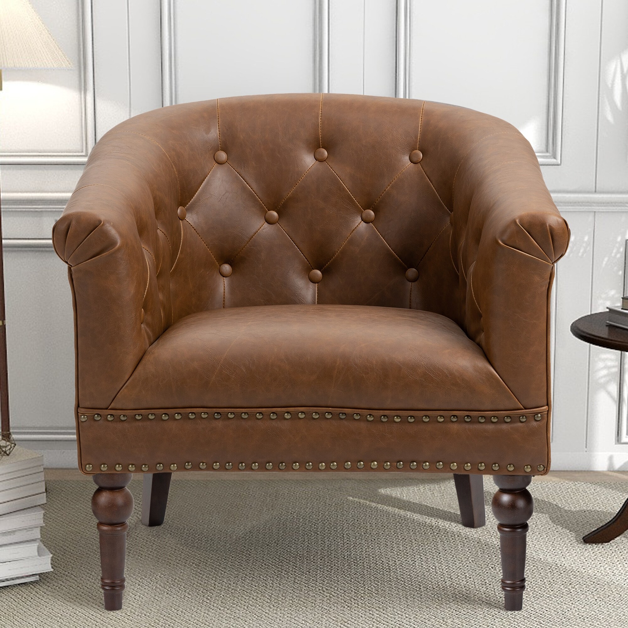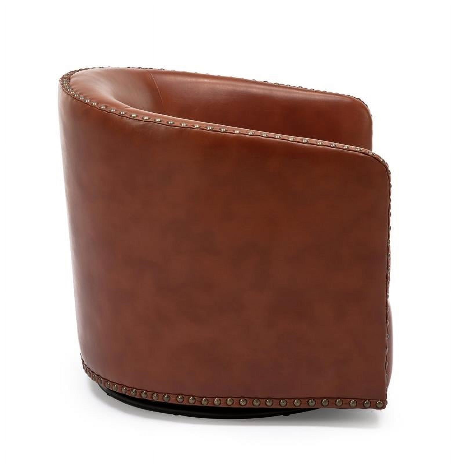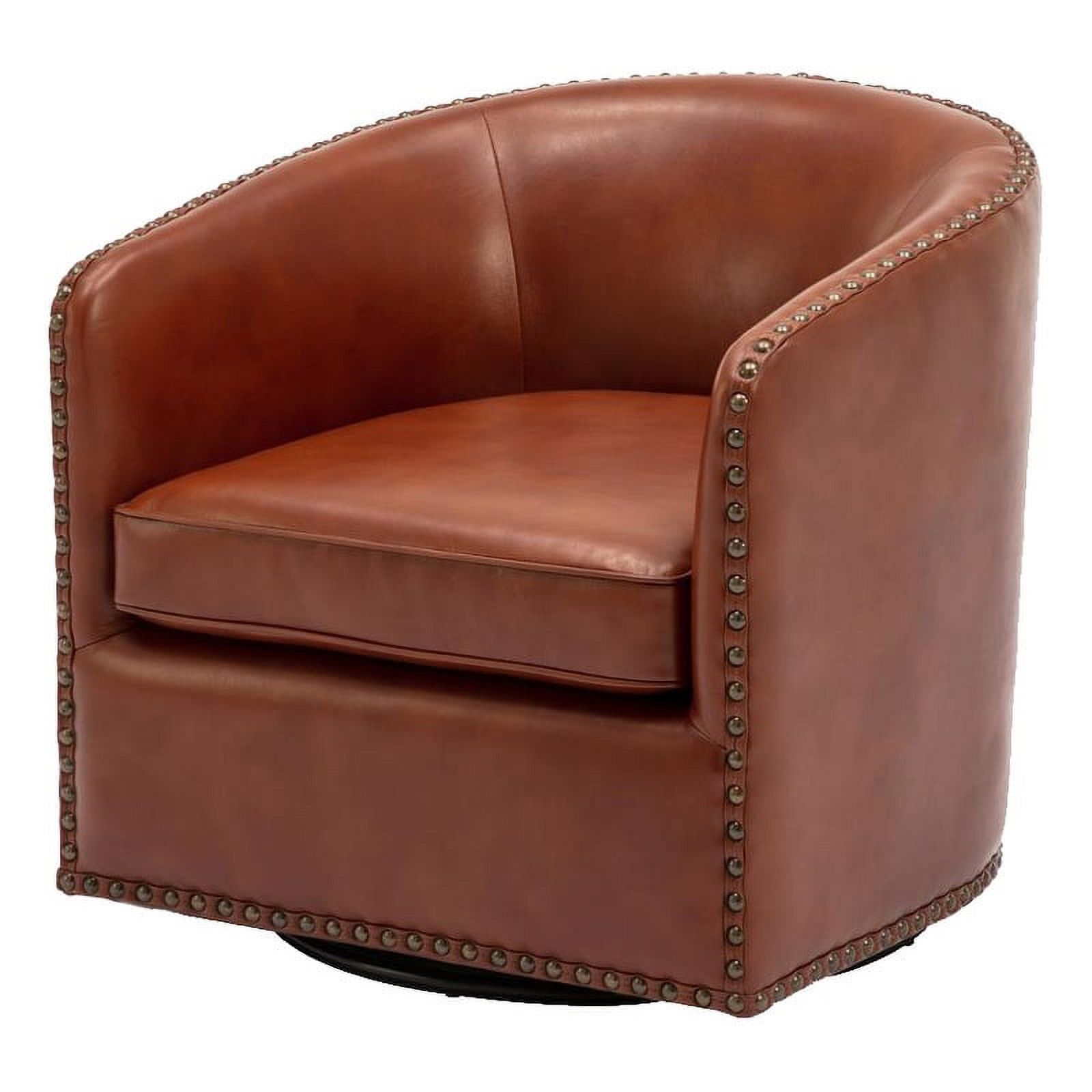 Bowery Hill Transitional Faux Leather Nail head Trim Swivel Arm Chair in Caramel