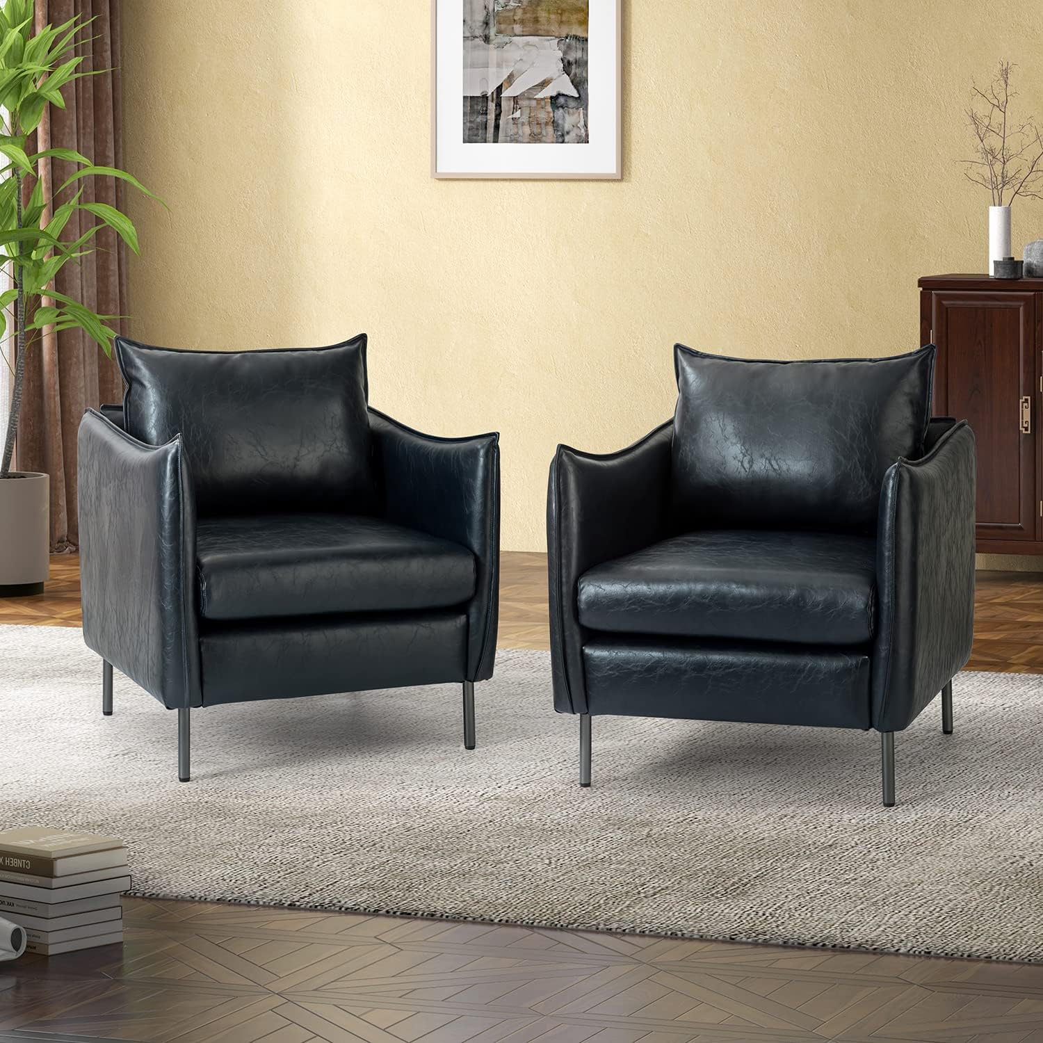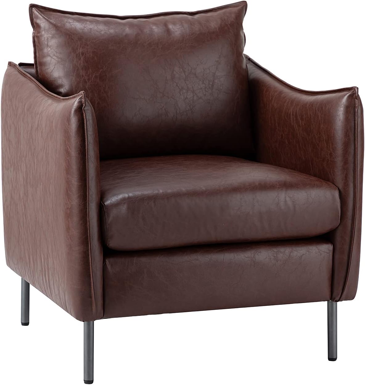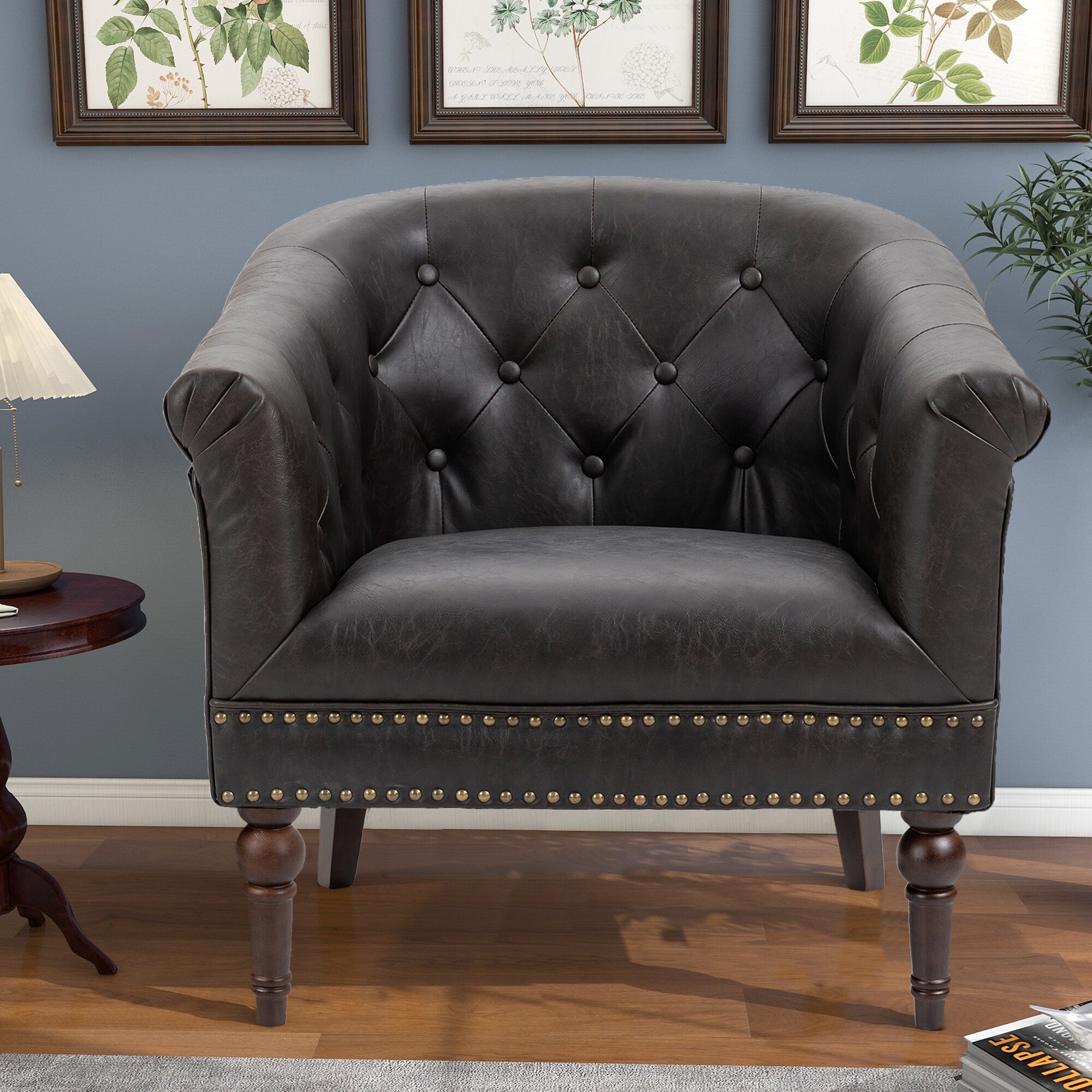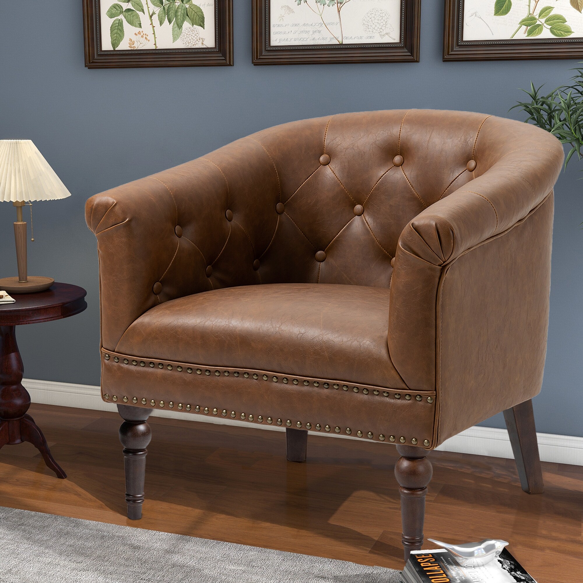 Bowery Hill Transitional Faux Leather Nail head Trim Swivel Arm Chair in Caramel