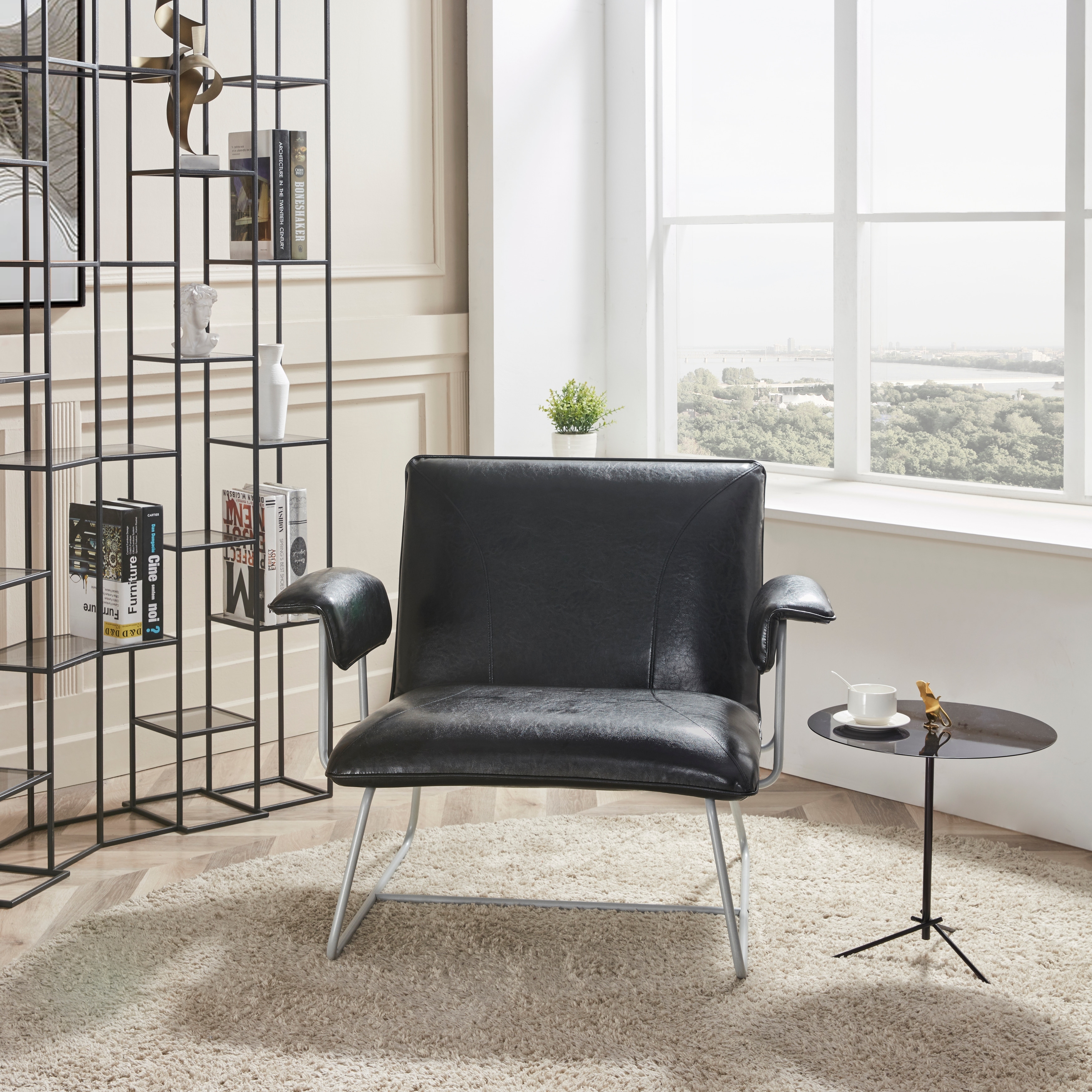34 x 31.5 x 34 in. Lincoln Modern Upholstered Leather Accent Armchair with Frame, Grey & Gold