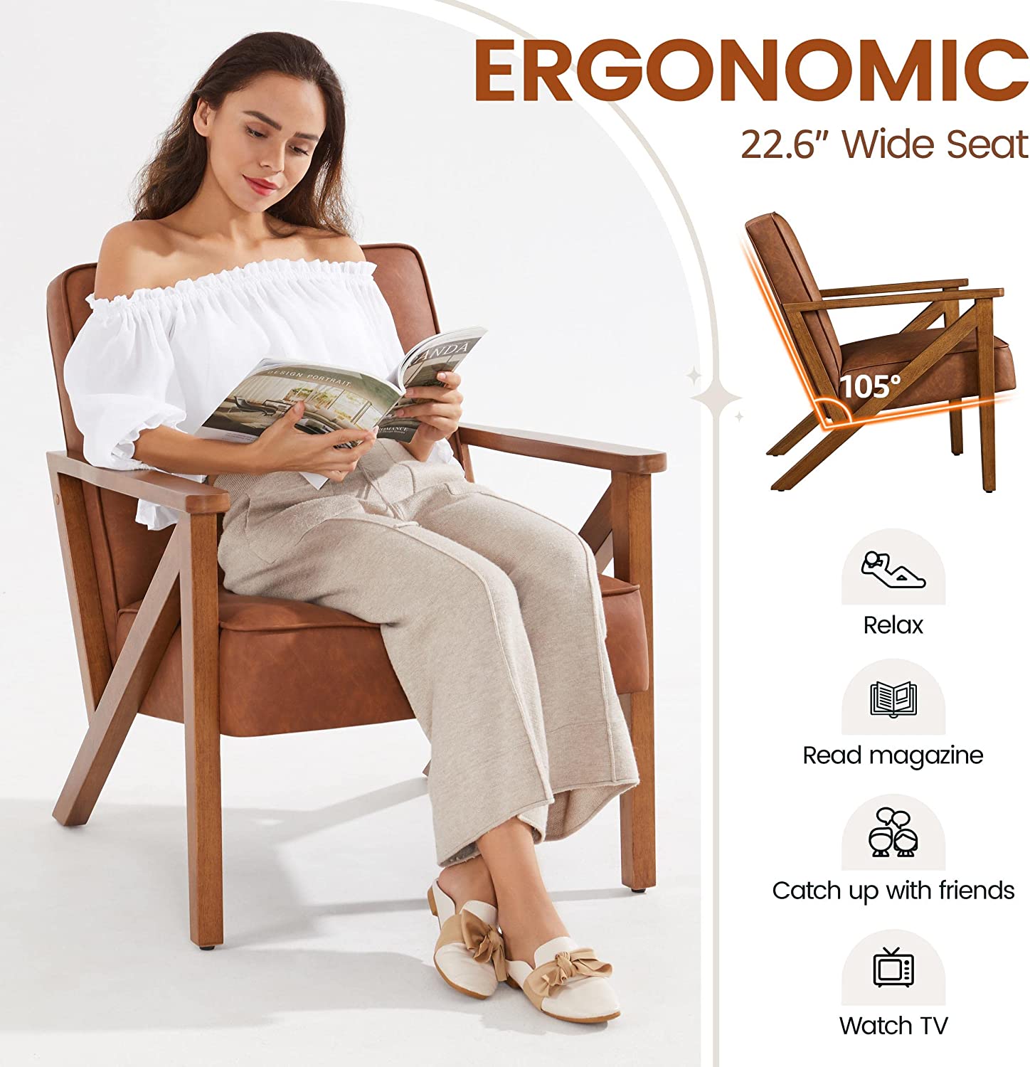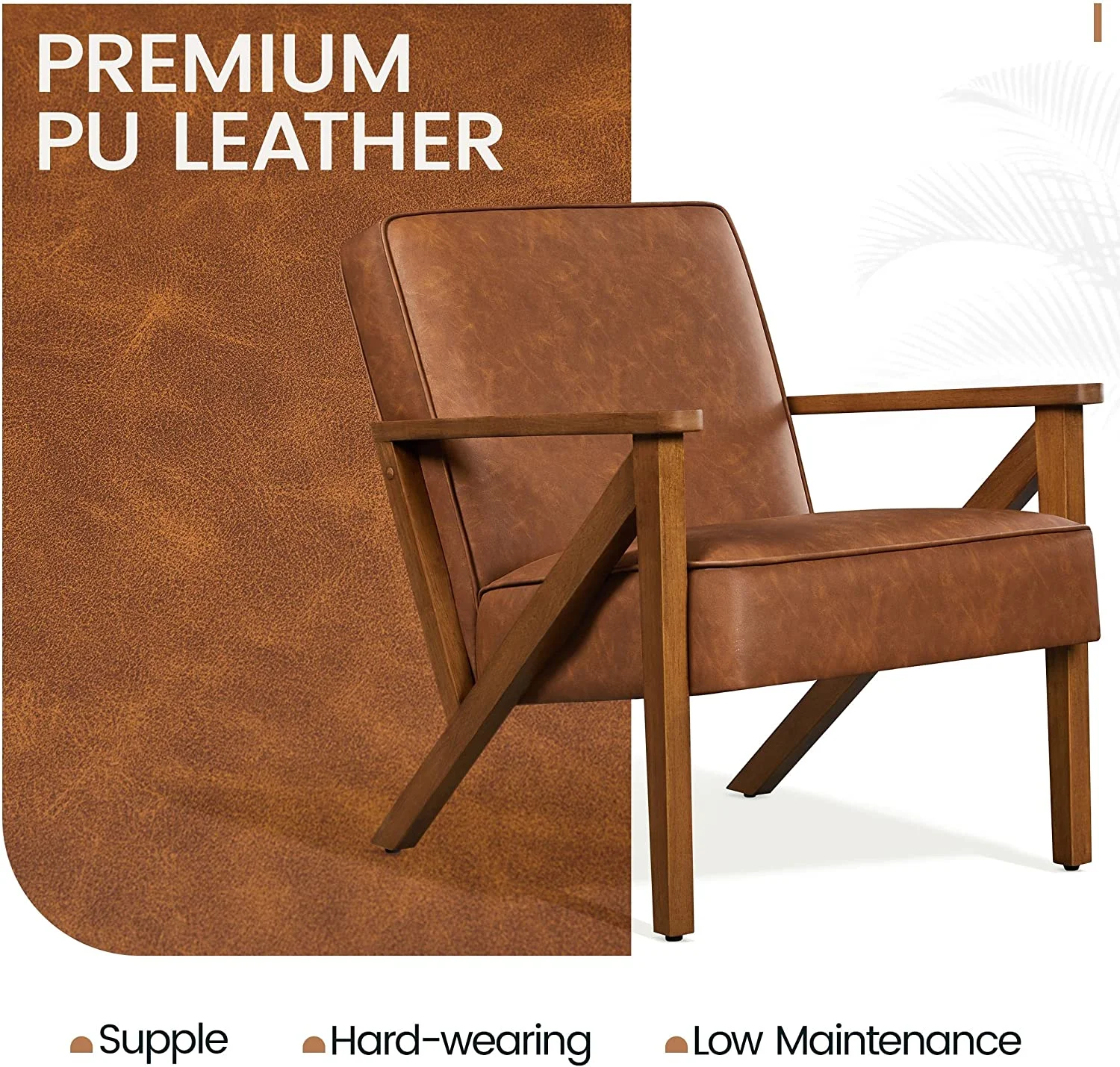 JOMEED Cushioned Swivel Armchair with Rubberwood Legs for Home and Office