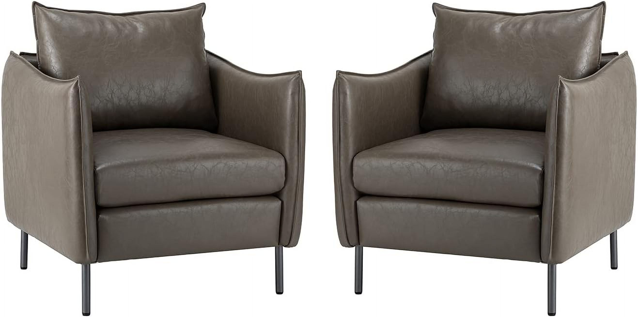 28 x 28 x 33 in. Gray Black Top Grain Leather & Steel Solid Color Arm Chair