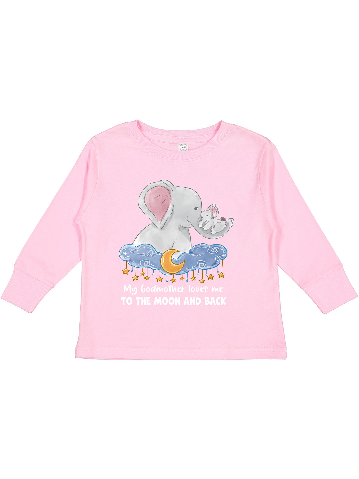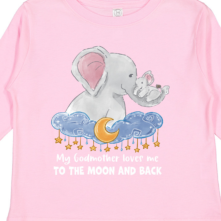 Inktastic My Godmother Loves me to the Moon and Back Elephant Family Boys or Girls Long Sleeve Toddler T-Shirt
